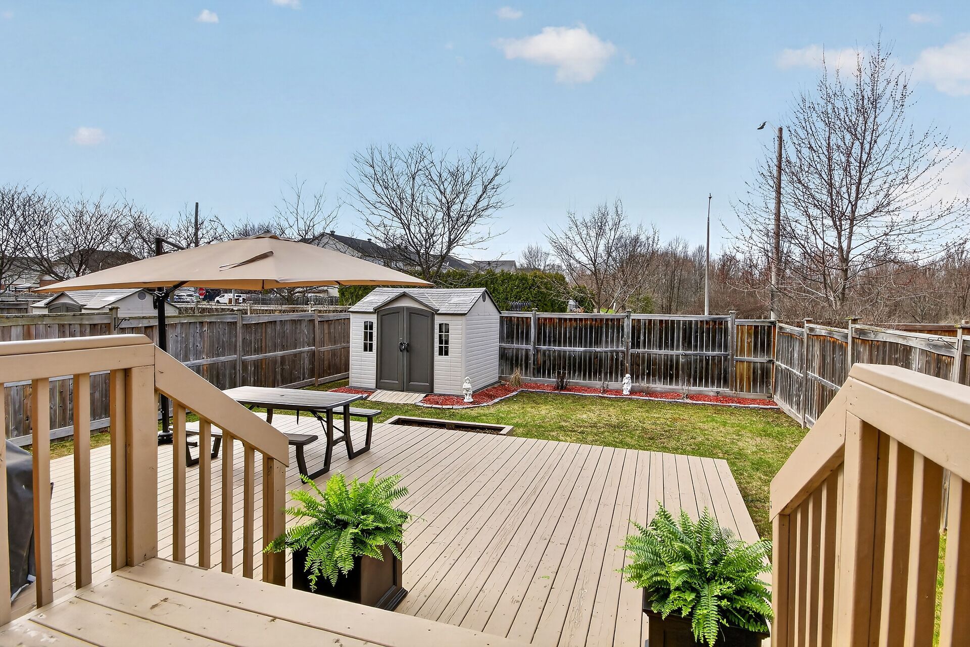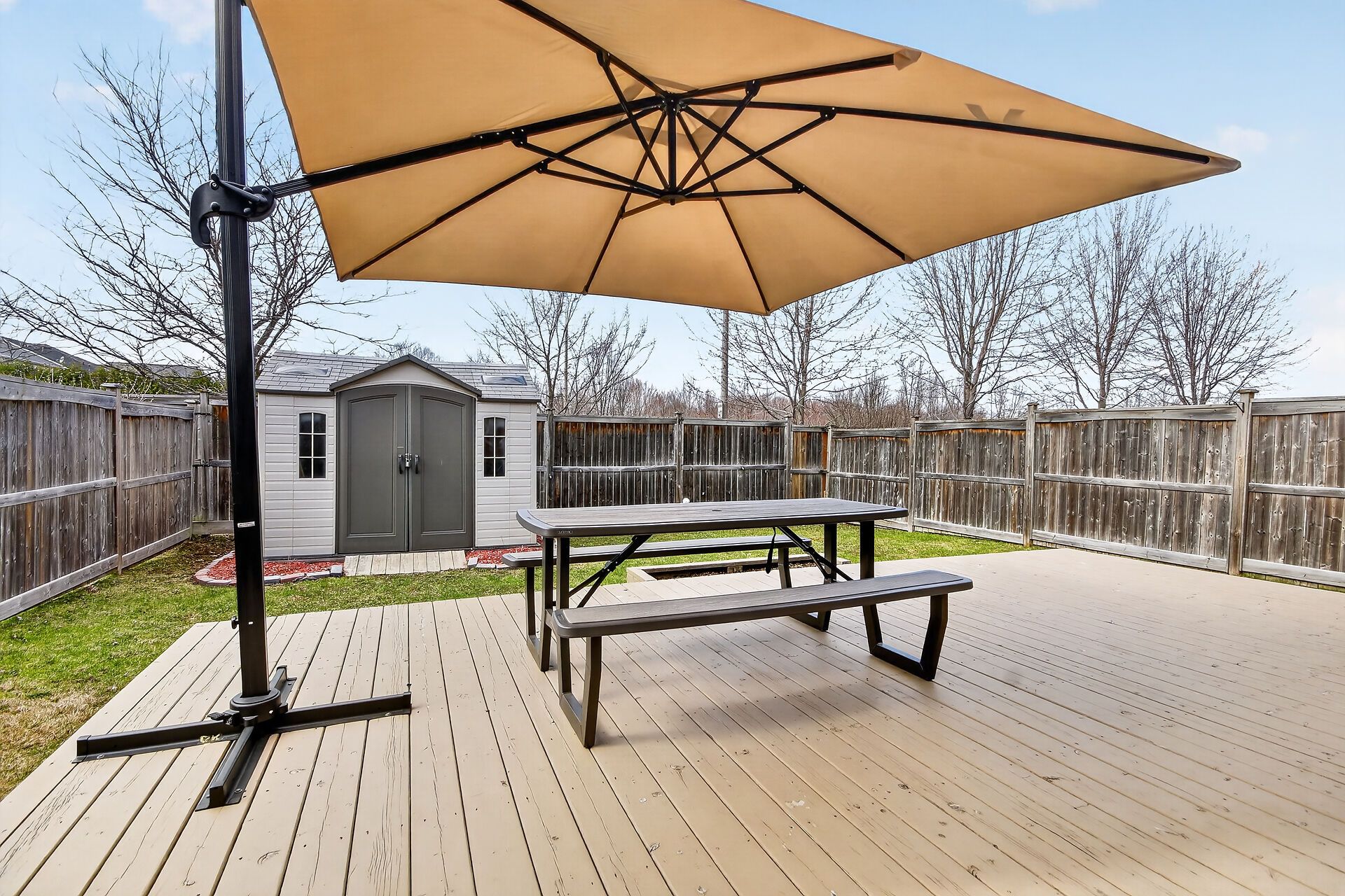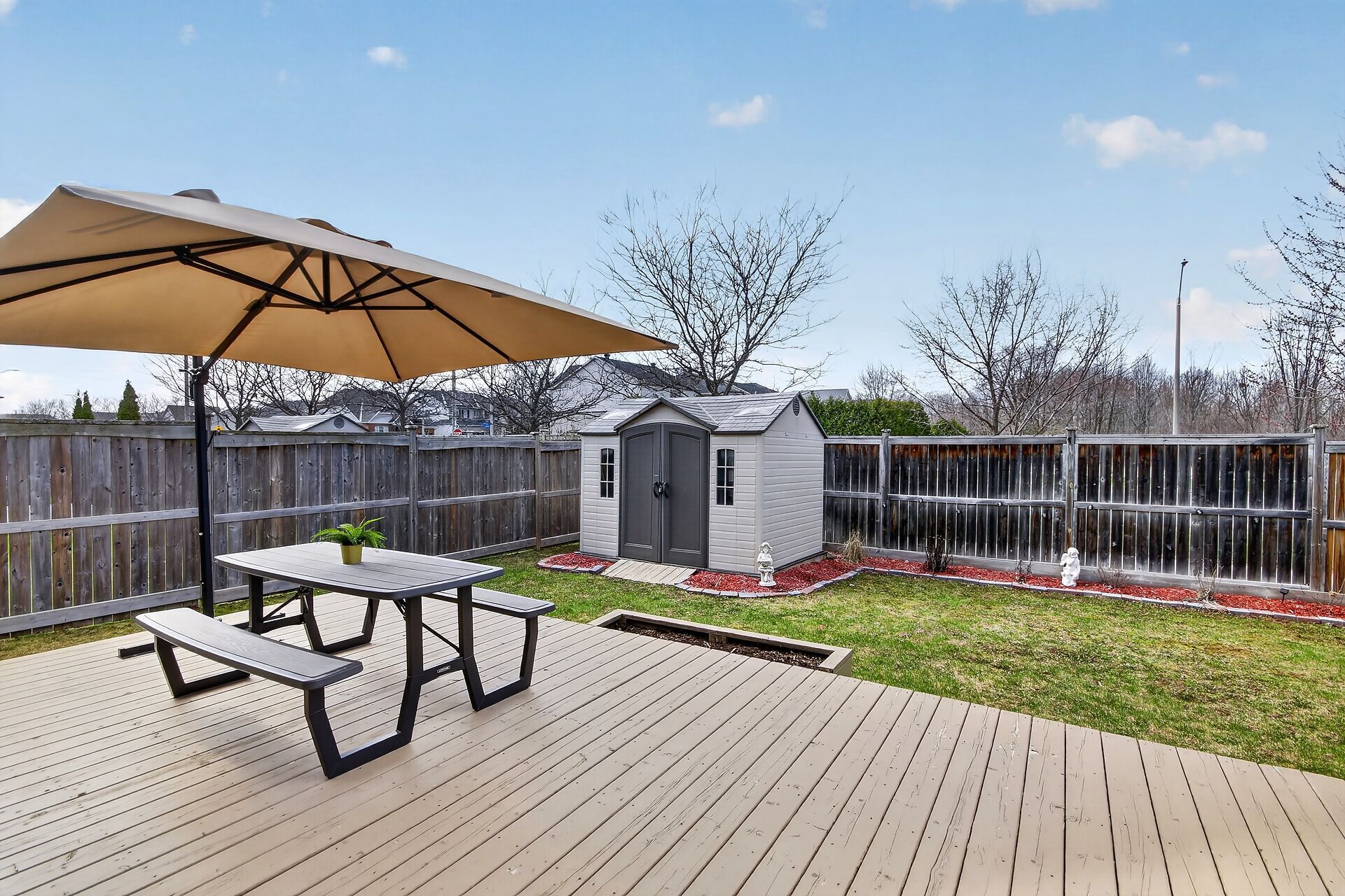 • Private backyard with a large deck, perfect for entertaining outdoors.