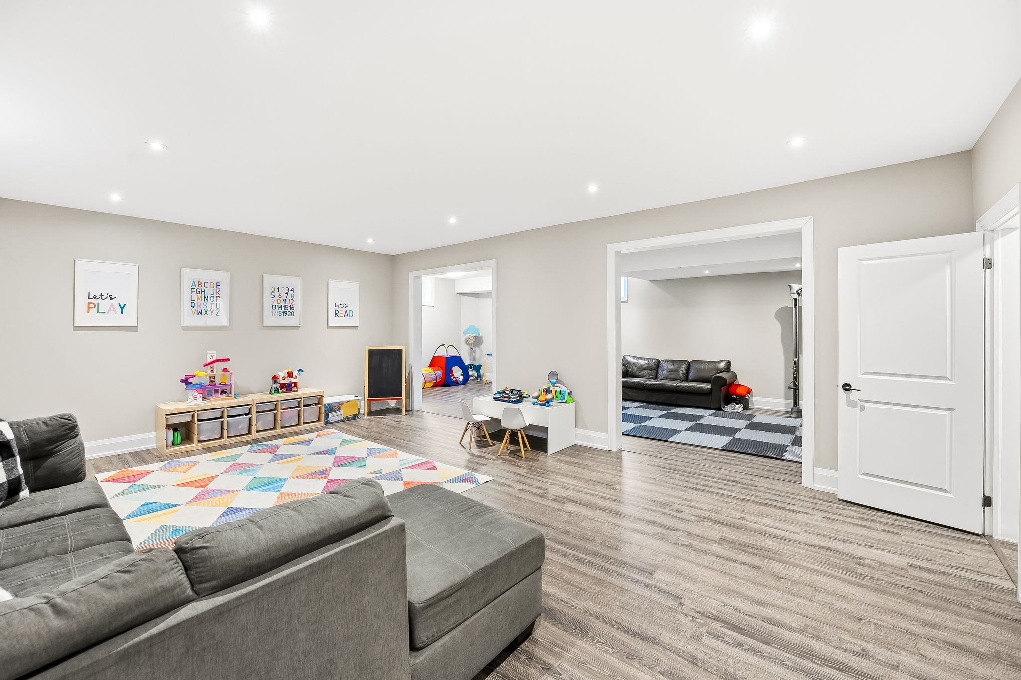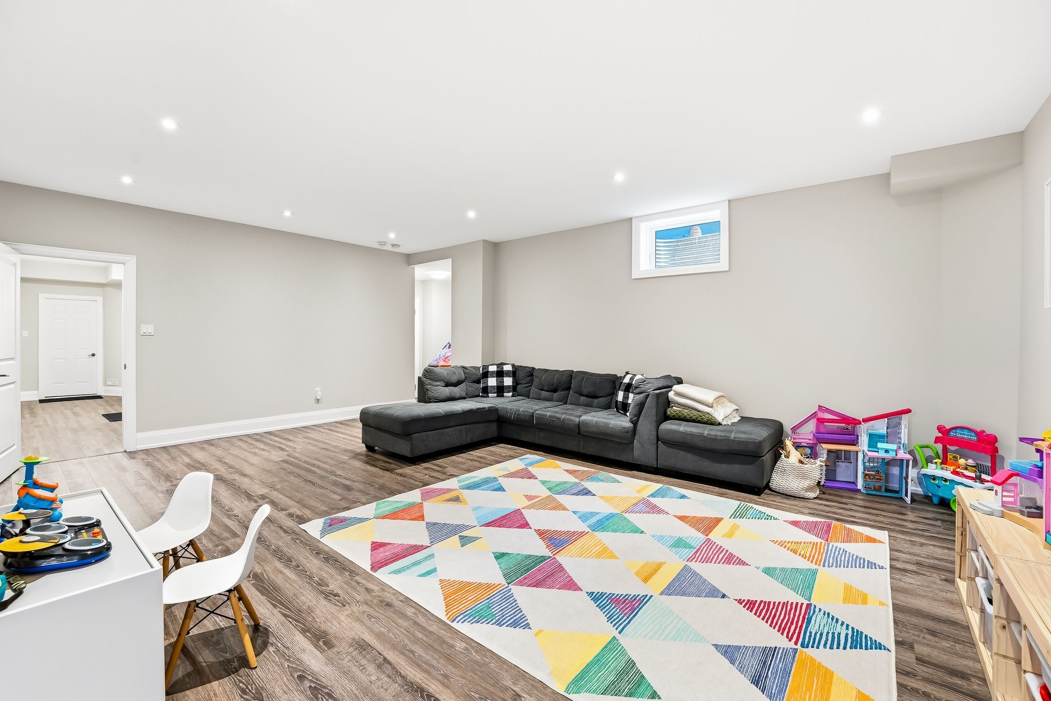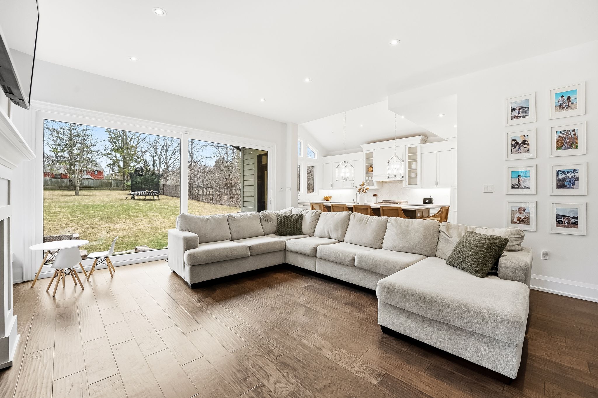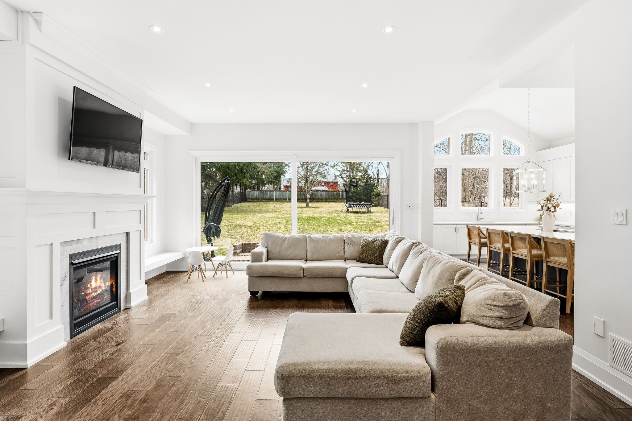 • Spacious open-concept living area with large sliding doors for outdoor access.