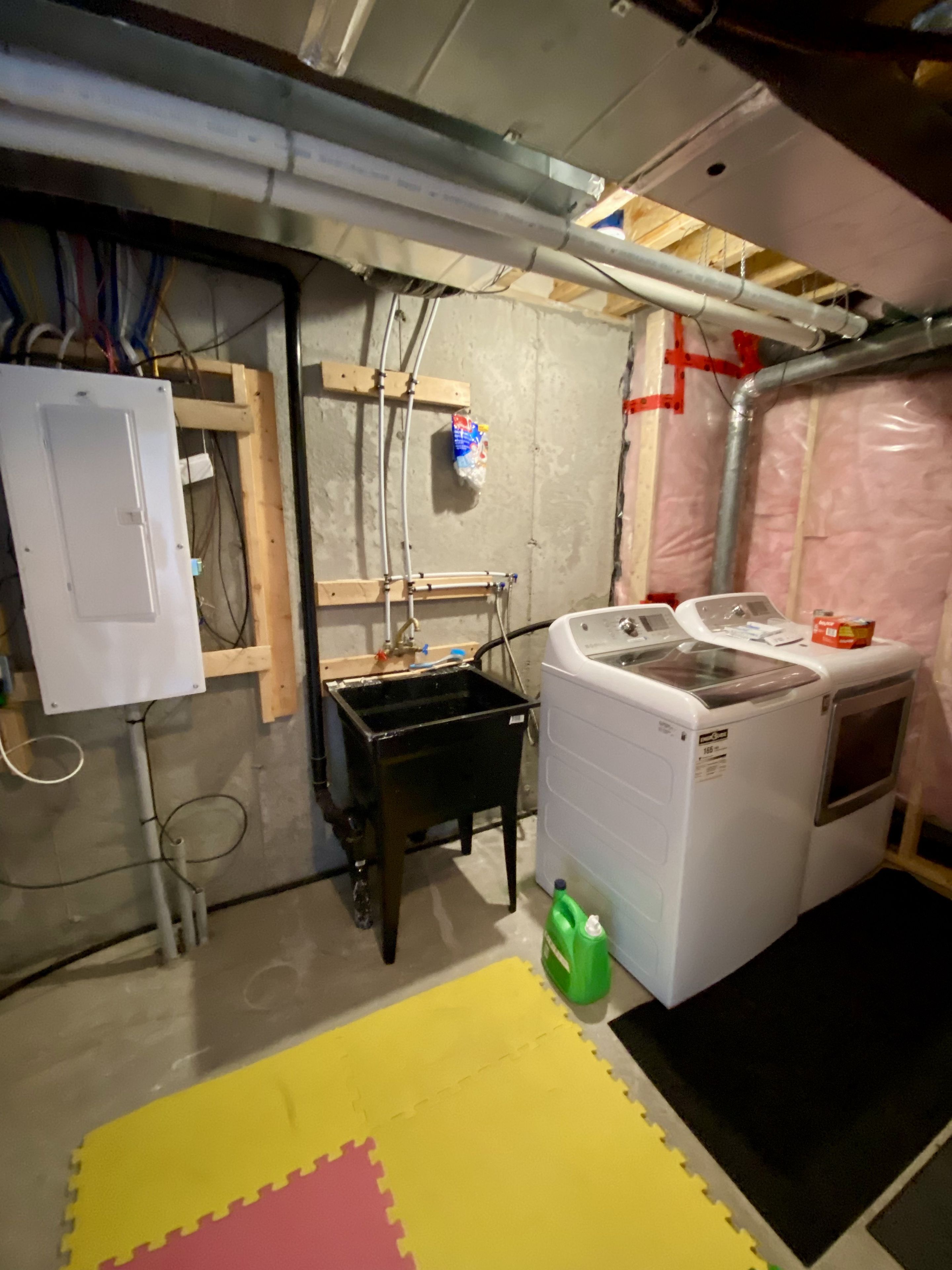 • Finished basement includes family room and laundry area.