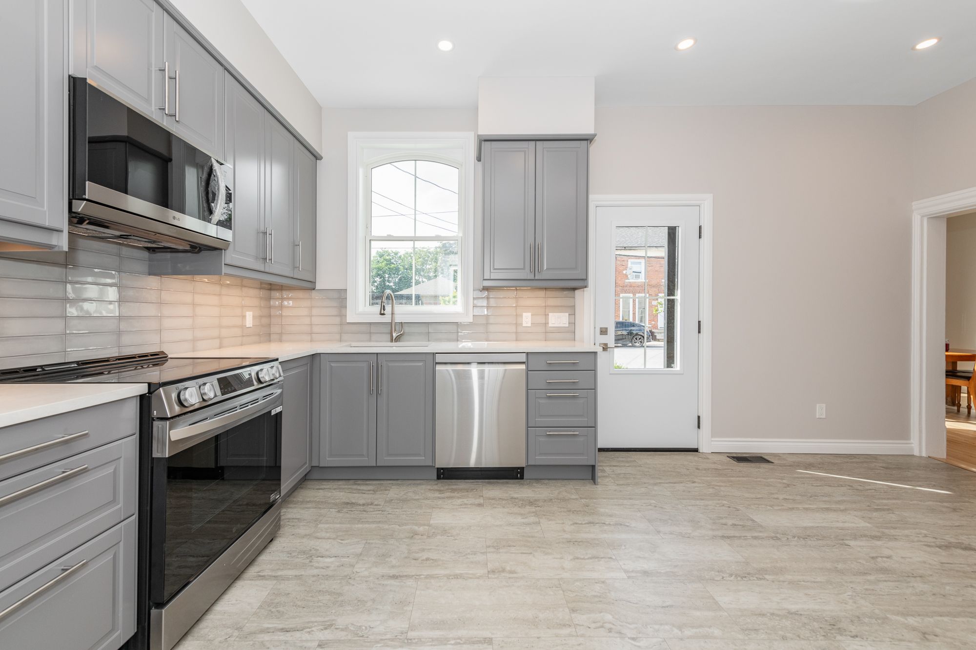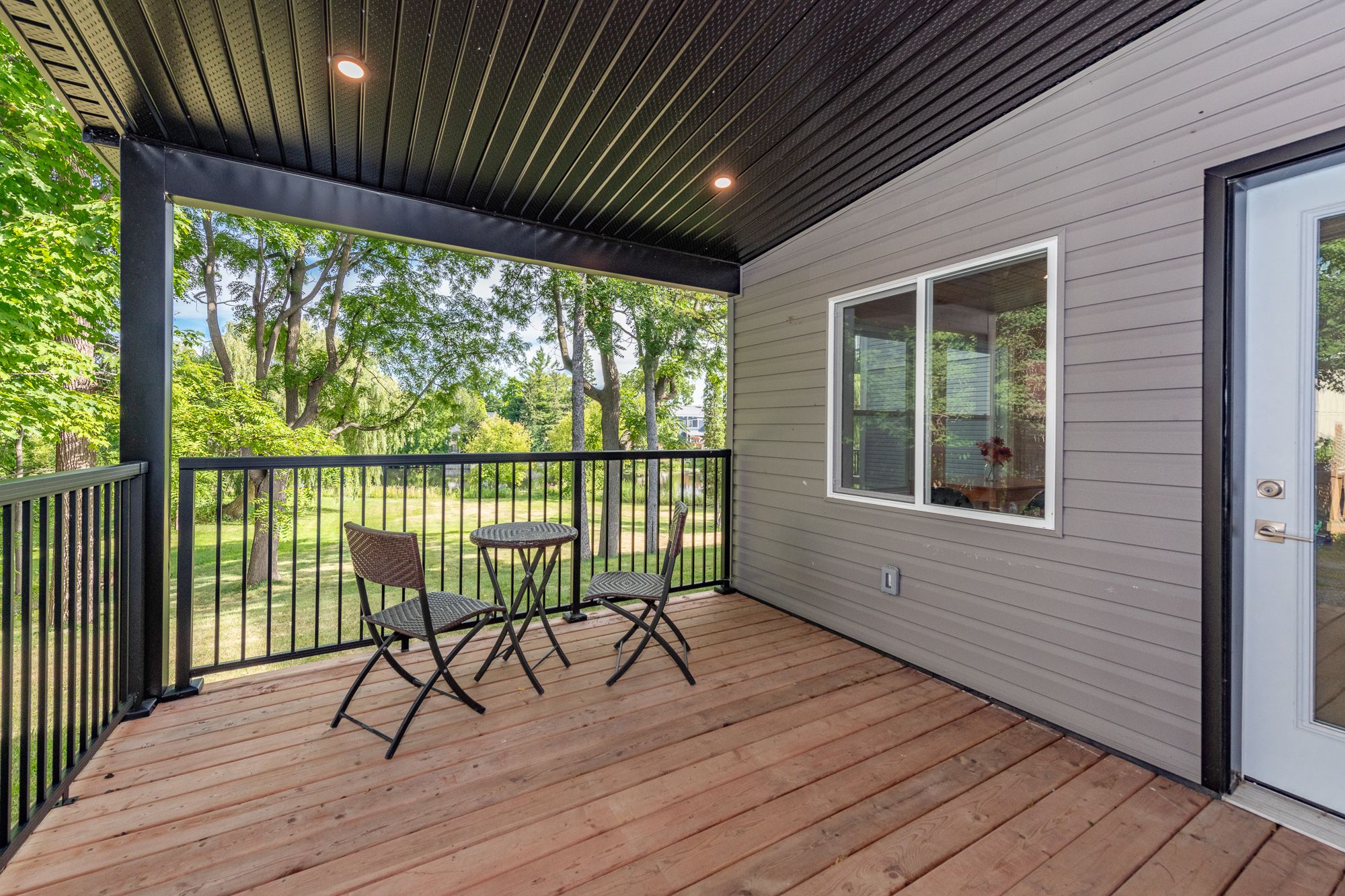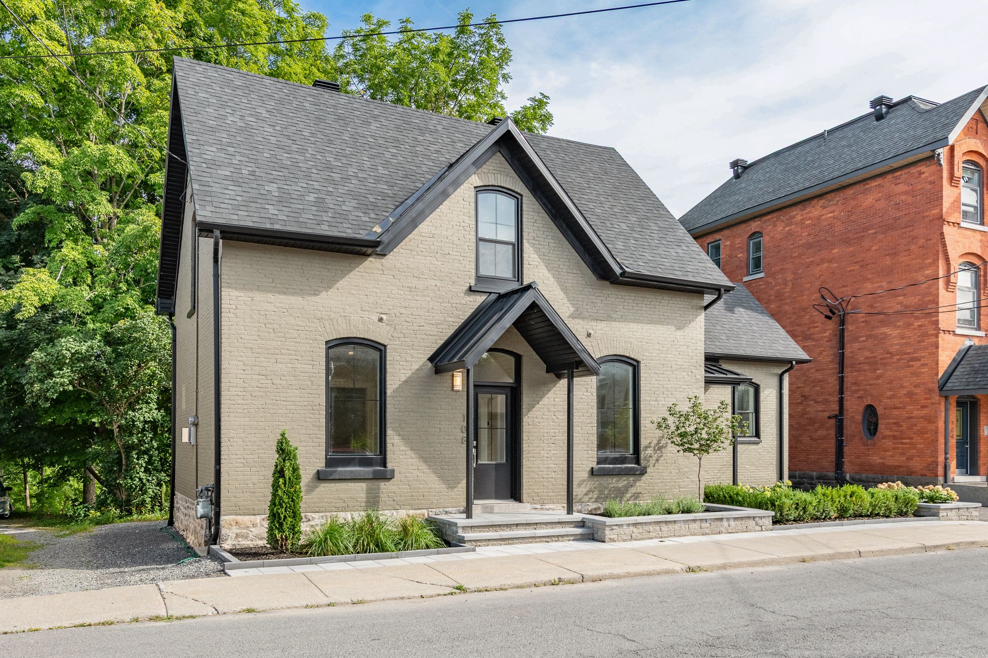 **open house 2-4 sunday, october 19th** delightful home nestled on an impressive lot backing onto kemptville creek. All-brick exterior on the main building, interlock stone walkway and raised flower beds add curb appeal to a fully renovated home. Step inside a family home that radiates hospitality and charm. Greet your guests in a bright foyer with new hardwood flooring, which is extended through the living and dining rooms. Gas fireplace and recessed lighting enhance the living room, which is open to a cozy den. Large windows provide streetscape and peaceful back yard views. Cooking will become an enjoyable task in the newly renovated kitchen, with quartz countertops, tile backsplash and stainless steel appliances. Trendy cabinetry has been designed to include pot drawers. Easy-care flooring, large windows and second entry door will be welcome features. Additionally, access to the enclosed porch is found here, with tranquil water views and access to the covered deck. Laundry/powder room and back door are located nearby. Hardwood staircase leads to three bedrooms, all with hardwood flooring. Angled ceilings add charm. Five piece main bath features a double vanity, tub/shower combination and additional storage. Last but not least! Enjoy the private setting of this huge property, backing onto the creek, which will accommodate a future pool and gardens. Covered deck, mature trees and natural landscaping will encourage outdoor enjoyment. Don't miss these updates: all brick exterior; roof, furnace, heat pump, electrical, plumbing, windows (all 2022); sought-after waterfront property. Plenty of room to personalize this property. Convenient location close to amenities, oversized waterfront lot and mature landscaping are all part of this package. Family home nestled in charming kemptville ! 24hrs for offers **open house 2-4 sunday, october 19th**