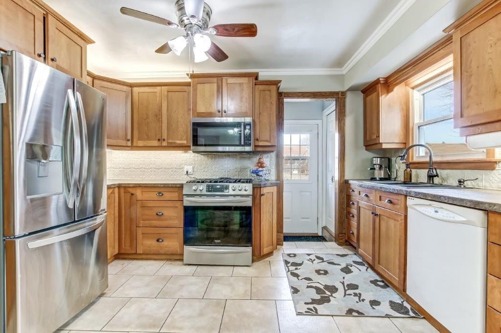 • Updated kitchen with ample cupboard space and modern finishes.
