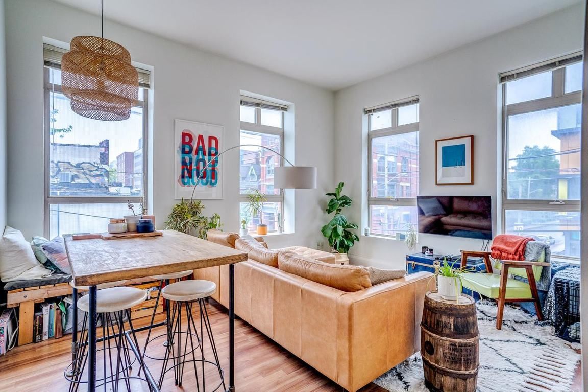 Your search ends here! Boutique style living at its finest. Welcome to this newer renovation 1 bedroom plus den 2nd floor walk-up, corner apartment located on the corner of queen st. West and dovercourt rd. In the art + design district. An outstanding design - the perfect combination of functionality & beauty! Modern kitchen complete with ensuite laundry. Wonderful open concept living space, the perfect flow! Great sized washroom complete with a tub & storage. Access to a large shared deck at the rear of the property perfect for enjoying the outdoors on a beautiful day. Walk score 98 + transit score 97. Queen st. Transit right at your doorstep. Do not miss this opportunity in this fantastic neighborhood! Convenient location; walk to wonderful shops & restaurants. Storage locker included! Make this wonderful apartment your next home!