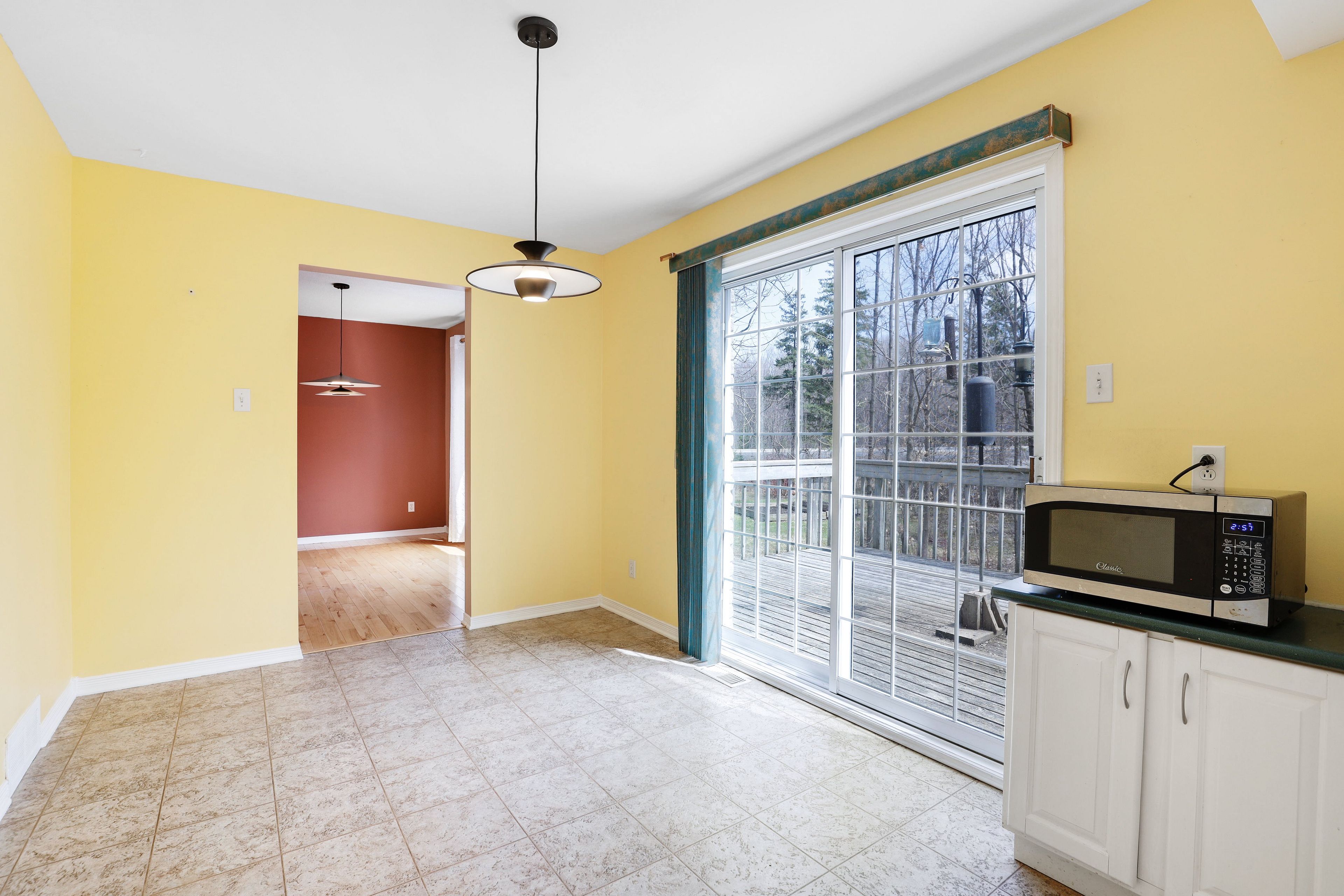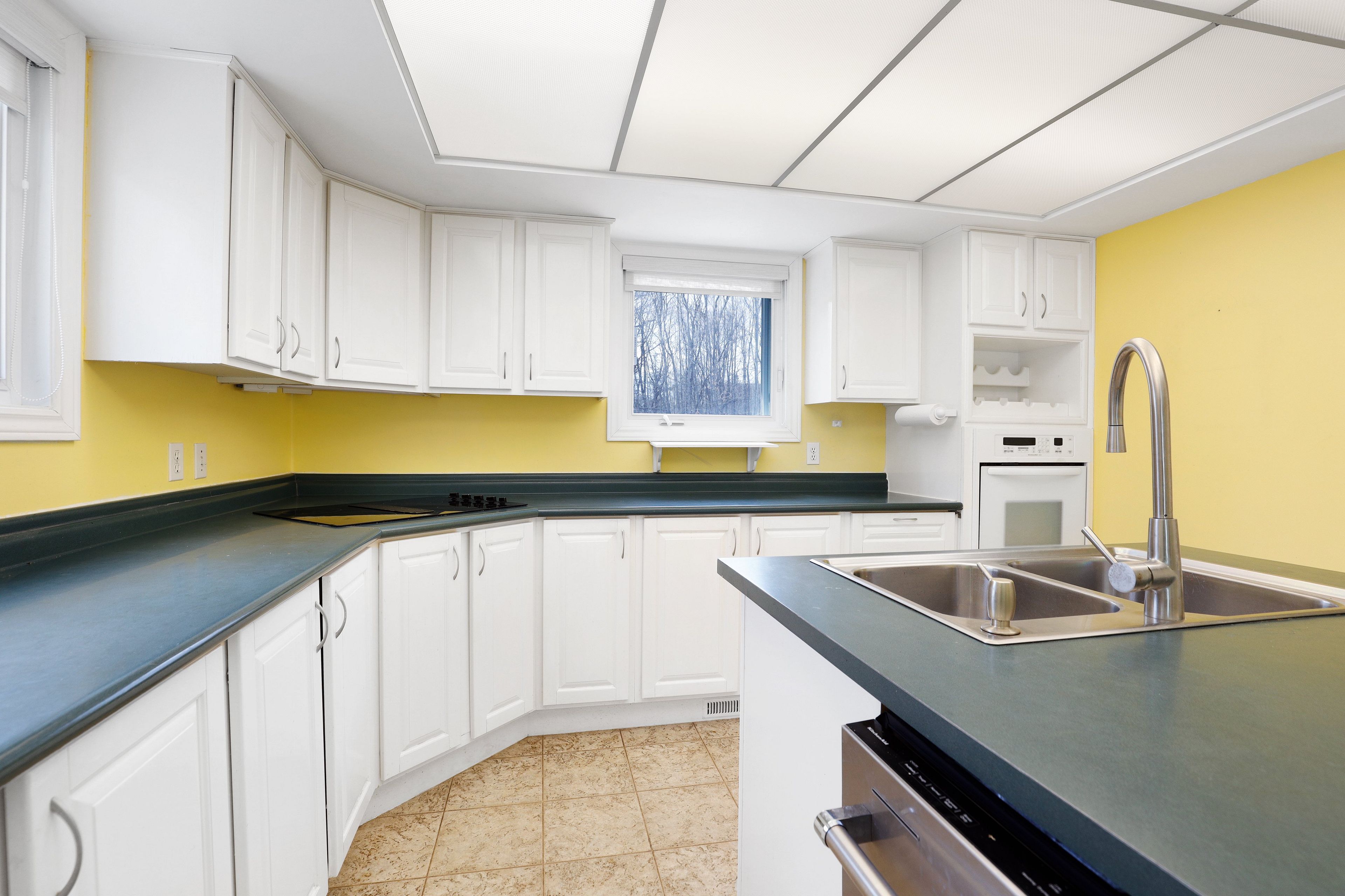 • Bright kitchen with modern fixtures and direct access to a large deck.