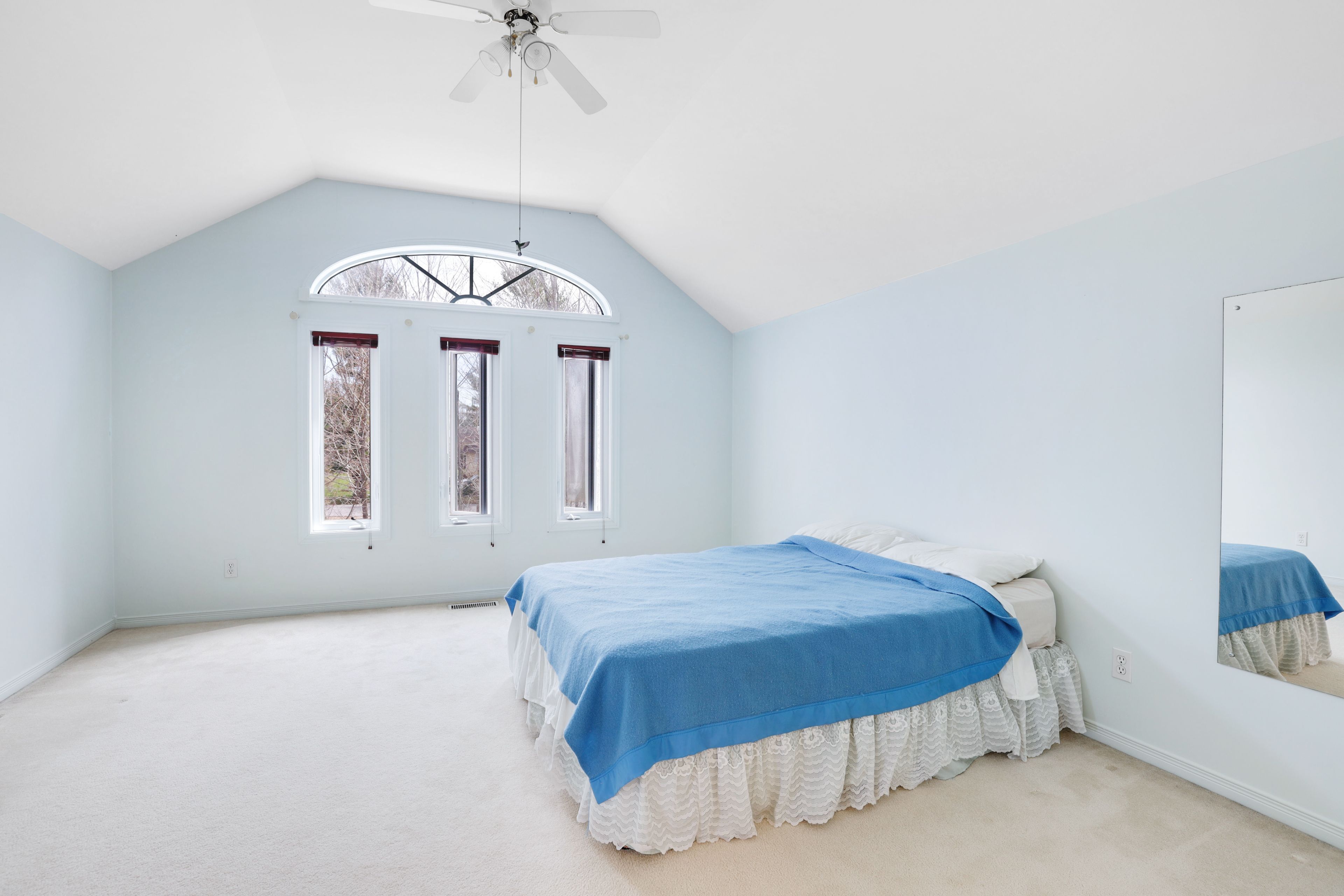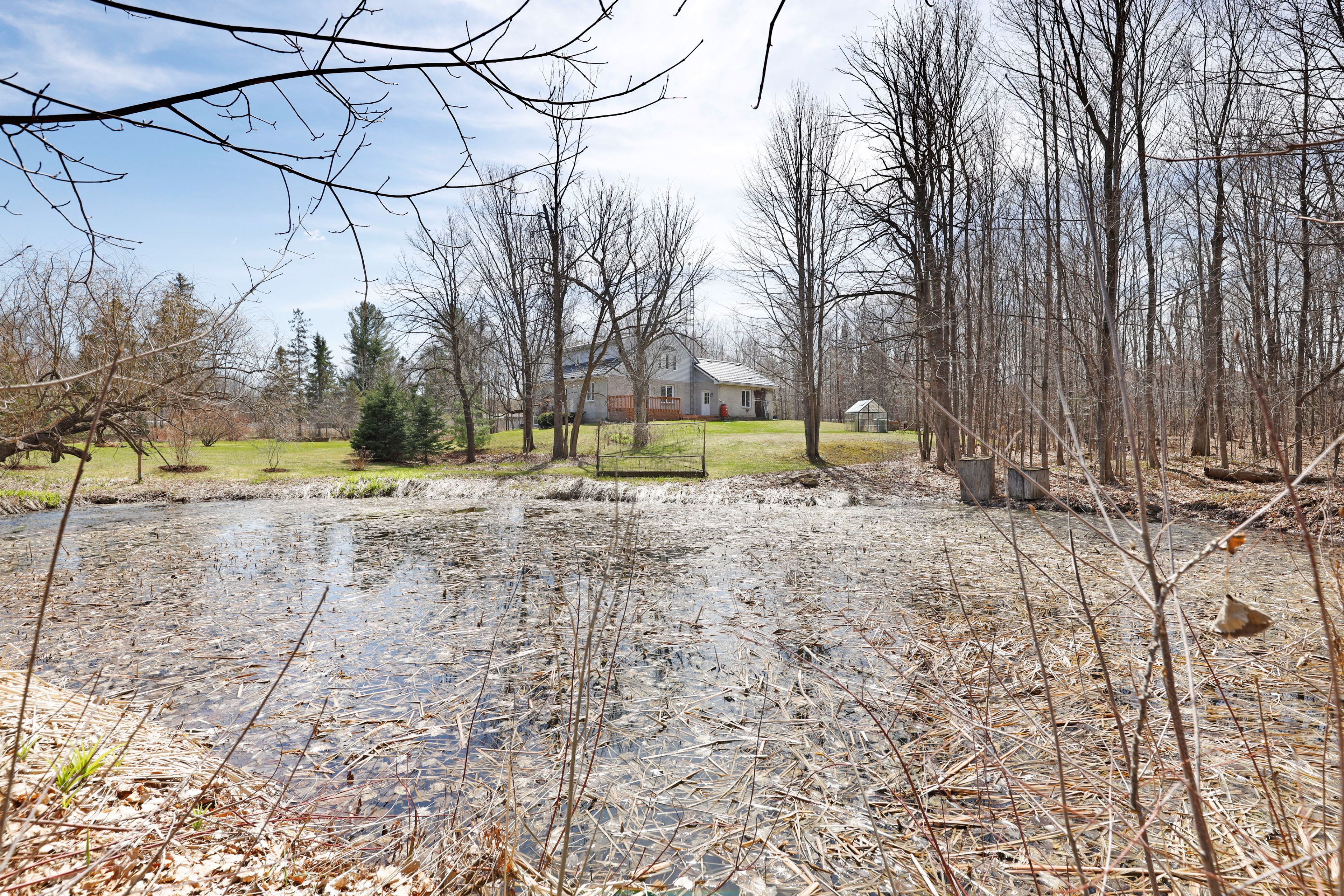 Country living at its best. Beautiful 3 bedroom, 3 bathroom home nestled on a private and secluded 2+ acres with a spring fed pond minutes from the village of russell. Bright and spacious kitchen with white cupboards and led sunshine ceiling. Kitchen island has a double stainless steel sink as well as a dishwasher. Eating area is adjacent to patio door access to south facing deck. Living room and dining room have beautiful maple floors. Main level primary bedroom with patio door access to private back deck facing pond and wooded area. Walk in closet and main bathroom next to primary bedroom. Second level boasts 2 large bedrooms with walk in closets and each have their own 3 piece en-suite bathroom. Laundry room is located at top of stairs. Fully finished basement with recreation room equipped with a pellet stove for quiet comfort. Spacious utility room for the handyman. Owner never needed a sump pump for the property as it is built high and dry. Deck from eating area is 10 x 14. Deck from primary bedroom is 8 x 29 with garage access. There is a walking trail around the properties perimeter. Water pond becomes a skating rink in the winter. Upgrades include: 2025 dishwasher, led kitchen lighting and gener link generator connection. 2021 water heater and expansion tank. 2018 new septic tank and maple floors on main level. 2016 metal roof and water softener. 2014 mitsubishi heat pump and system. 2015 replace submersible pump in the well and replace the iron filter. Other upgrades in early 2000 windows except moon shapes upstairs. Measurements provided by i guide to be verified.