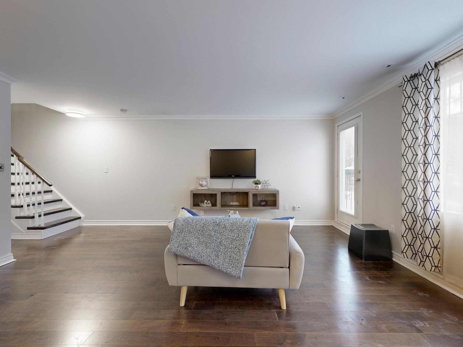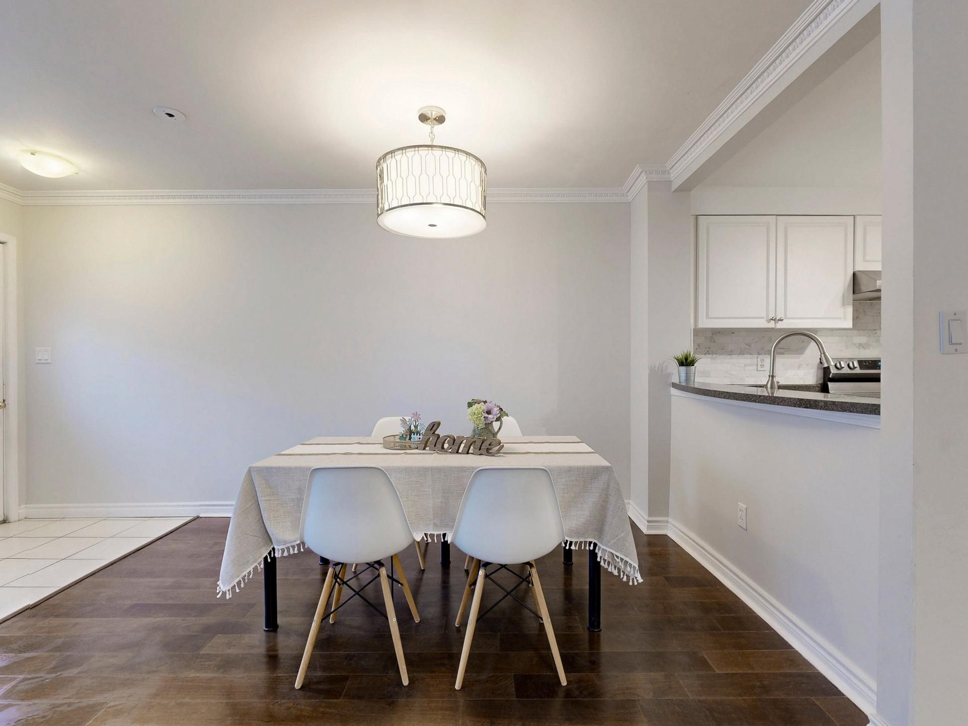 Rarely offered two-storey condo townhouse with two parking spaces in chelsea gate, steps to finch subway station, shopping, and restaurants. Carpet-free living with fresh paint throughout. Bright unit featuring an open-concept living and dining area, and an eat-in kitchen with backsplash, stainless steel appliances, and breakfast bar. Upper level offers two bedrooms, a full bath, in-suite laundry, and a spacious den ideal for a home office or recreation area. The primary bedroom includes a walk-out balcony and walk-in closet. Approximately $10,000 in upgrades, including an owned new tankless water heater and hydronic air handler. Move-in ready. Ideal for first-time buyers, families, or downsizers seeking space, comfort, and convenience.