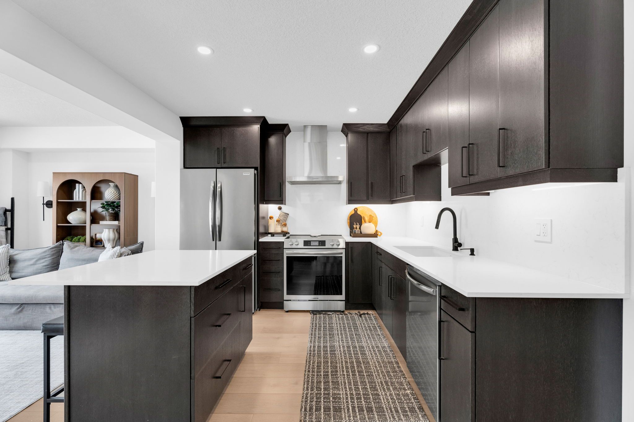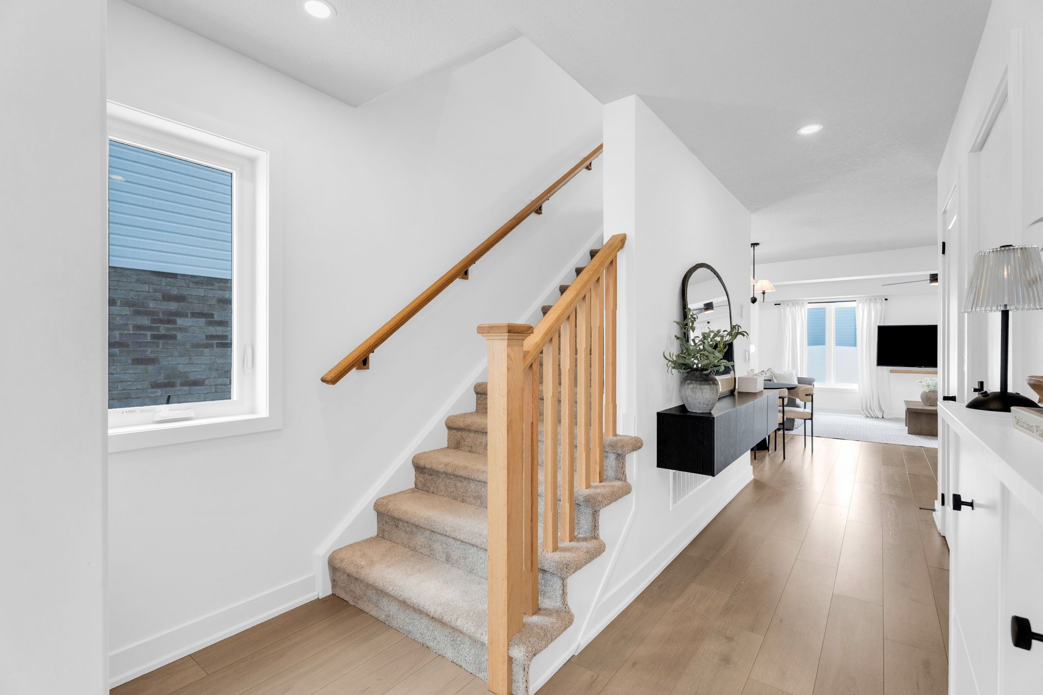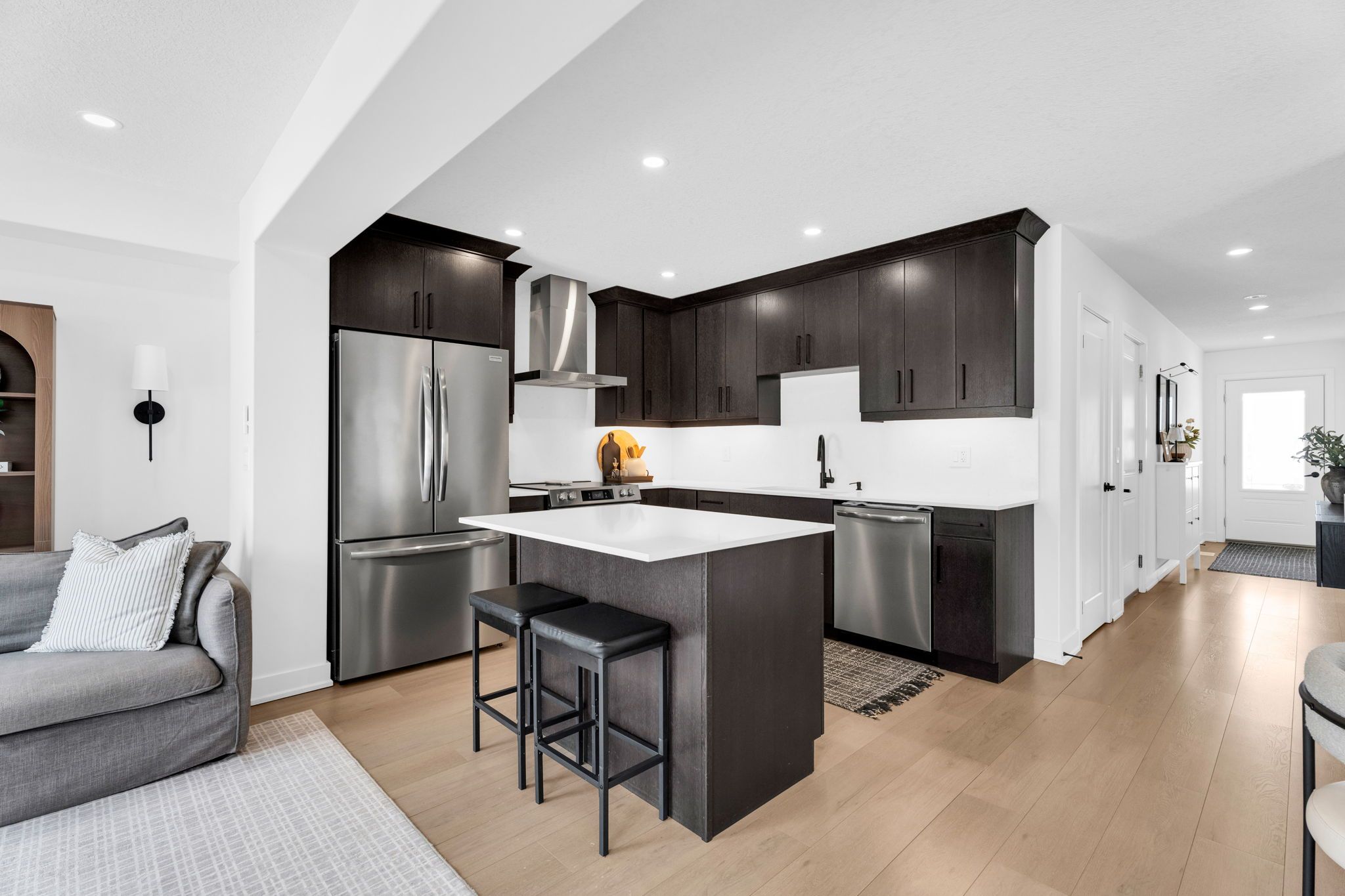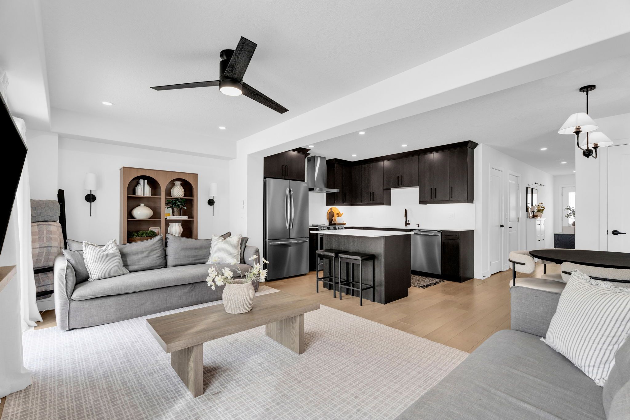 • Open-concept main floor with upgraded kitchen and laminate flooring.
