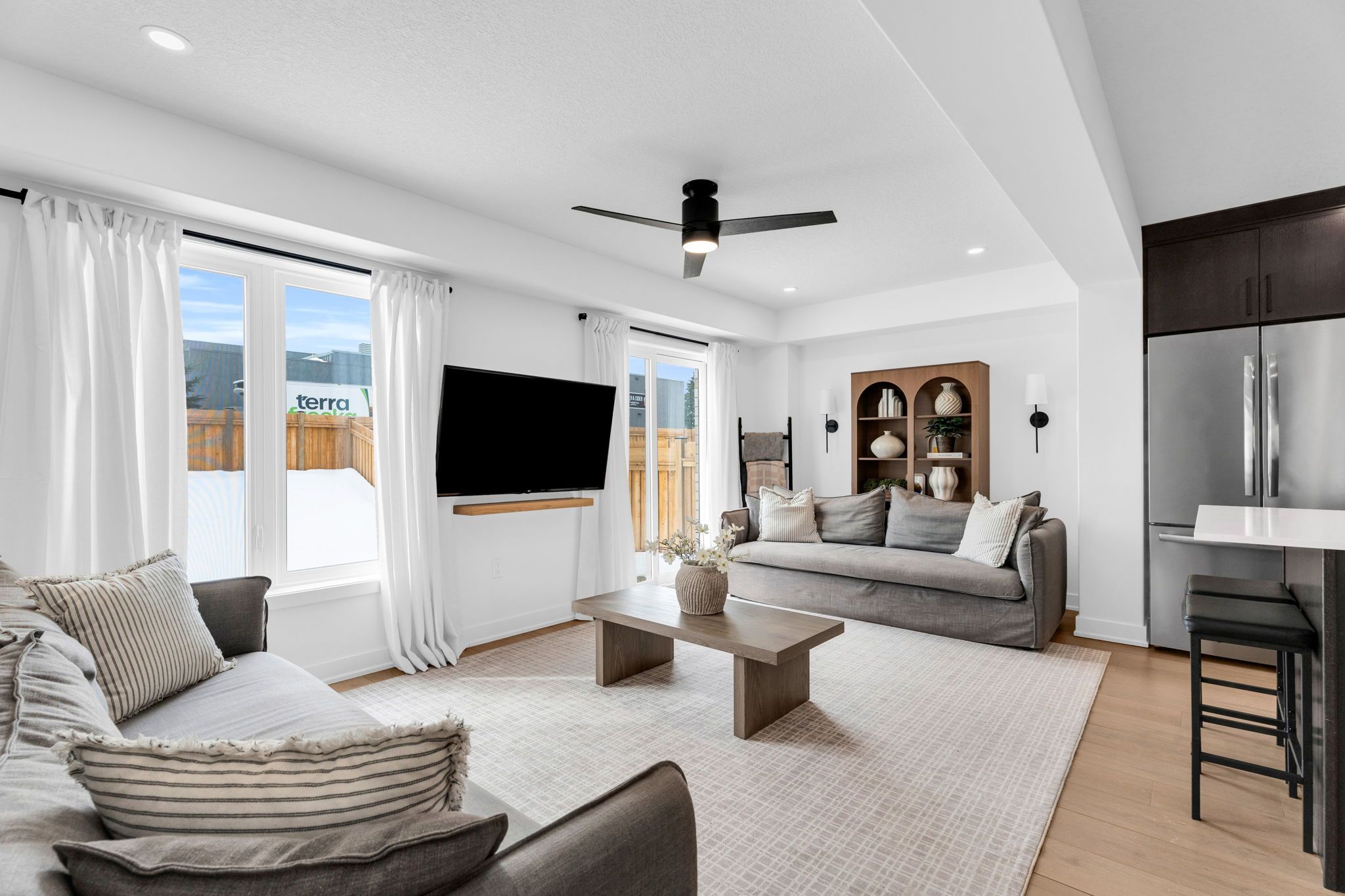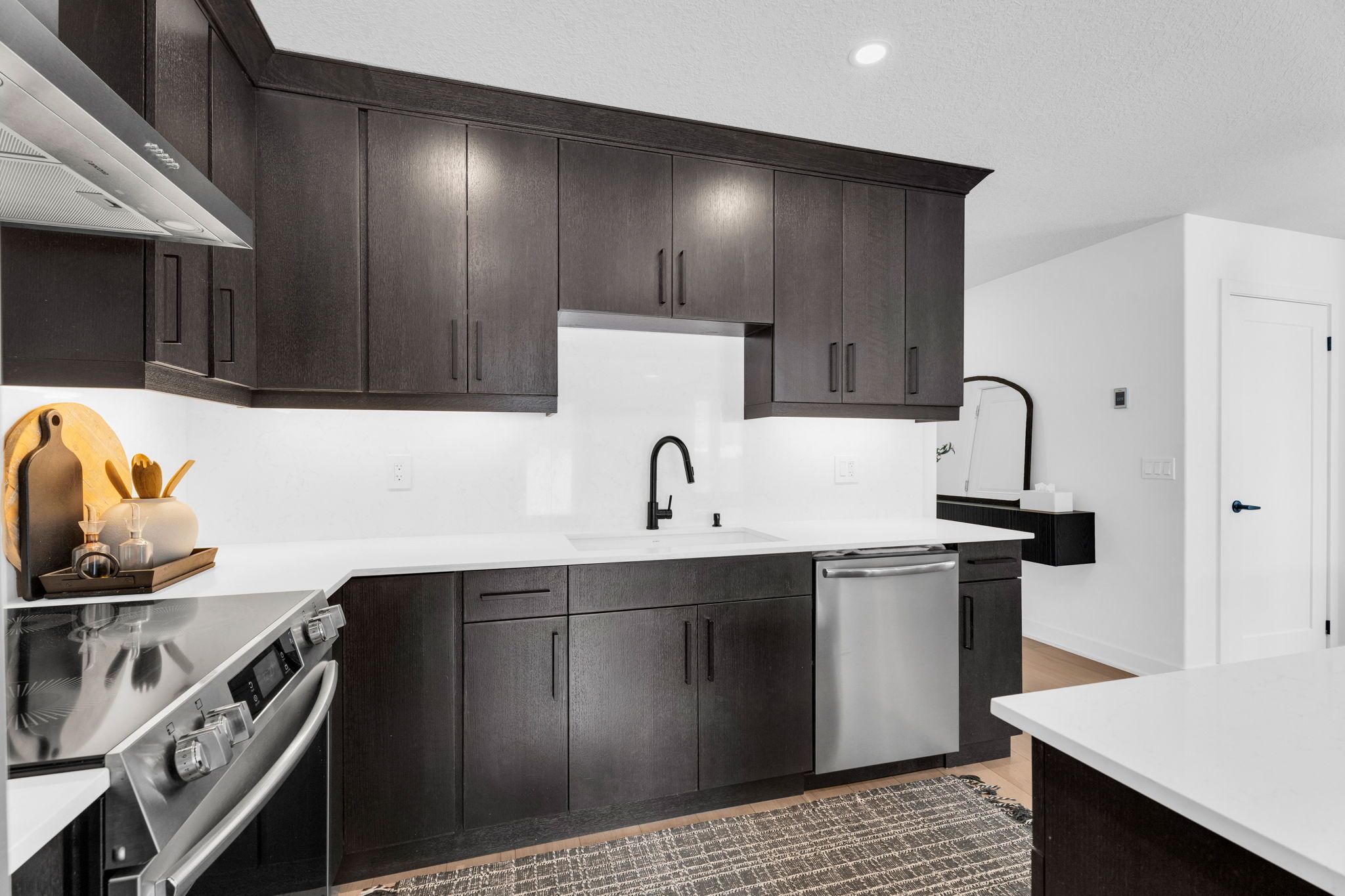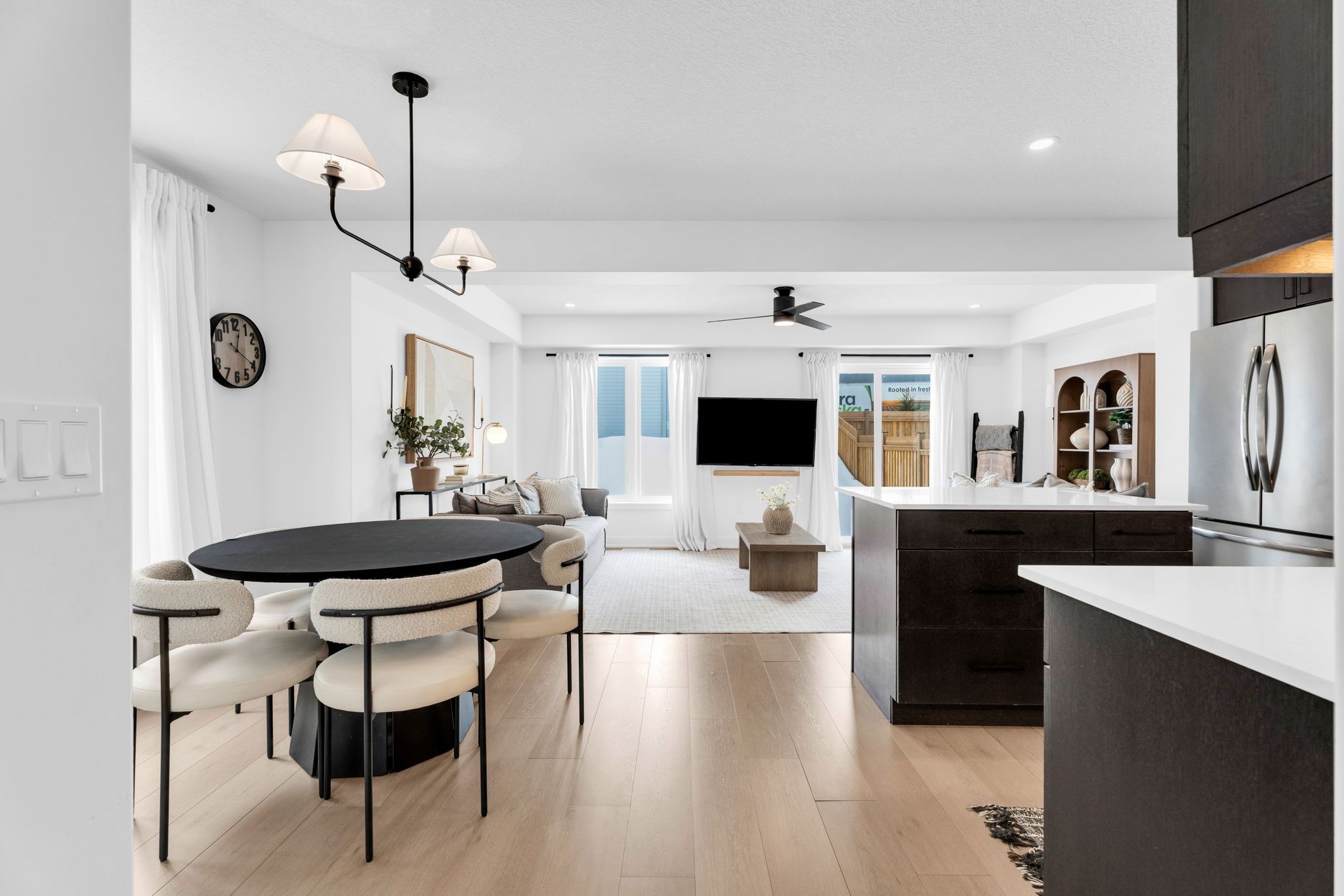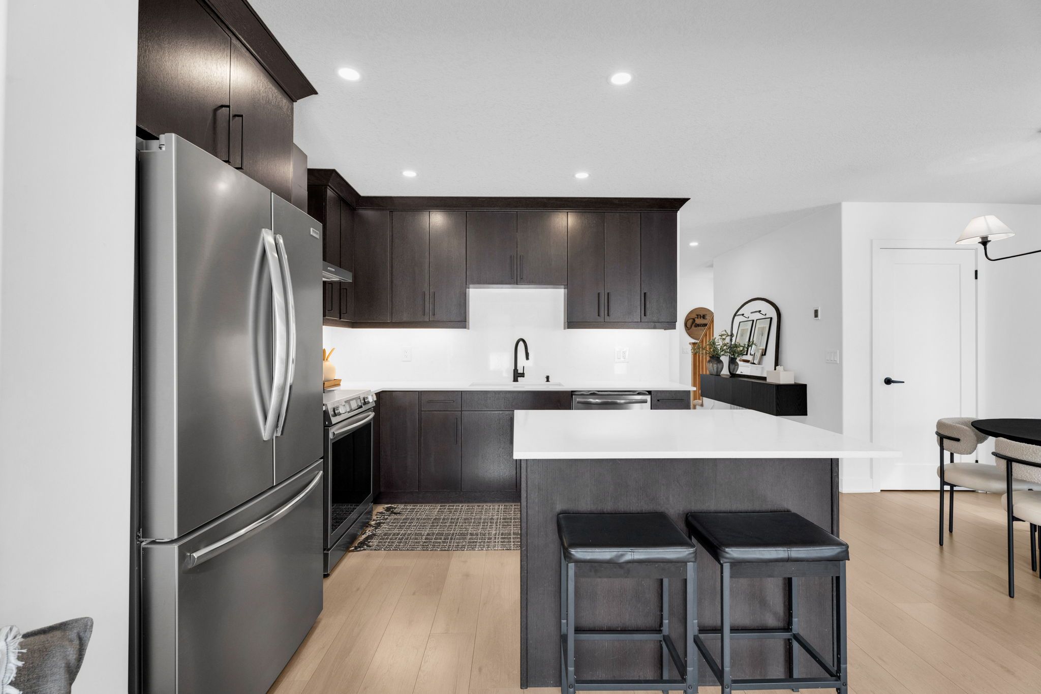 • Open-concept main floor with upgraded kitchen and laminate flooring.