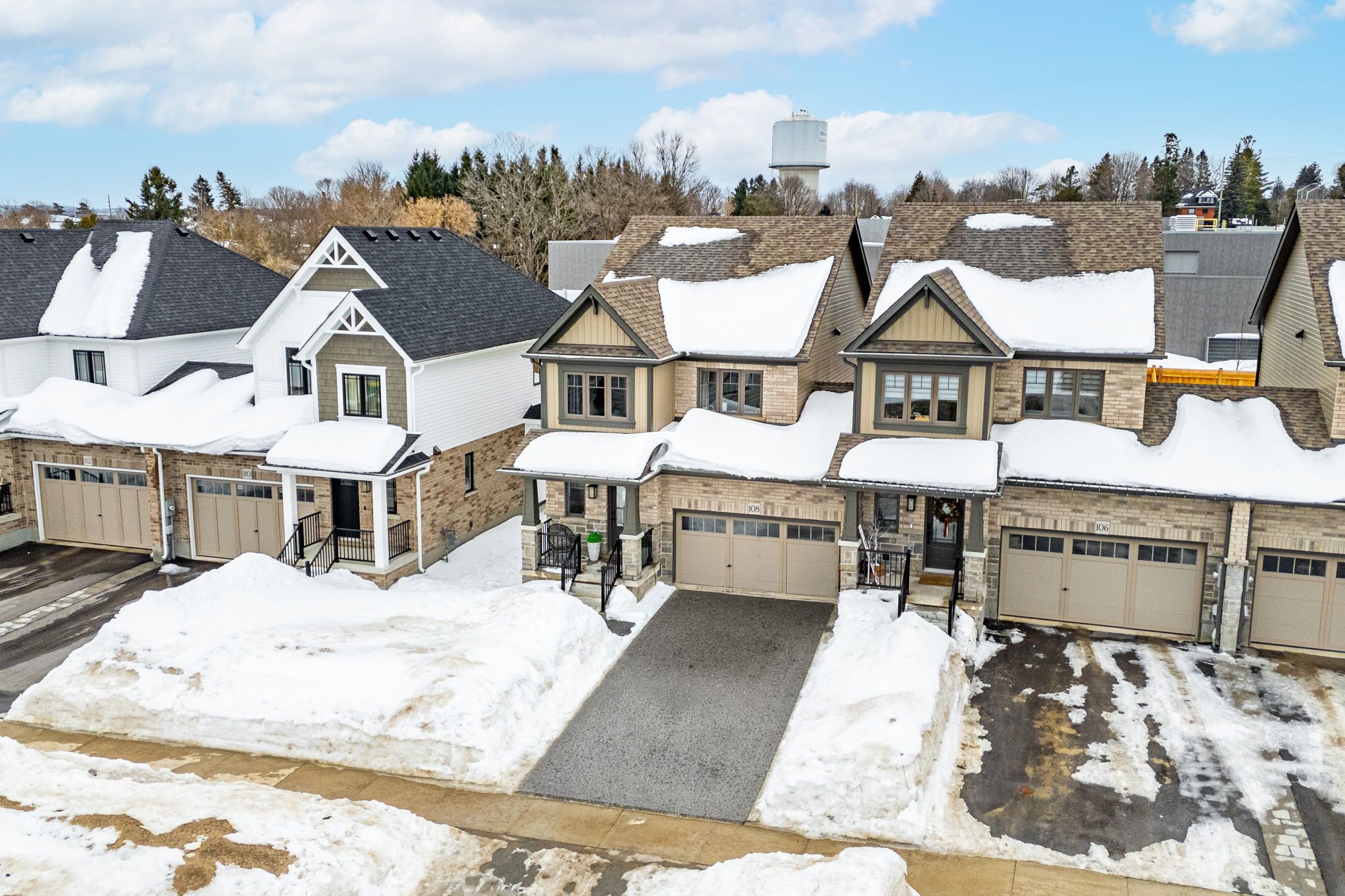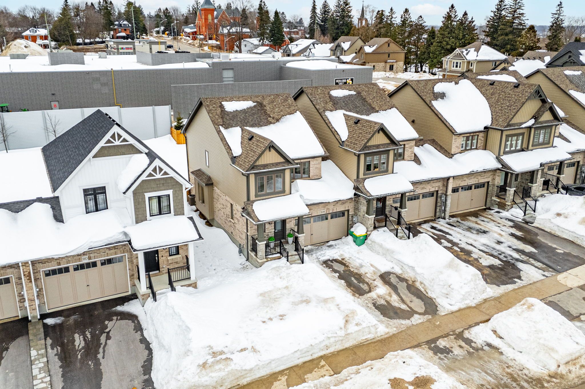 A modern 2024-built devonleigh end-unit townhome in the centre point south community of markdale, featuring a number of upgrades throughout! Perfect for first-time buyers, young families, or those looking to downsize, this move-in-ready home offers both comfort and convenience with ample parking and a private backyard space. This home blends modern living with small-town charm! The bright and inviting main floor showcases an open-concept layout with a convenient powder room, interior access to the garage, laminate flooring, and an upgraded kitchen complete with quartz countertops, a seamless backsplash, upgraded hardware and modern cabinetry. Upstairs, you'll find three bedrooms with large windows that fill the space with natural light. The primary bedroom features a sizeable walk-in closet and a 3-piece ensuite with a walk-in shower and stylish vanity. A second full bathroom on the upper level serves the additional two bedrooms, making it ideal for children or guests. The unfinished basement is full of potential, giving you the opportunity to design the perfect space-whether for entertaining, working out, added storage, or expanded living. Markdale is a growing hub in central grey county, offering shops, parks, a hospital, an elementary school, an arena, restaurants, a public library, and more, all within a very walkable community. Outdoor enthusiasts will appreciate the easy access to the beaver valley region, with opportunities for hiking, waterfall exploring, fishing, golfing, and skiing at blue mountain and beaver valley ski club. Your next chapter starts here!