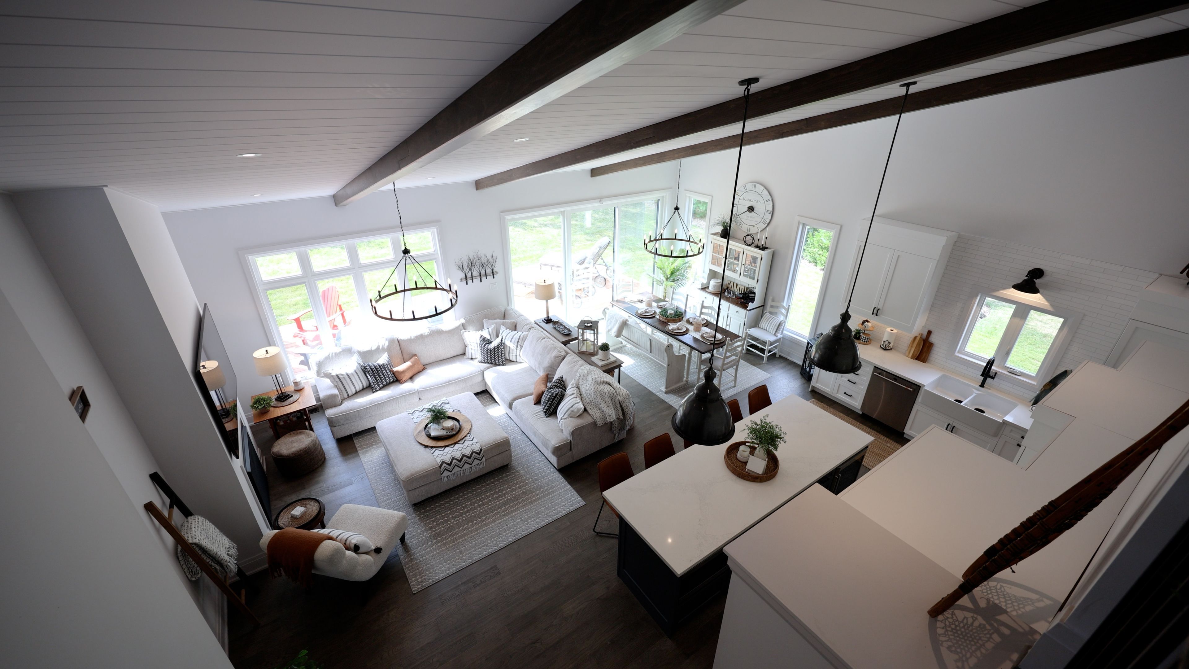 Welcome to 108 goldie court, a perfect home for your 4-season lifestyle! Meticulously upgraded, this open concept alta model (2,375sqft) will not disappoint! A large inviting foyer to greet guests leads to a show-stopping great room with vaulted shiplap ceiling featuring 3 beams, restoration hardware island pendant lights, pot lights, hardwood floors, 41" gas fireplace and a 12' by 8' sliding door enhancing the treed view. Entertain family and friends around the huge quartz island (9'8" sink free) with a beverage fridge and undercounter microwave drawer. Kitchen features stainless steel ge cafe appliances (fridge, induction stove & dishwasher), a stylish franke double-bowl farmhouse ceramic sink with additional window, a modern backsplash, plenty of storage including double pots & pans drawers, deep pantry, extended cabinets with undermount lighting & a shiplap vent hood. A pocket door leads to the laundry room with a double closet & garage access. Spacious main floor primary bedroom has a walk-in closet and a 5 pc. Ensuite featuring upgraded moen faucets & handheld shower heads, glass 1/2 wall for shower & a pocket door. Bedroom 2 on main floor makes a great office/den with large window. Second floor has 2 two bedrooms (bdrm 4 with additional side window), a large loft area overlooking the great room & a 4pc bath. Open to below hardwood staircase to basement with bonus 9' ceiling, radiant heated floor (cozy for winter), large windows and a 200amp electrical panel. Relax and watch the sunset on your western exposure 400sqft deck with gas bbq hookup & tranquil protected woodland view. Store your toys & gear in a 3 bay oversized dream garage with 9' wide doors, high ceiling & a 6 car driveway (no sidewalk). Conveniently situated between the scenic waterfront community of thornbury & collingwood, your active lifestyle is just steps to the georgian trail & council beach, minutes to georgian bay club, private ski hills & blue mountain village.