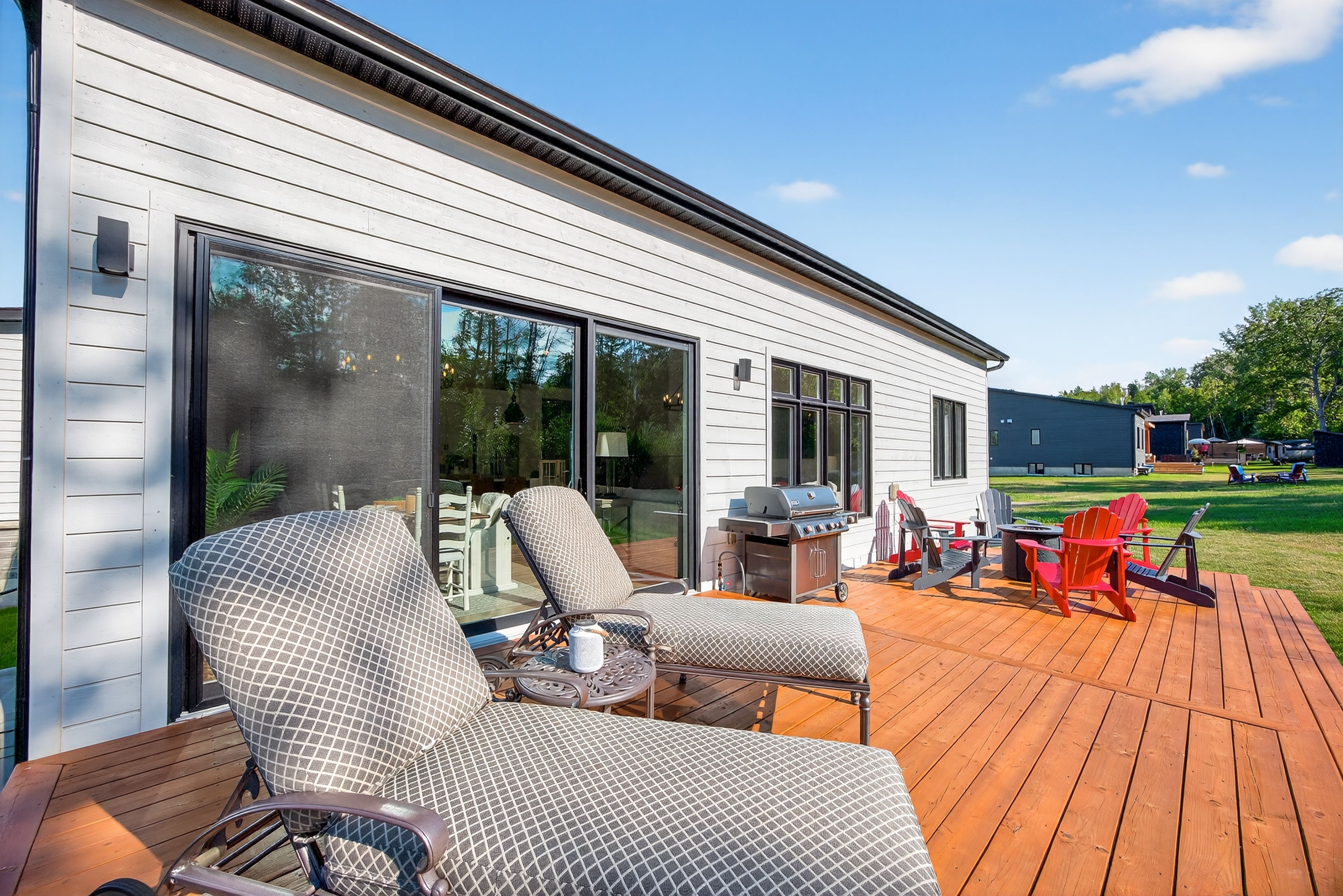 • Enjoy sunsets on a substantial deck with gas BBQ hookup.