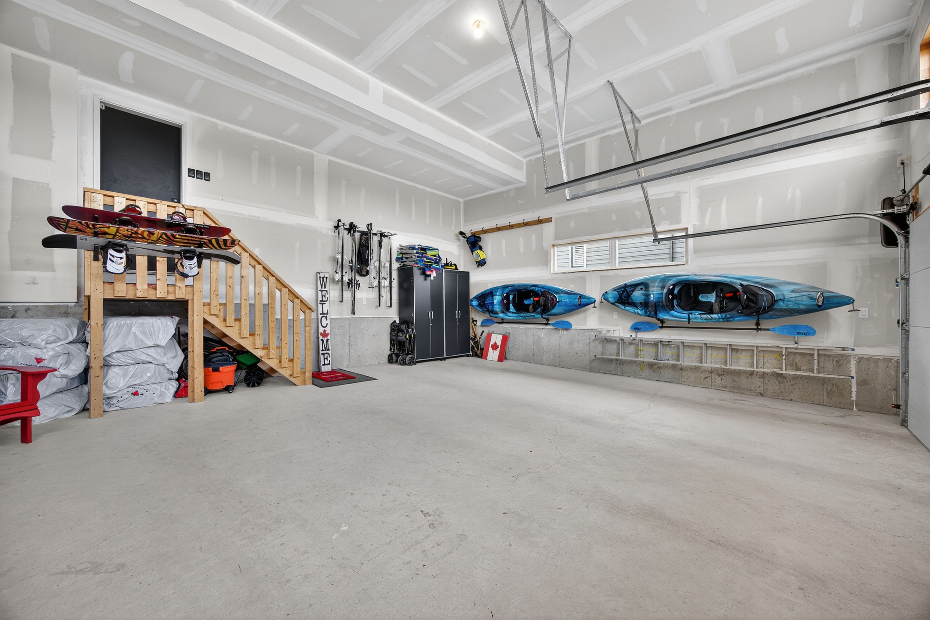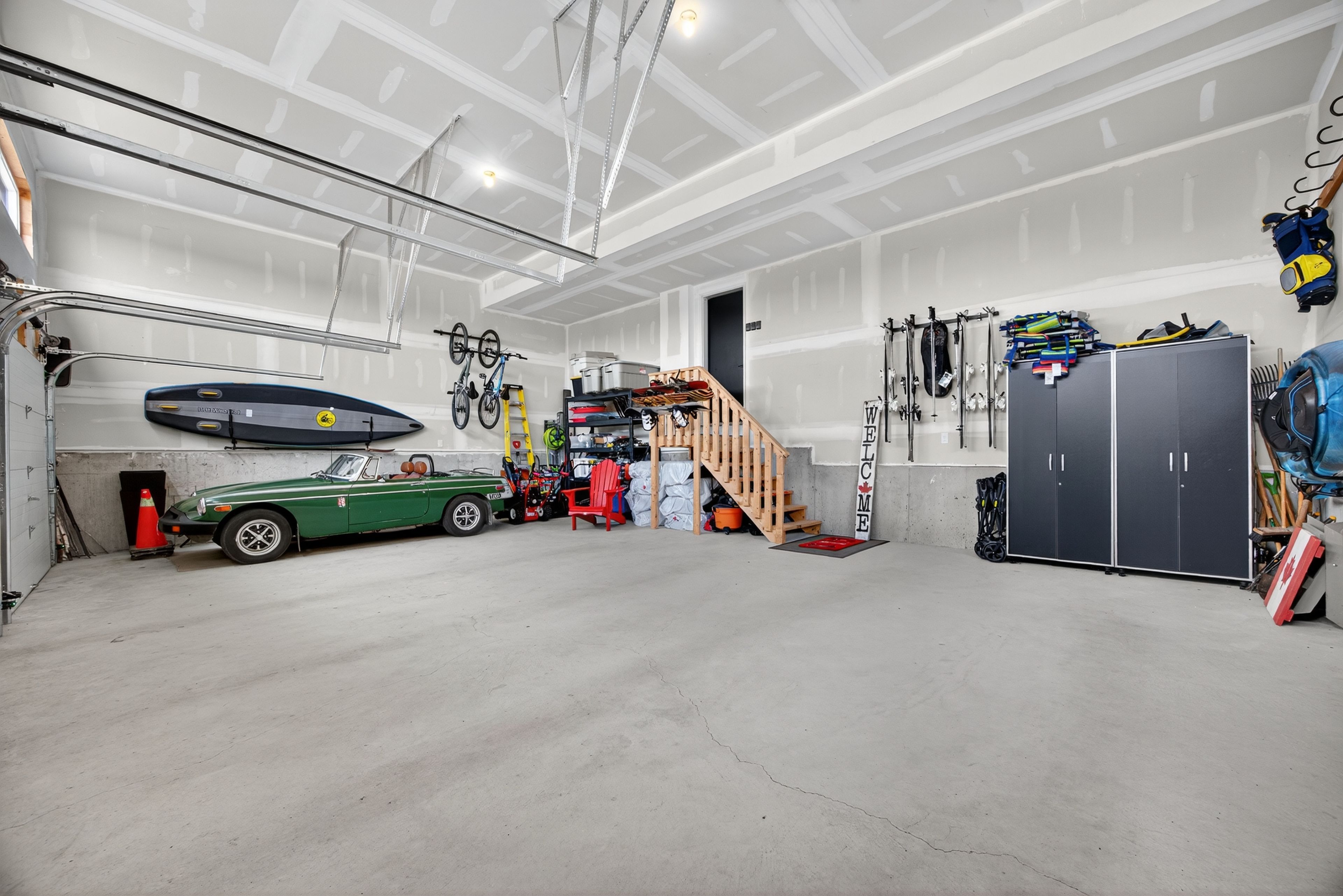 • Oversized garage with ample storage and room for multiple vehicles.