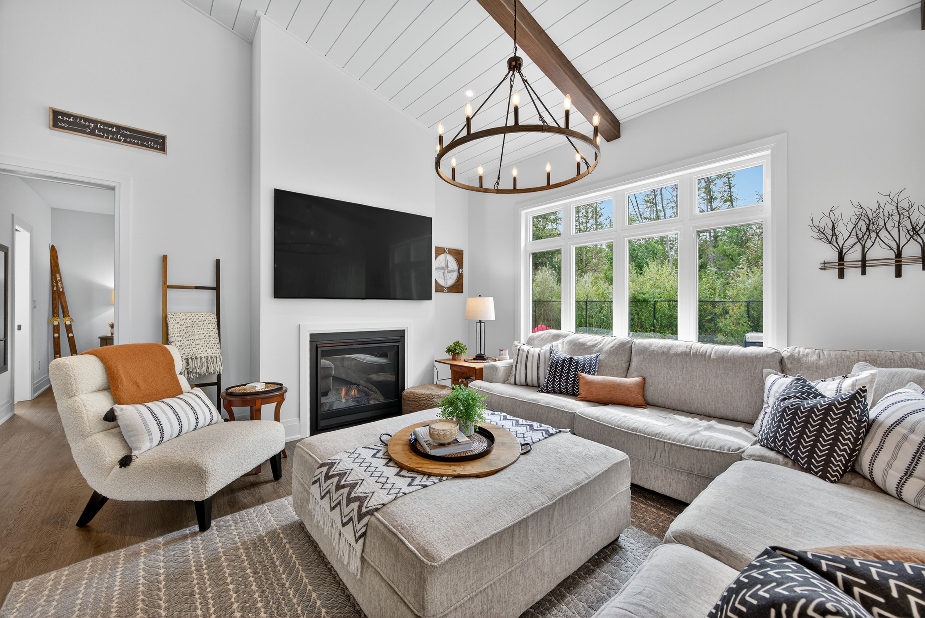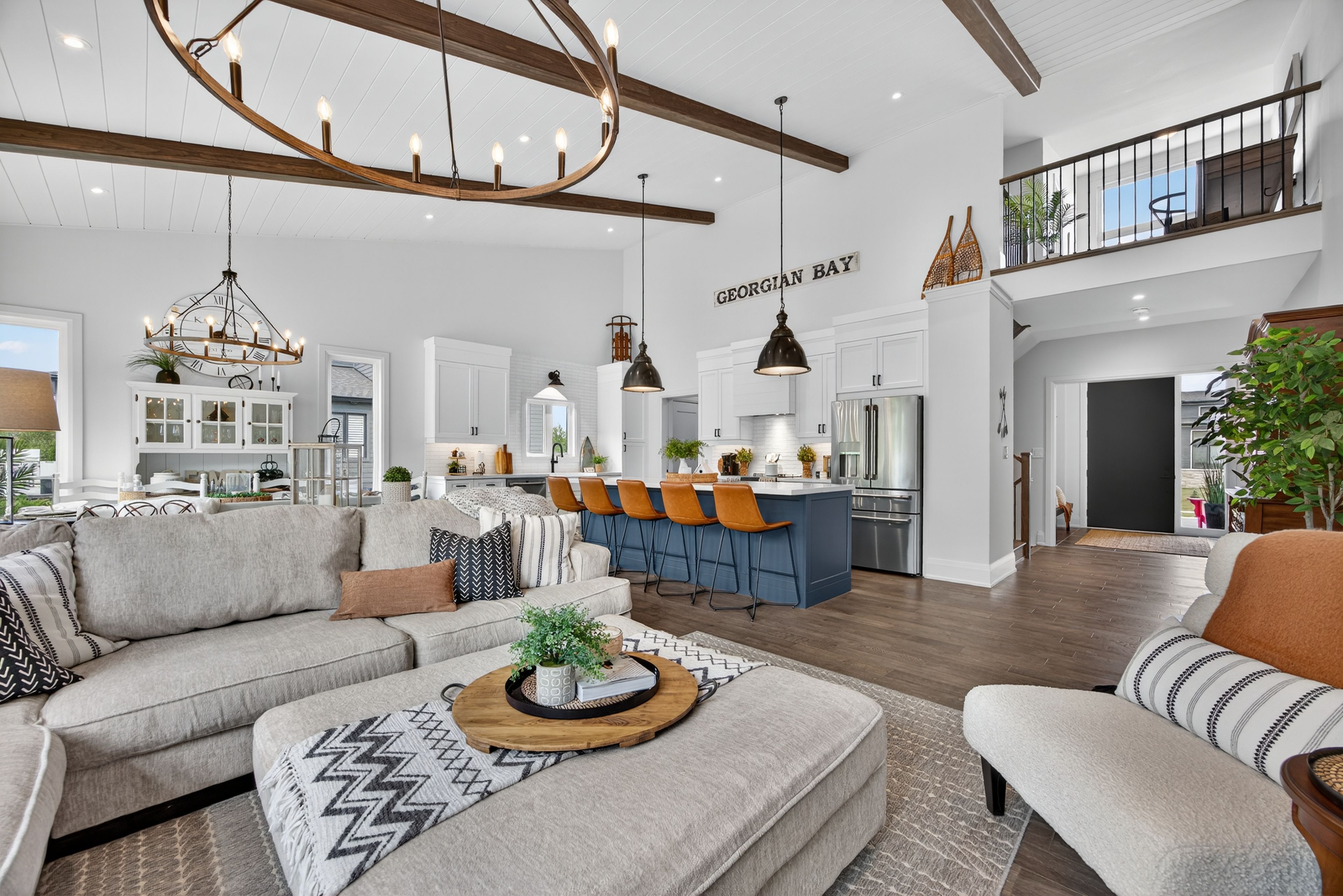 Welcome to 108 goldie court, a perfect home for your 4-season lifestyle! Meticulously upgraded, this open concept alta model (2,375sqft) will not disappoint! A large inviting foyer to greet guests leads to a show-stopping great room with vaulted shiplap ceiling featuring 3 beams, restoration hardware island pendant lights, pot lights, hardwood floors, 41" gas fireplace and a 12' by 8' sliding door enhancing the treed view. Entertain family and friends around the huge, quartz island (9'8" sink free) with beverage fridge and undercounter microwave drawer. Kitchen features stainless steel ge cafe appliances (fridge, induction stove & dishwasher), a stylish frankle double-bowl farmhouse ceramic sink with additional window, a modern backsplash, plenty of storage including double pots & pans drawers, deep pantry, extended cabinets with undermount lighting & shiplap hood vent. A pocket door leads to the laundry room with double closet & garage access. Spacious main floor primary bedroom has a walk-in closet and a 5pc ensuite featuring upgraded black moen faucets & handheld shower heads, glass 1/2 wall for shower & pocket door. Bedroom 2 on the main floor makes a great office/den with large window. Second floor has 2 bedrooms (bdrm 4 with additional side window), a large loft area overlooking the great room & a 4pc bath. Open to below hardwood staircase to basement with bonus 9' ceiling, radiant heated floor (cozy for the winter), large windows and a 200amp electrical panel. Relax and watch the sunset on your western exposure 400sqft deck with gas bbq hookup & tranquil protected woodland view. Store your toys & gear in a 3 bay oversized dream garage with 9' wide doors, high ceiling & a 6 car driveway (no sidewalk). Conveniently situated between the scenic waterfront community of thornbury & collingwood, your active lifestyle is just steps to the georgian trail & council beach, minutes to georgian bay club, private ski hills & blue mountain village.