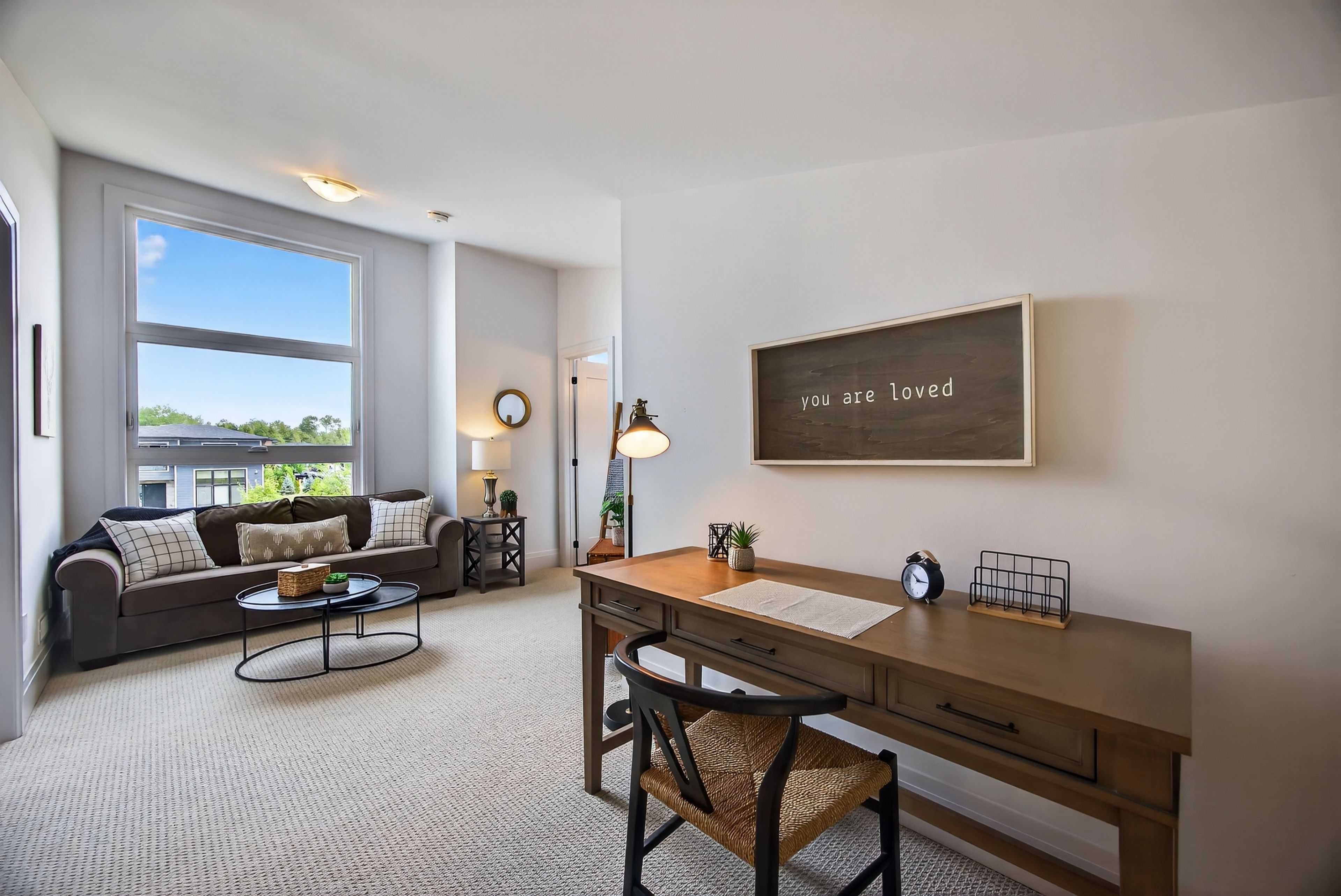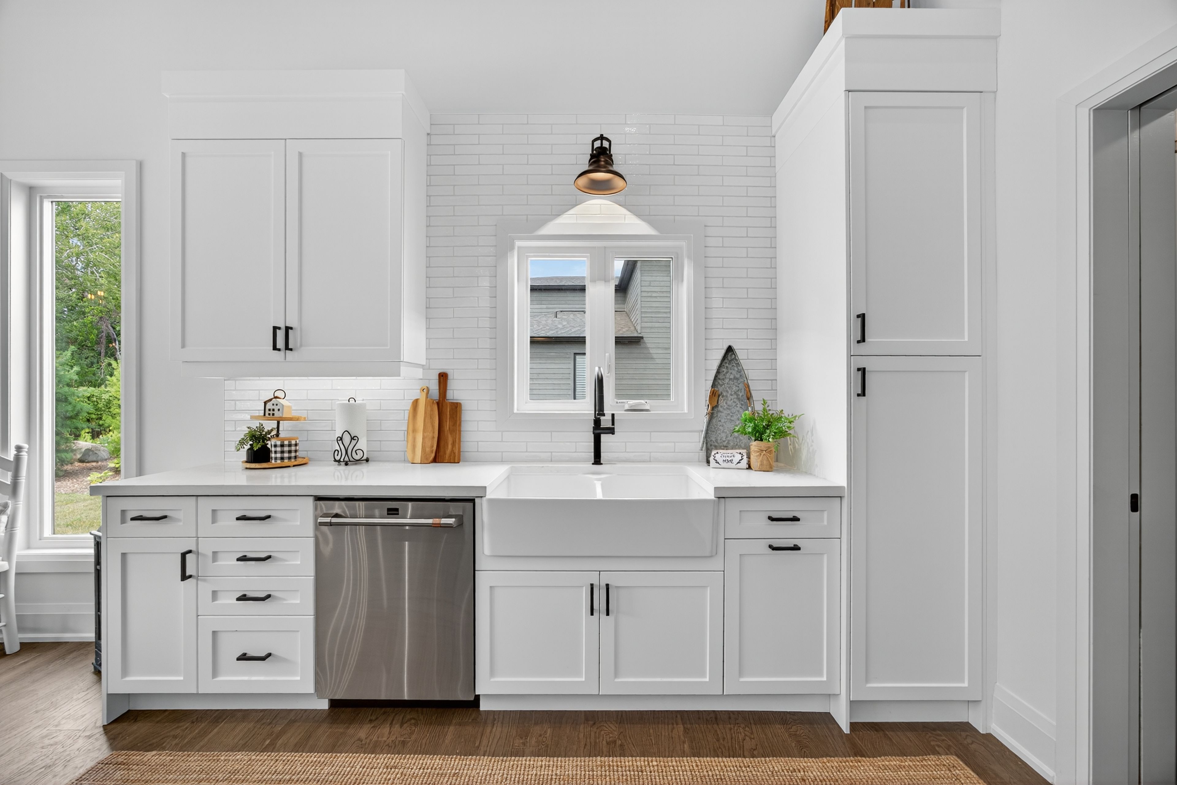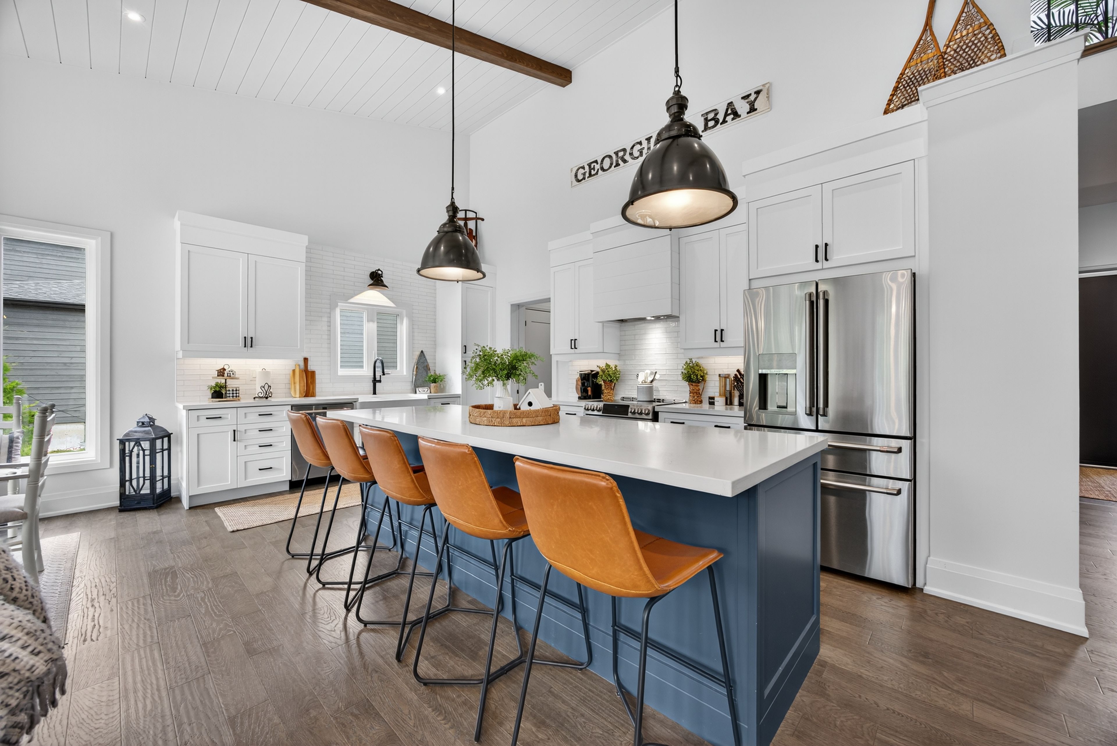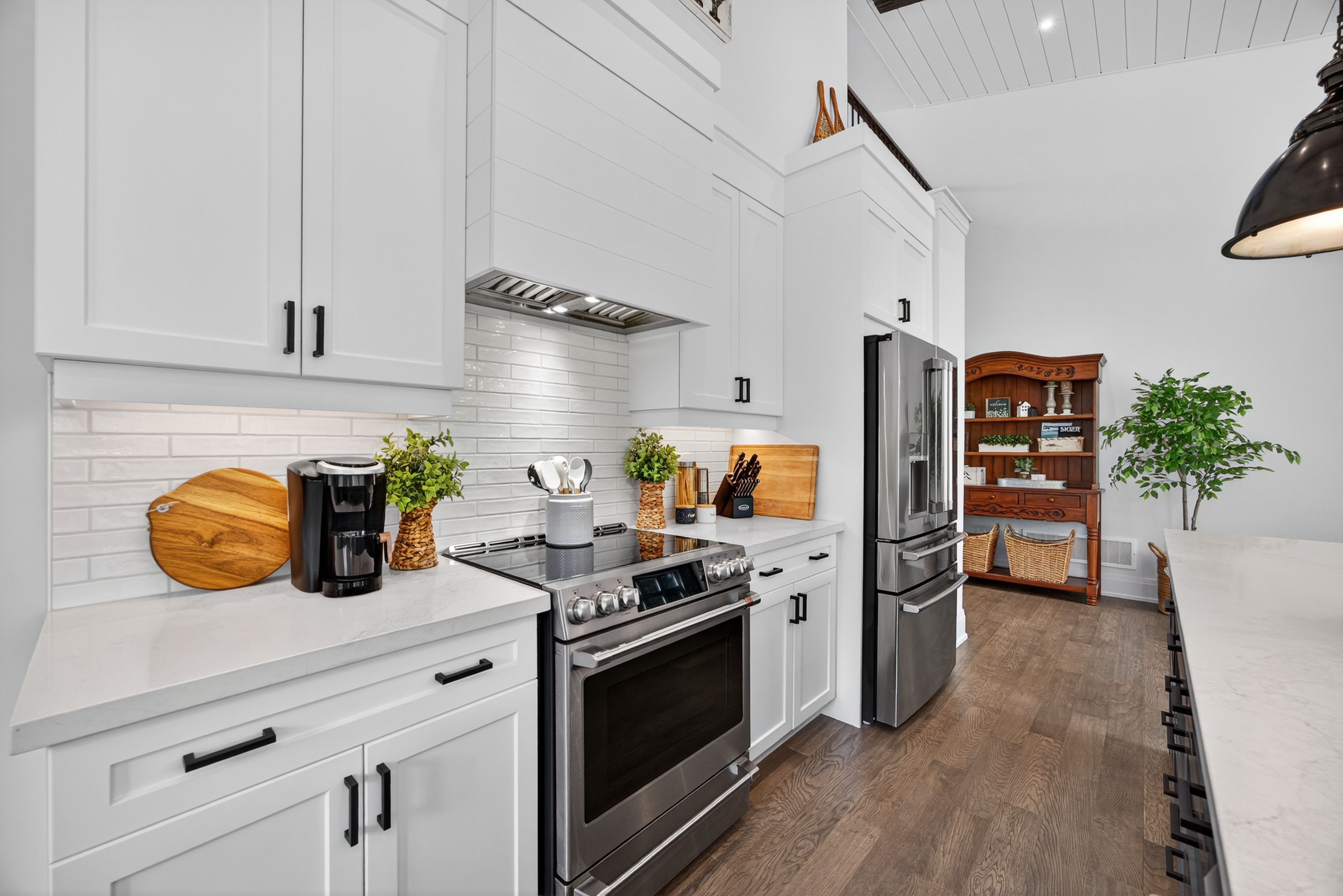 • Large quartz island in kitchen, perfect for entertaining and casual dining.