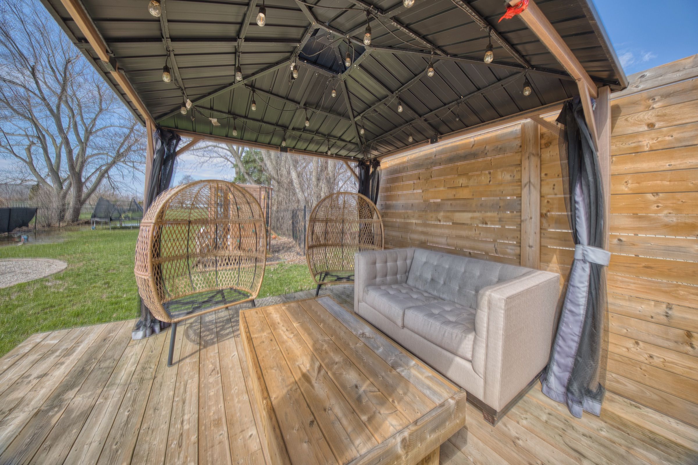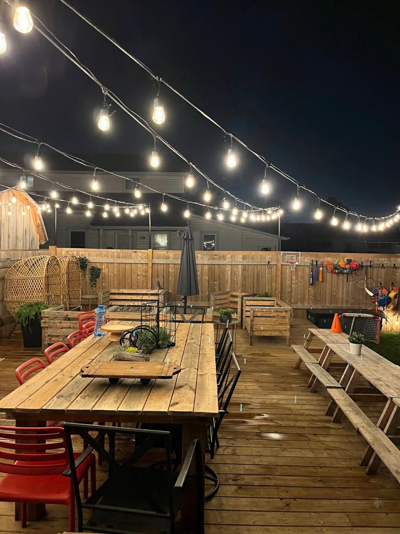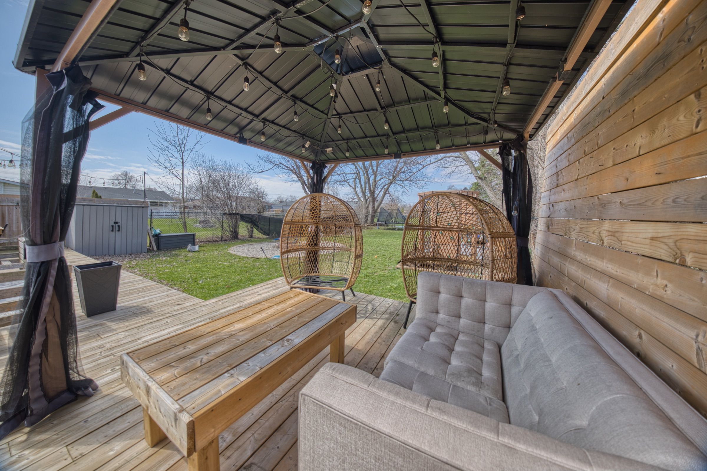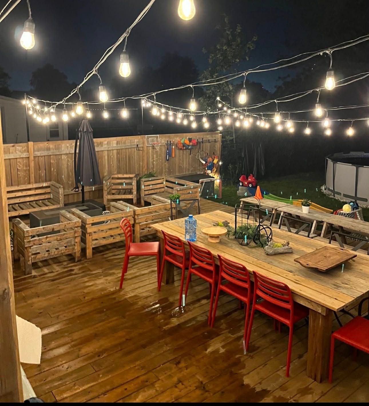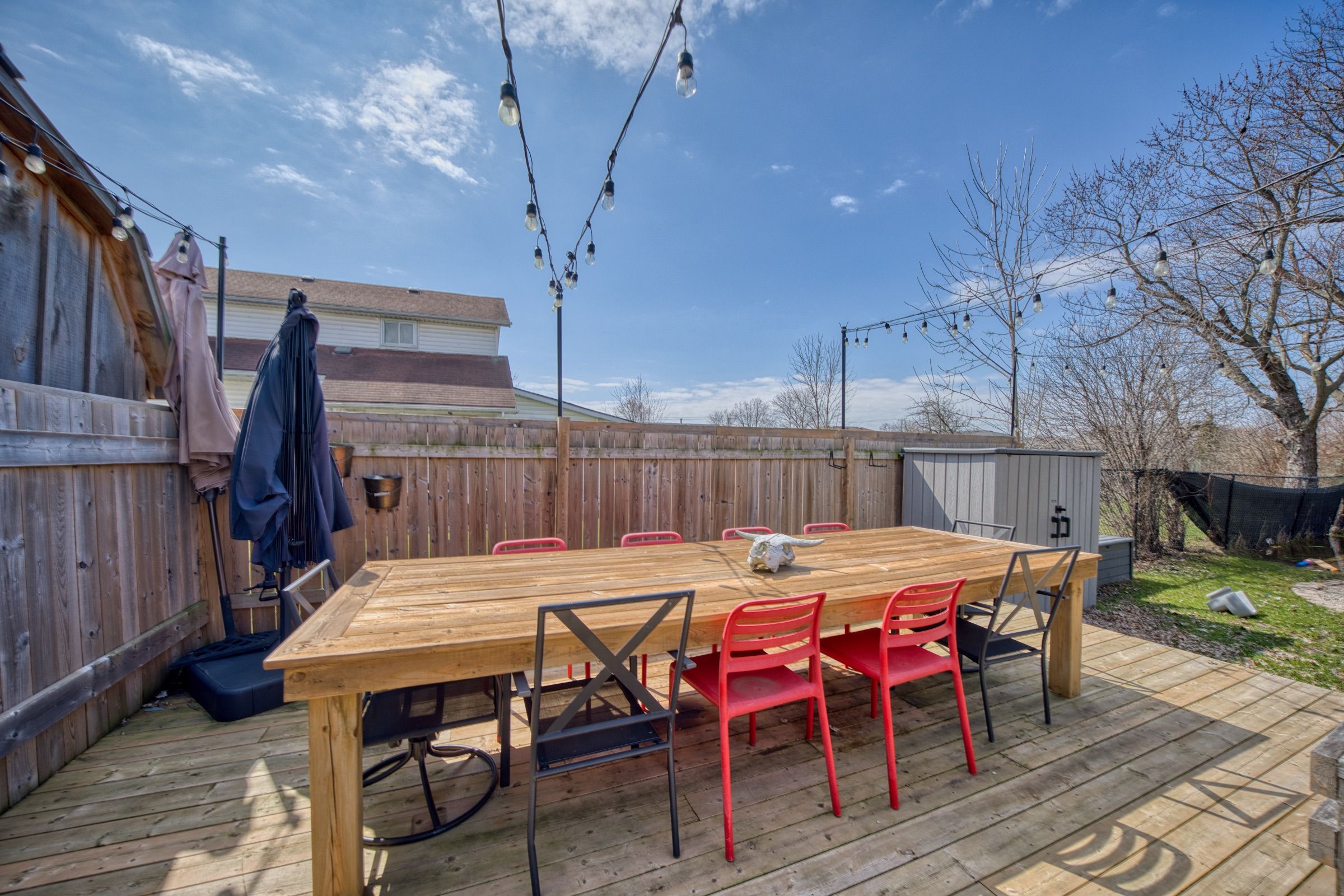 • Huge backyard with deck, firepit, and space for outdoor activities.