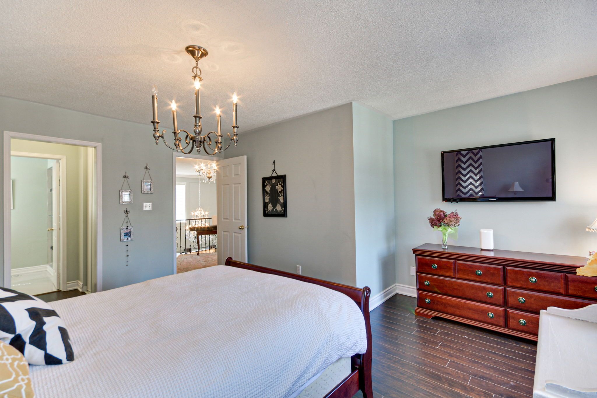 • Large master bedroom featuring two closets and an ensuite bathroom.