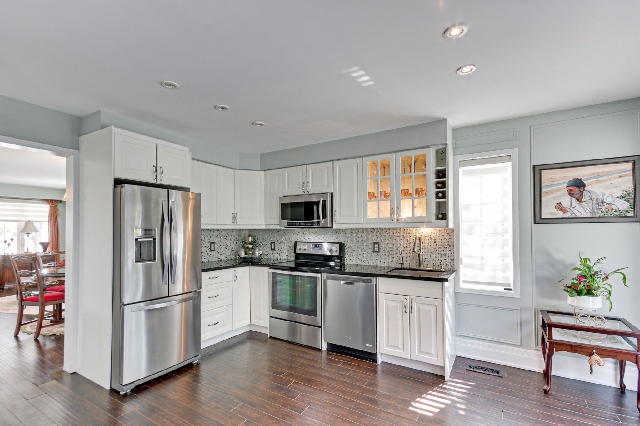 • Modern kitchen with stainless steel appliances and views of the backyard.