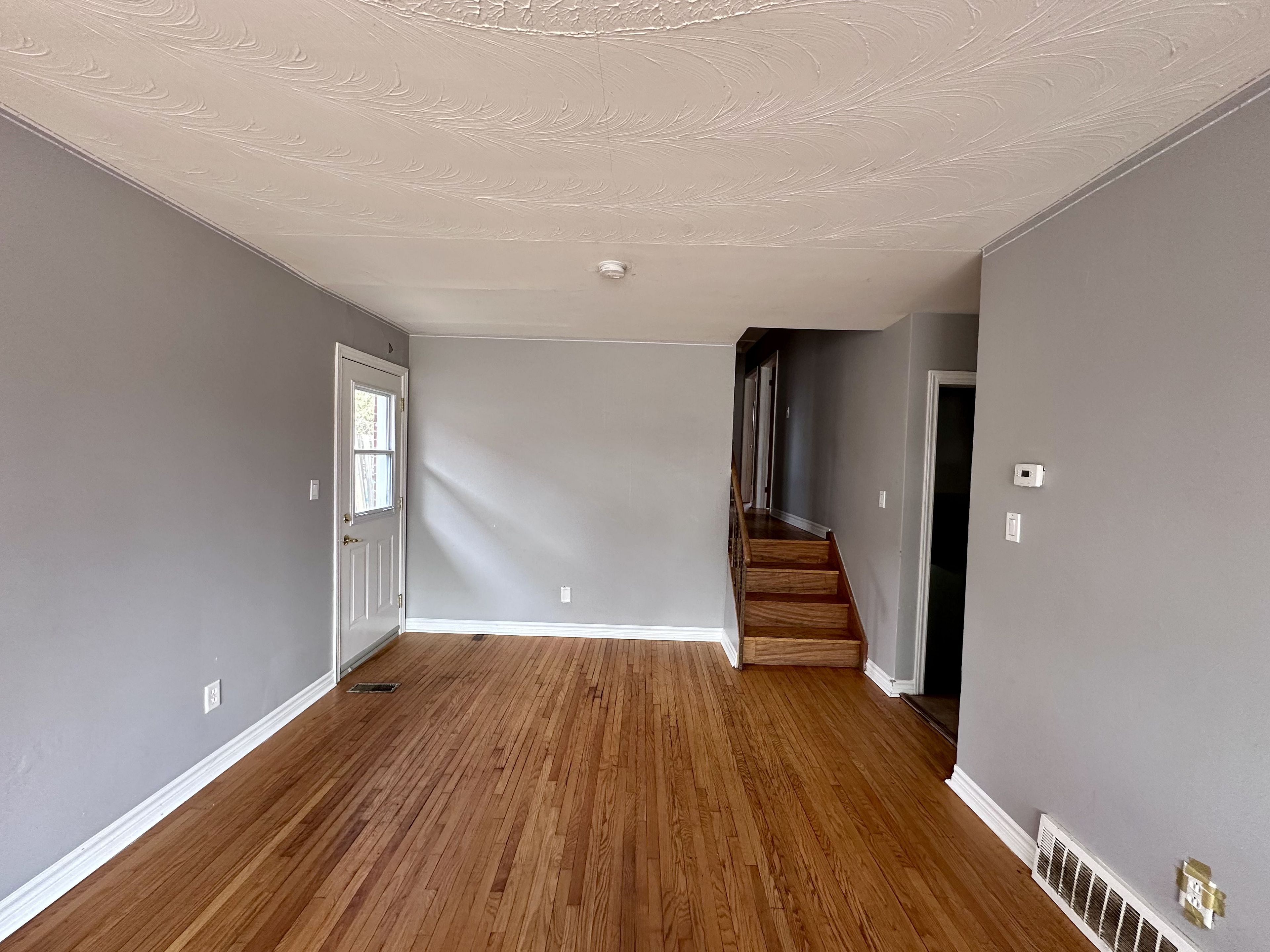 • Spacious living room featuring a bay window and yard access.