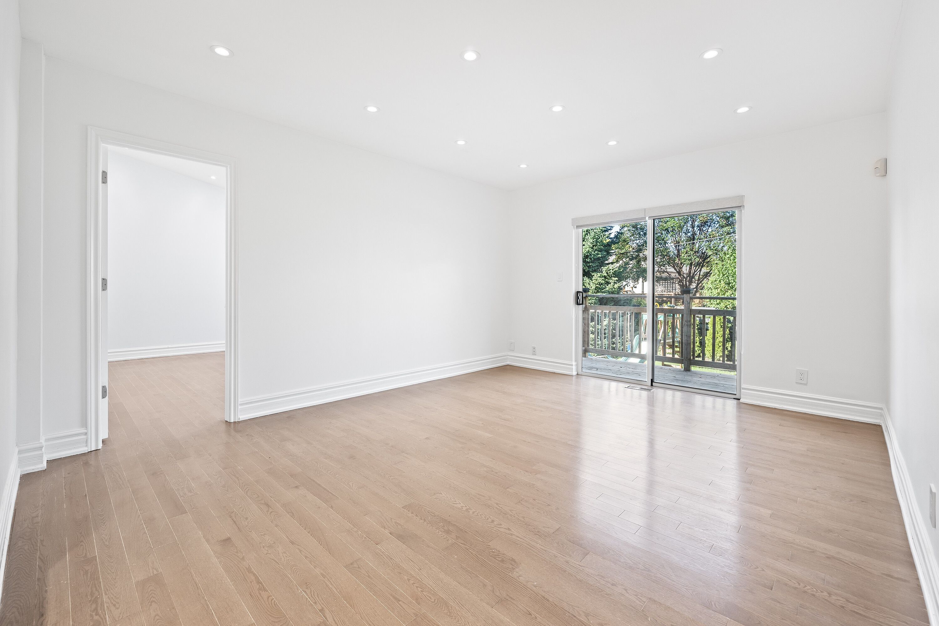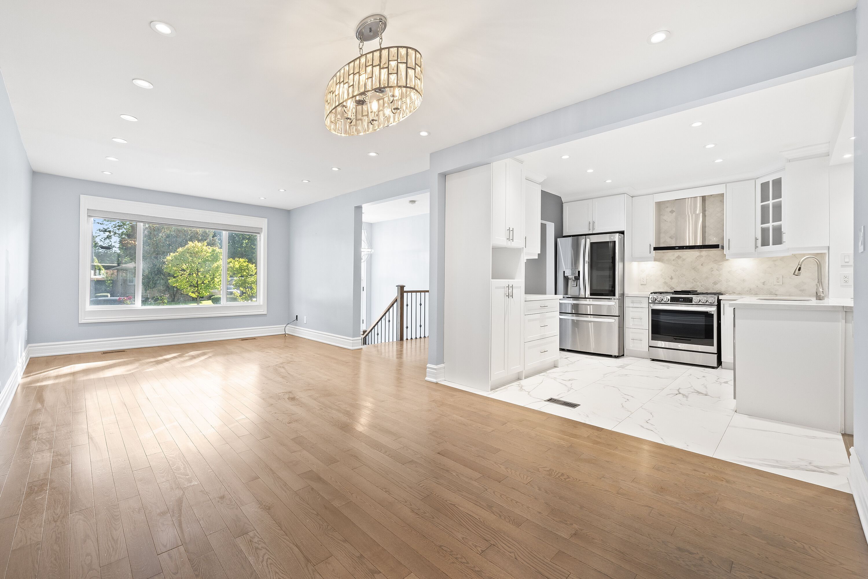 • Open-concept main floor with hardwood floors and backyard access.