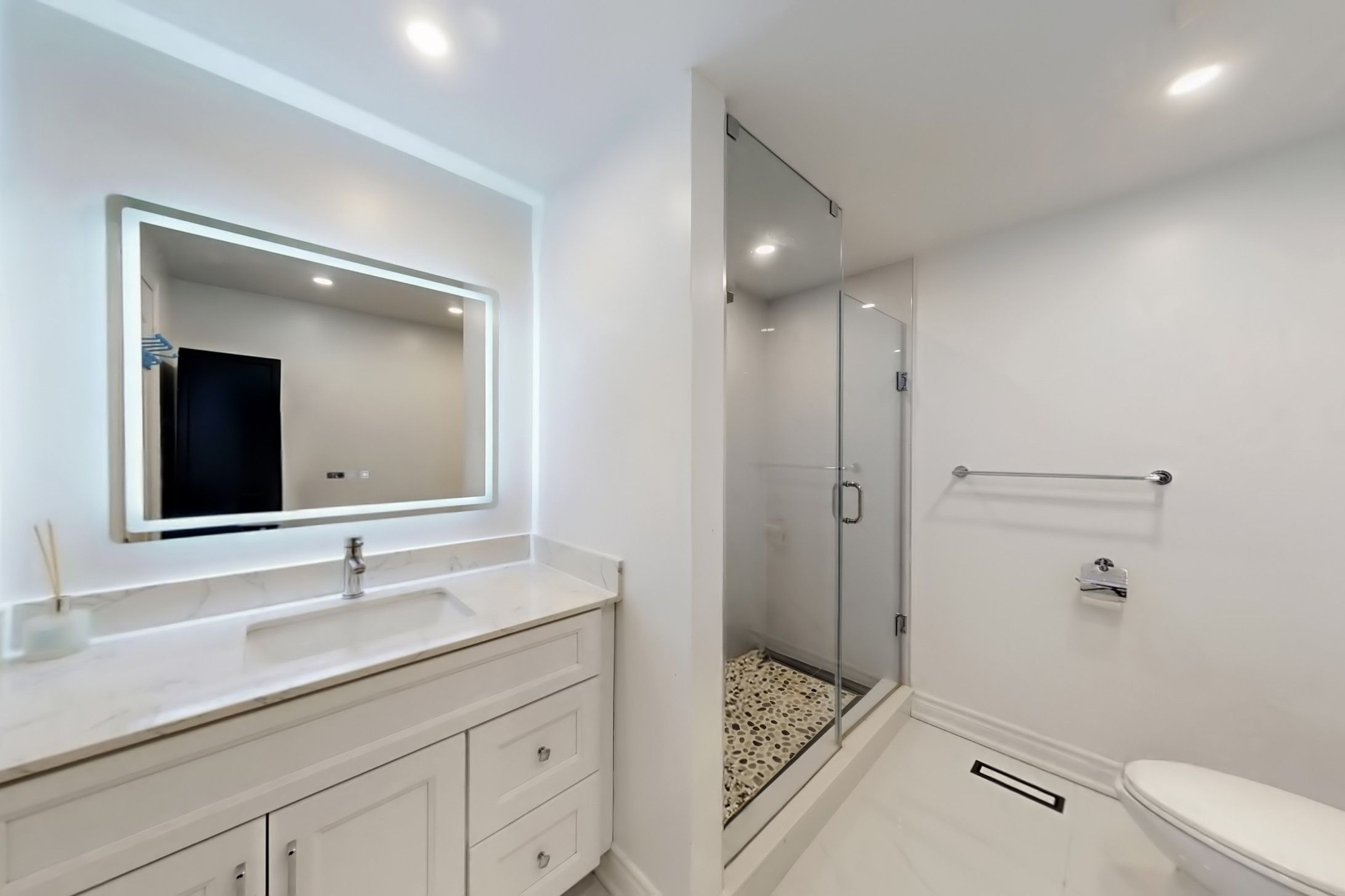• Modern kitchen featuring granite countertops and updated cabinetry.