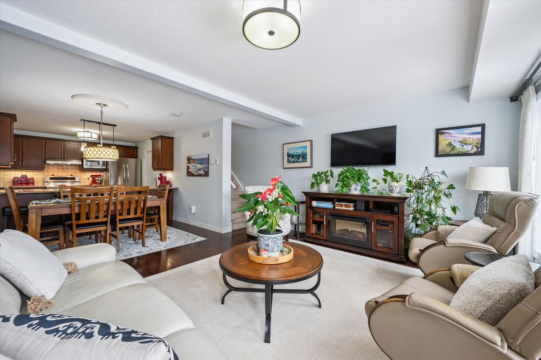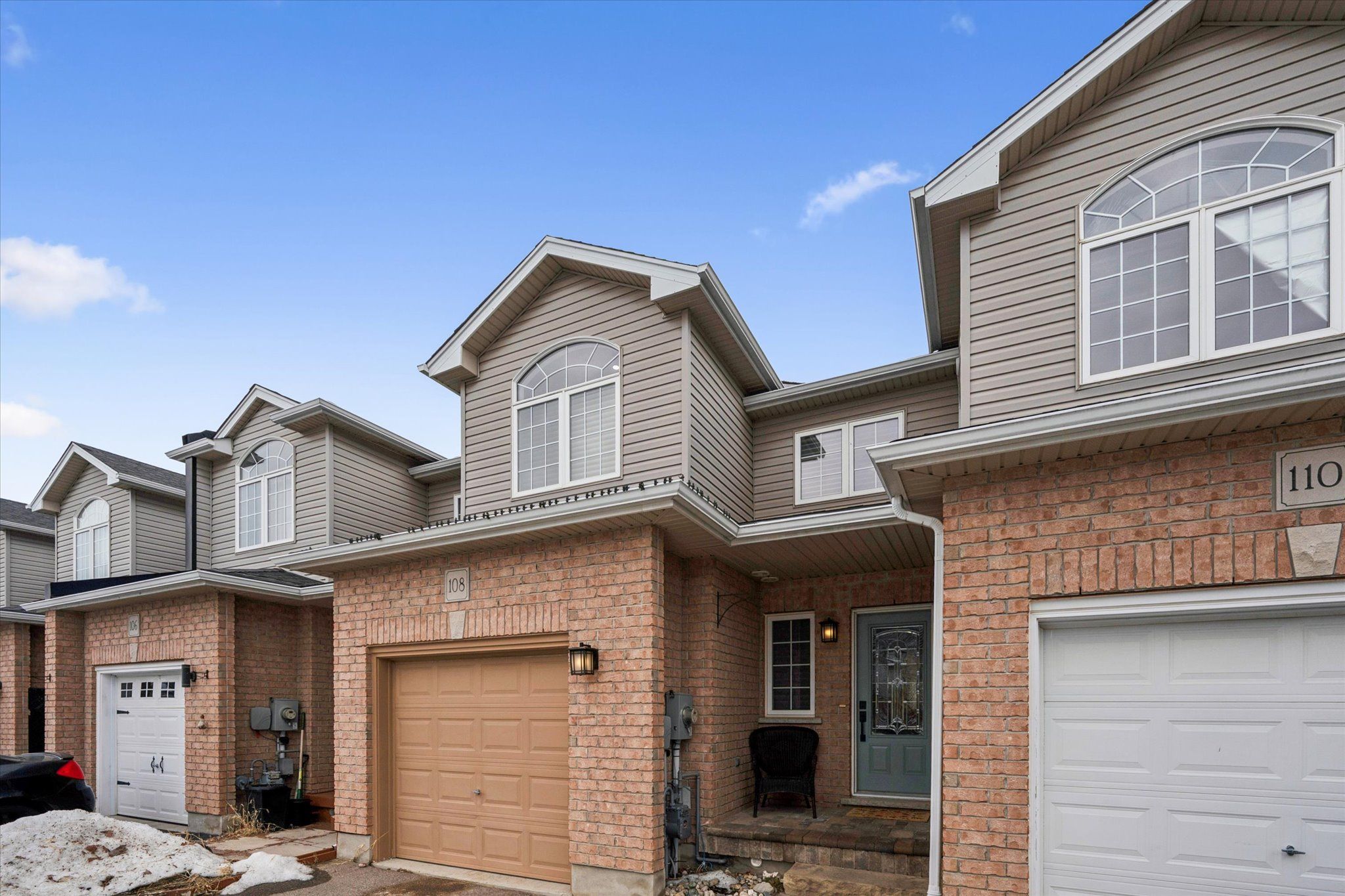 Welcome to 108 mussen st - a stunning, move-in-ready freehold townhouse where modern upgrades meet total backyard privacy. Forget monthly condo fees and enjoy the freedom of this meticulously maintained home. The curb appeal starts with a sleek asphalt driveway, a single-car garage with internal access, and a charming interlock brick walkway leading to an etched glass front door (complete with a phantom screen). Step inside to an open-concept main floor featuring hardwood flooring in the living and dining areas, complemented by a chef-inspired kitchen. Upgraded with granite countertops, stainless steel appliances, and a double sink, the kitchen offers a perfect view through the large, bright windows to the outdoors. Sliding glass doors lead you to a high-end composite deck and a beautifully landscaped yard. Best of all? You back directly onto permanent green space, ensuring no rear neighbors and peaceful views for years to come. The upper level boasts a spacious primary suite overlooking the greenspace, featuring a walk-in closet and a private 3-piece ensuite. Two additional bright bedrooms-one with a striking part cathedral ceiling-provide flexible space for a home office or family. A dedicated laundry room with side-by-side whirlpool appliances and a 4-piece main bath complete this level. The professionally finished basement (2017) adds significant living space, featuring a cozy rec room with a brick accent wall and electric fireplace, a modern 2-piece powder room, and a versatile flex area perfect for a gym or home office. Notable upgrades & features: mechanicals: central vac, water softener, and a vanee hrv system. Finishes: upgraded lighting and faucets throughout. Location: quiet, family-friendly street with easy access to local amenities. This is the perfect blend of style, comfort, and privacy. Book your showing today!