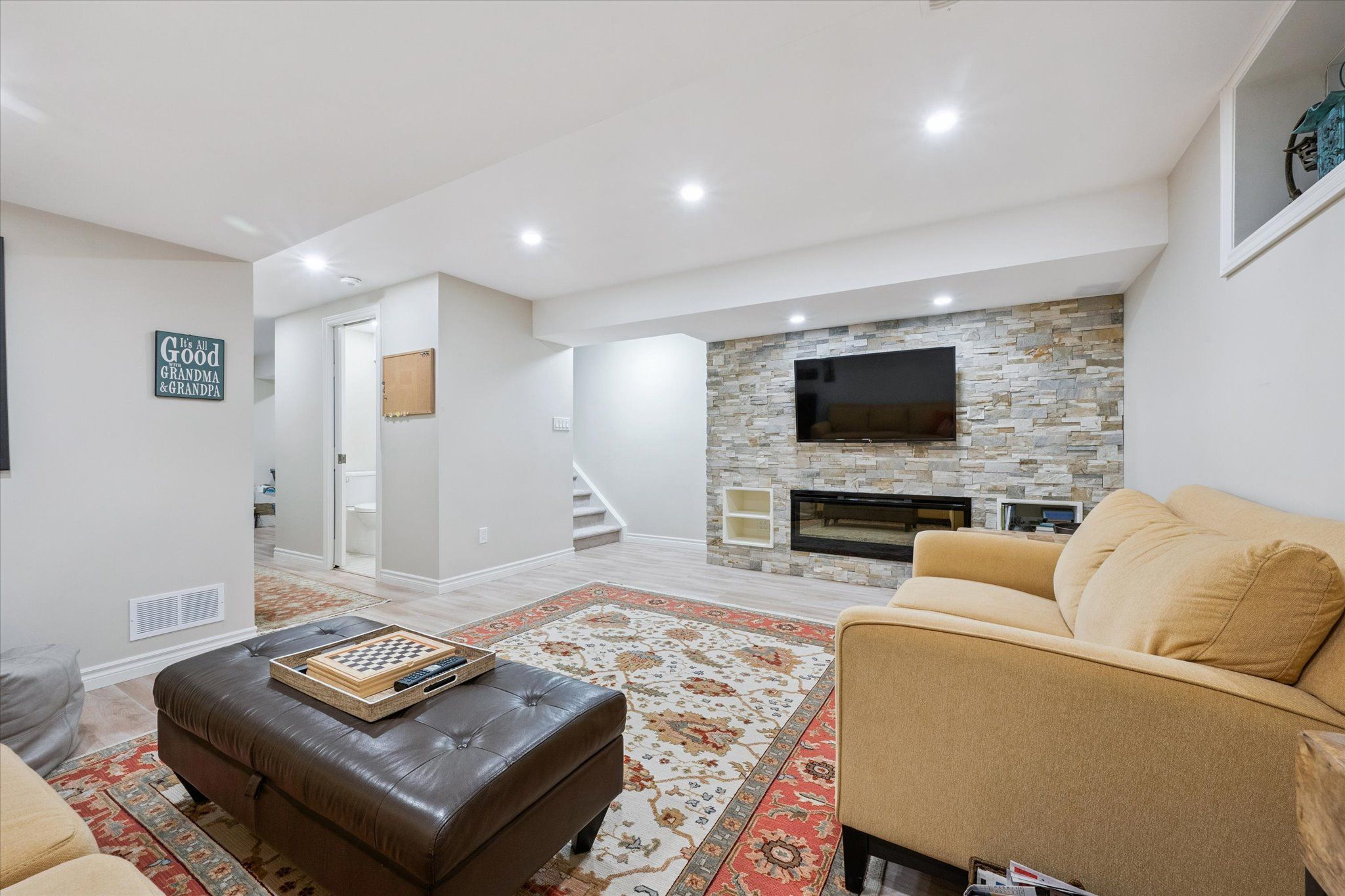 • Professionally finished basement with rec room and flexible space for various uses.