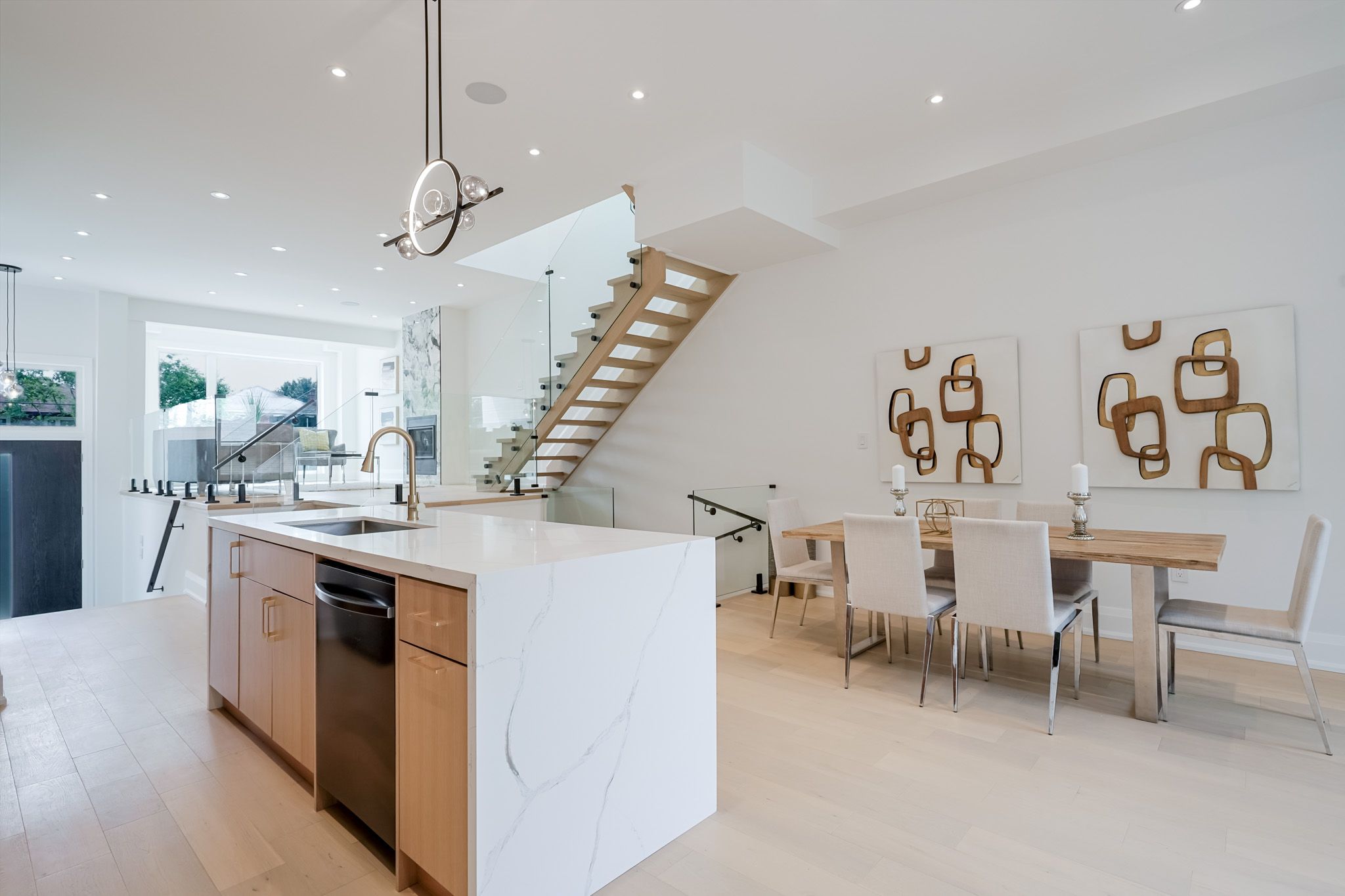 Luxurious home in toronto high demand area. This gorgeous home has been built with immaculate detail in design, function & quality! Open concept living & dining with gorgeous engineered hardwood flooring, large windows & led lighting! Chef's kitchen with quartz counters & backsplash, waterfall centre island & s/s appliances including gas range & built-in microwave oven! Stunning, sun filled family room with custom media wall, overlooking large deck & fully fenced backyard! 2nd floor features primary bedroom features large closet & spa like ensuite with glass shower & large quartz vanity! 2nd bedroom offers its own 3 piece en-suite. 3rd & 4th bedroom feature large windows & closets, with 3pc common washroom. Walk-out basement with high ceilings, recreational room, one bedroom plus one washroom & an office space. Wet bar with b/i cabinets, sink & quartz counter. Fully tiled furnace room. Single car garage with a long interlocked driveway for parking. Close to park and schools. * fenced & gated backyard, l* easy access to downtown, bike to the bluffs* 8 mins walk to the go* close to top ranking schools, shops & parks.
