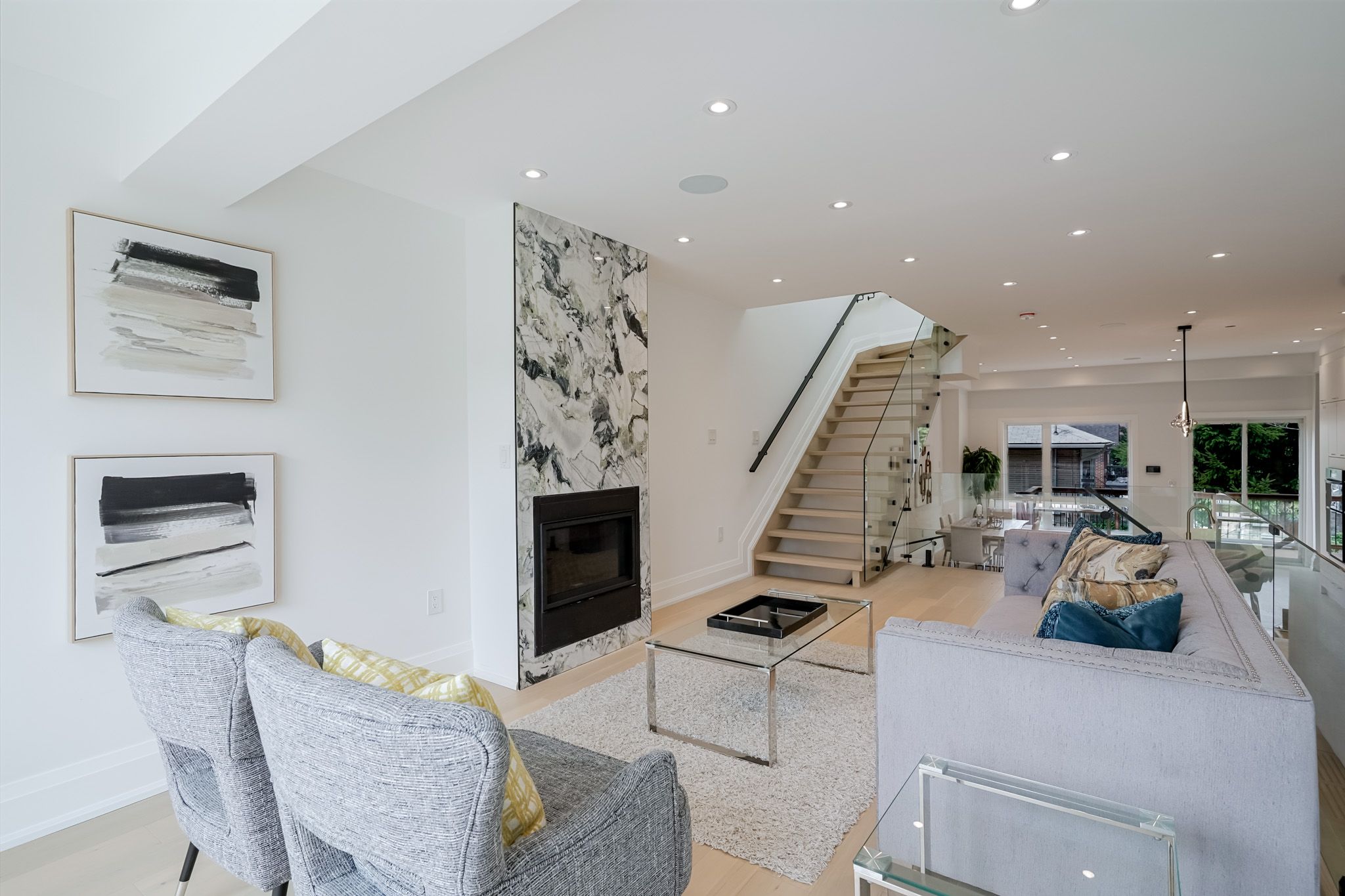 Luxurious home in toronto high demand area. This gorgeous home has been built with immaculate detail in design, function & quality! Open concept living & dining with gorgeous engineered hardwood flooring, large windows & led lighting! Chef's kitchen with quartz counters & backsplash, waterfall centre island & s/s appliances including gas range & built-in microwave oven! Stunning, sun filled family room with custom media wall, overlooking large deck & fully fenced backyard! 2nd floor features primary bedroom features large closet & spa like ensuite with glass shower & large quartz vanity! 2nd bedroom offers its own 3 piece en-suite. 3rd & 4th bedroom feature large windows & closets, with 3pc common washroom. Walk-out basement with high ceilings, recreational room, one bedroom plus one washroom & an office space. Wet bar with b/i cabinets, sink & quartz counter. Fully tiled furnace room. Single car garage with a long interlocked driveway for parking. Close to park and schools. * fenced & gated backyard, l* easy access to downtown, bike to the bluffs* 8 mins walk to the go* close to top ranking schools, shops & parks.
