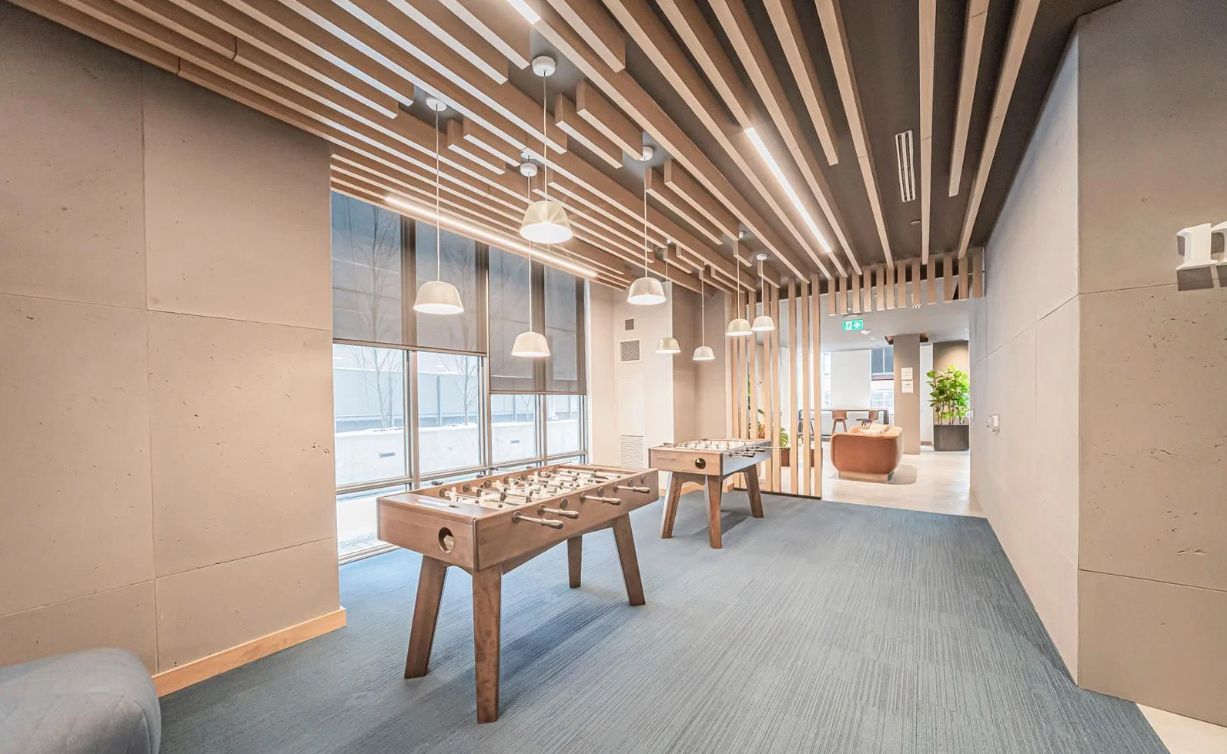 • Access to premium amenities like a rooftop pool and fitness studio.