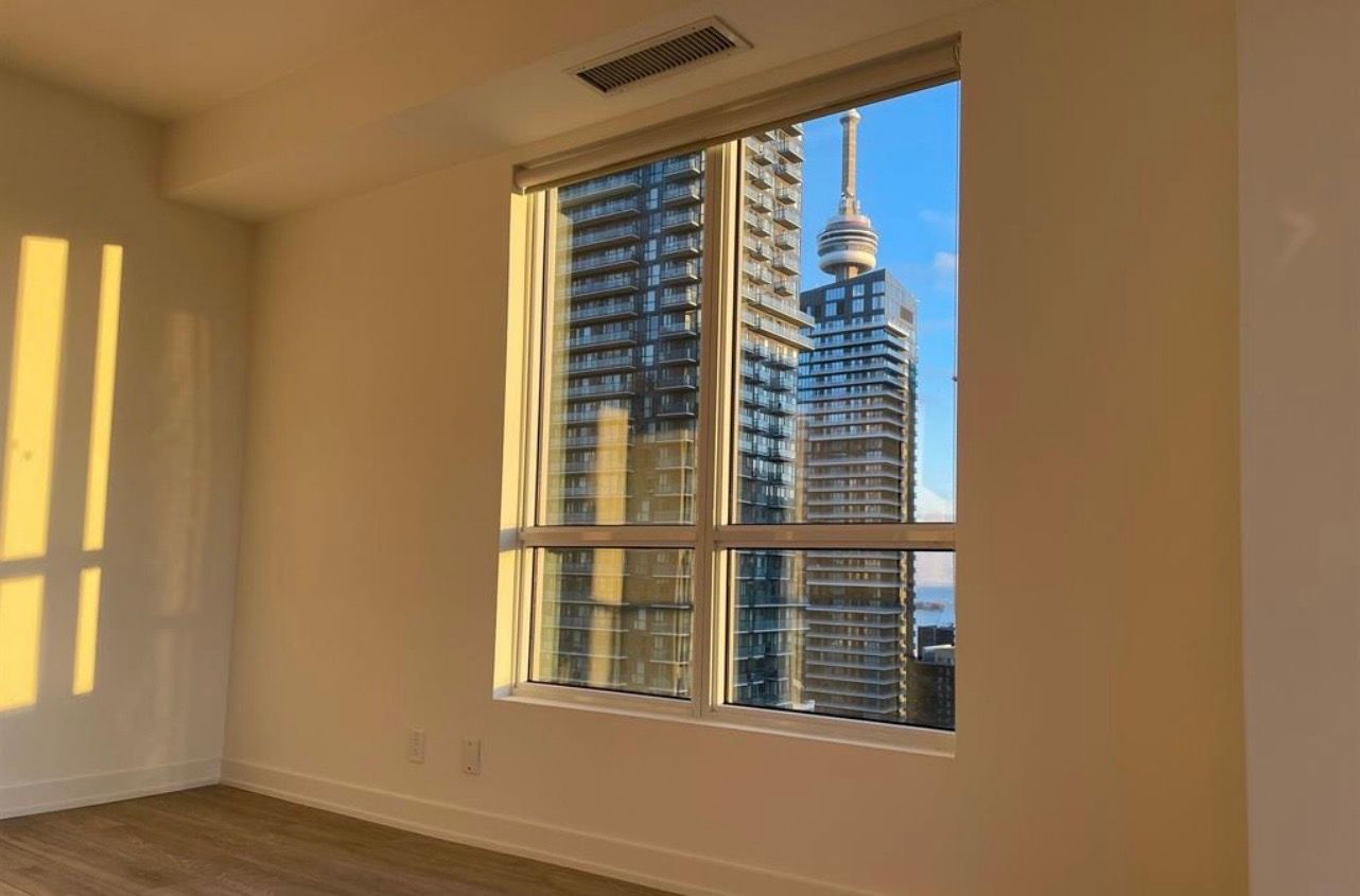 *beautiful corner suite* - 2 bed + 2 bath in a prestigious luxury residence. Perched on a high floor with breathtaking southwest views stretching across the city skyline and lake ontario. This sun-filled unit offers a thoughtfully designed layout with floor-to-ceiling windows and an elegant open-concept living space. The modern kitchen features built-in appliances, sleek cabinetry, quartz countertops, and a stunning waterfall backsplash - perfect for both everyday living and entertaining. Ideal for young professionals or small families seeking style, comfort, and convenience. Situated in the heart of toronto's vibrant entertainment district with a perfect walk score of 100 and seamless transit access. Just steps to world-class dining, cafés, nightlife, theatres, and iconic landmarks including the cn tower, rogers centre, and scotiabank arena. Ttc and subway access are right at your doorstep. Residents enjoy an exceptional selection of luxury amenities, including a fully equipped fitness centre, yoga studio, sauna, party room, recreational lounge, outdoor fitness space, kids' zone, arts & crafts studio, and a spectacular rooftop pool - all designed to elevate your lifestyle. **chinese supermarket conveniently located right downstairs - everyday essentials just steps from your door**
