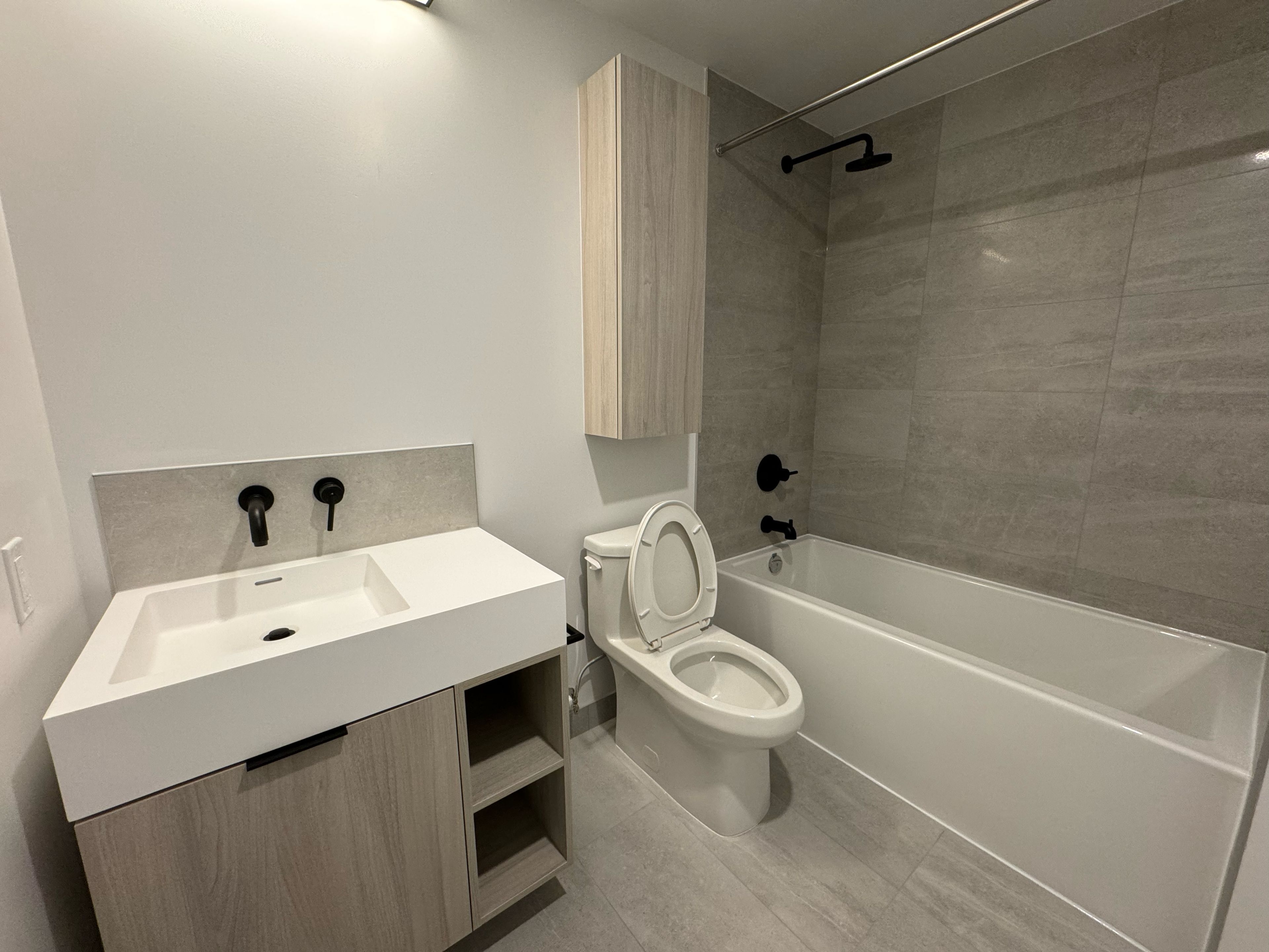This luxury 1 bedroom + den condo with unobstructed views suite at peter and adelaide. Den can be 2nd bedroom. Modern kitchen features integrated appliances and elegant quartz details. This unit includes 1 locker. Amenities include co-working and rec room, outdoor lounge, fitness and yoga studio, infra-red sauna and treatment room, demo kitchen, private dining room, party lounge, terrace, outdoor communal dining, and kids zone & arts and crafts. Location is a walkers paradise (walk score of 100) walk to attractions like cn tower, rogers centre, ttc subway, shopping, clubs and restaurants.