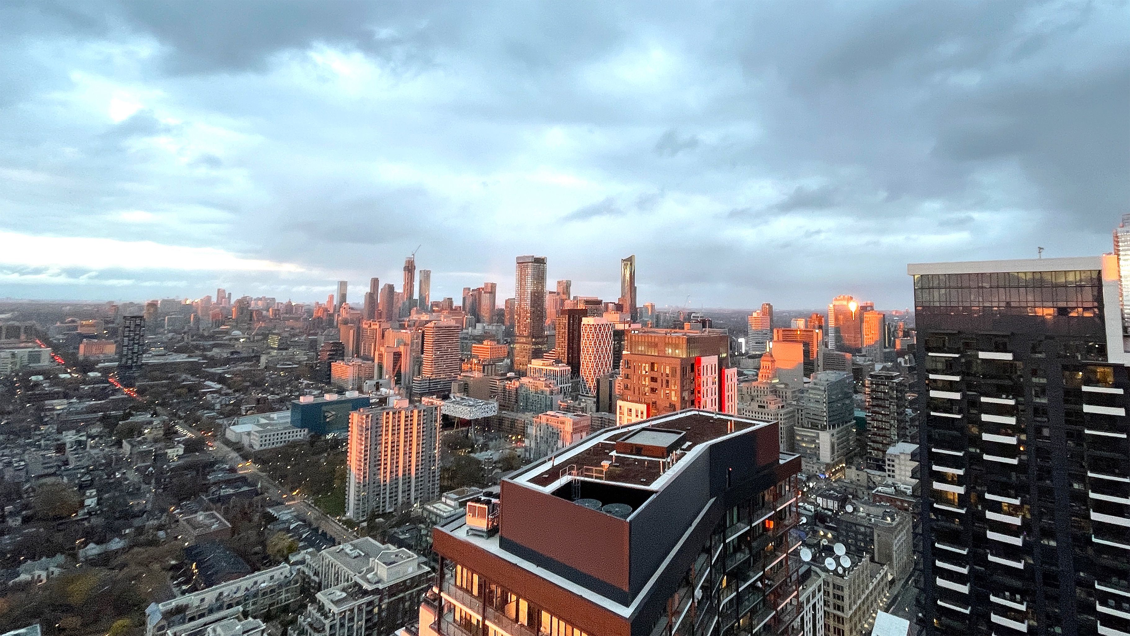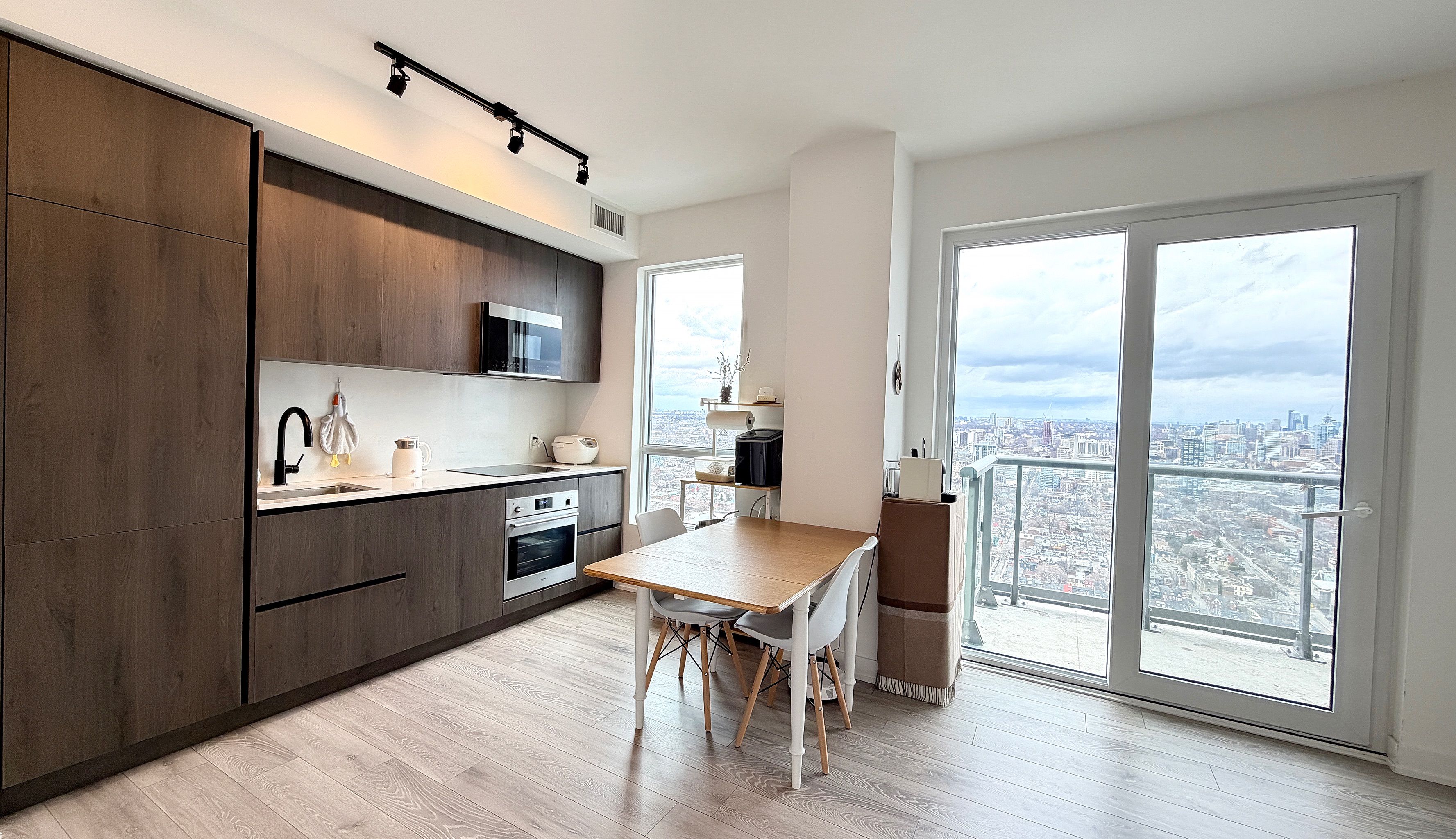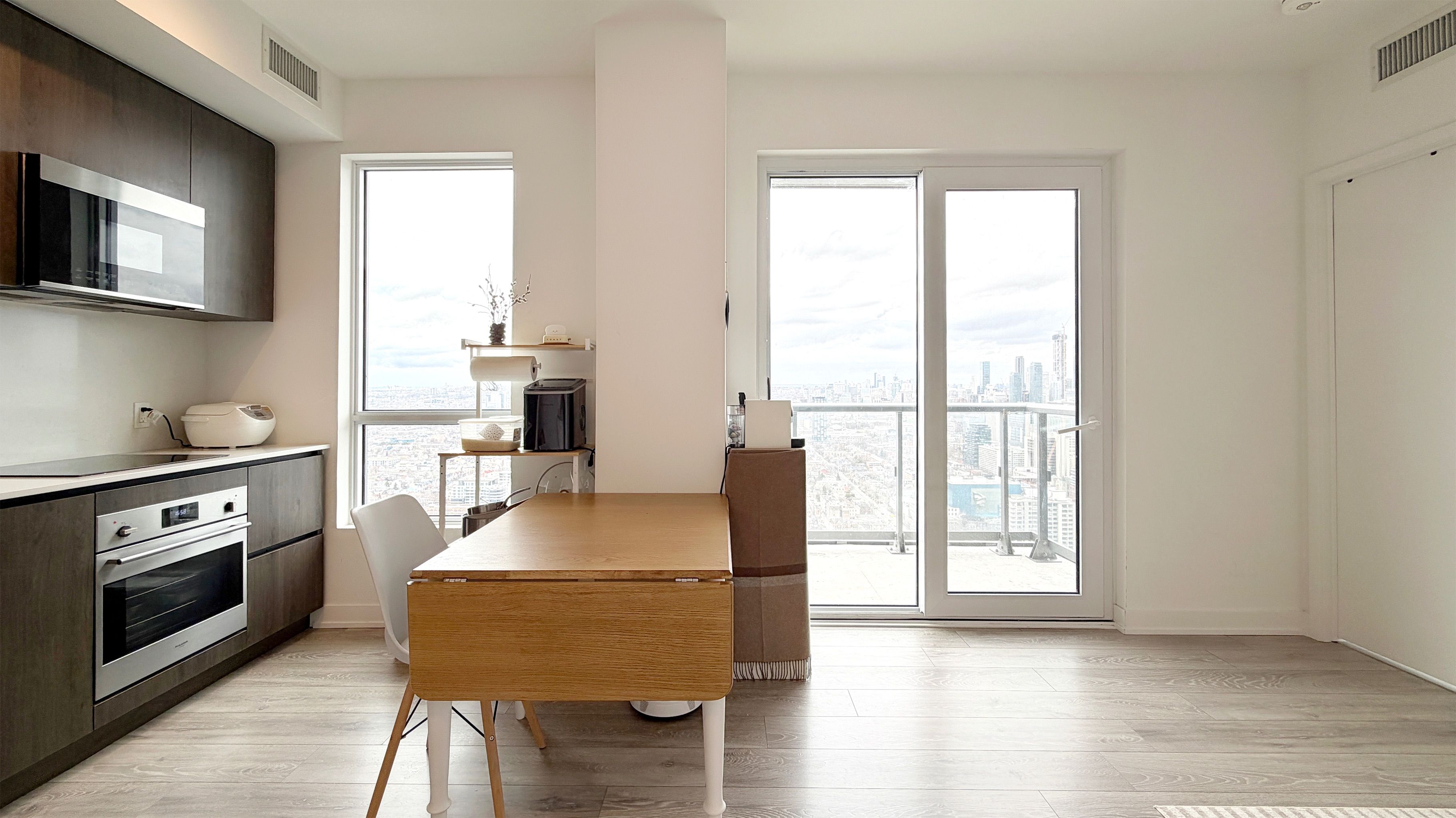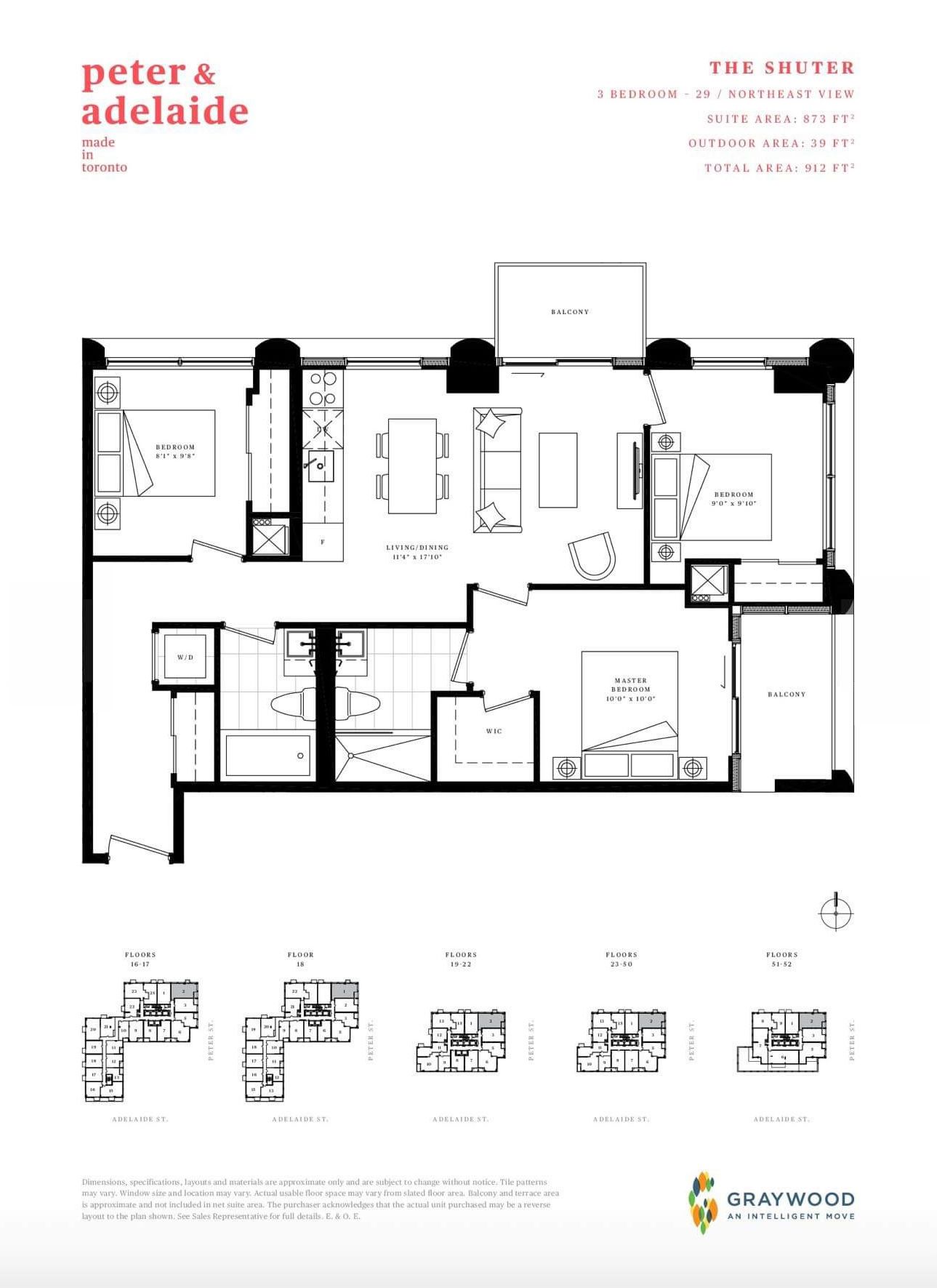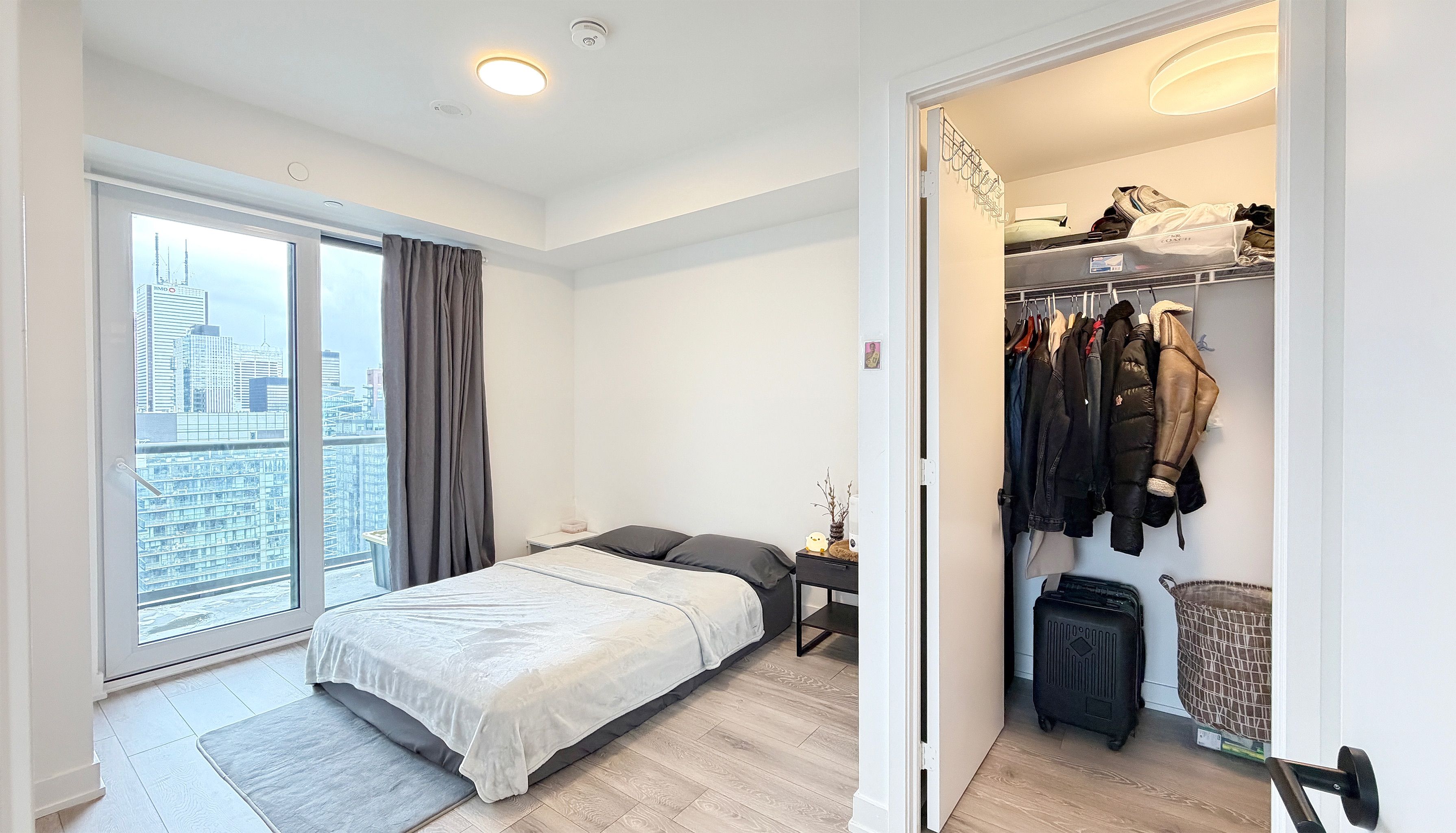 Rarely offered high-floor 3-bedroom corner suite with unobstructed panoramic city views at peter & adelaide. This bright and functional 912 sq ft layout (873 sq ft interior + 39 sq ft balcony) features a modern open-concept kitchen and walk-out to a private balcony-perfect for everyday living and entertaining. Spacious primary bedroom with 3-piece ensuite and walk-in closet. Includes 1 parking and 2 lockers. Unbeatable downtown location with a perfect 100 walk & transit score-steps to ttc, dining, entertainment, and iconic landmarks such as the cn tower and rogers centre. Minutes to the financial district and path. Enjoy resort-style amenities including co-working space, fitness centre, yoga studio, rooftop pool, sauna, party lounge, and more.