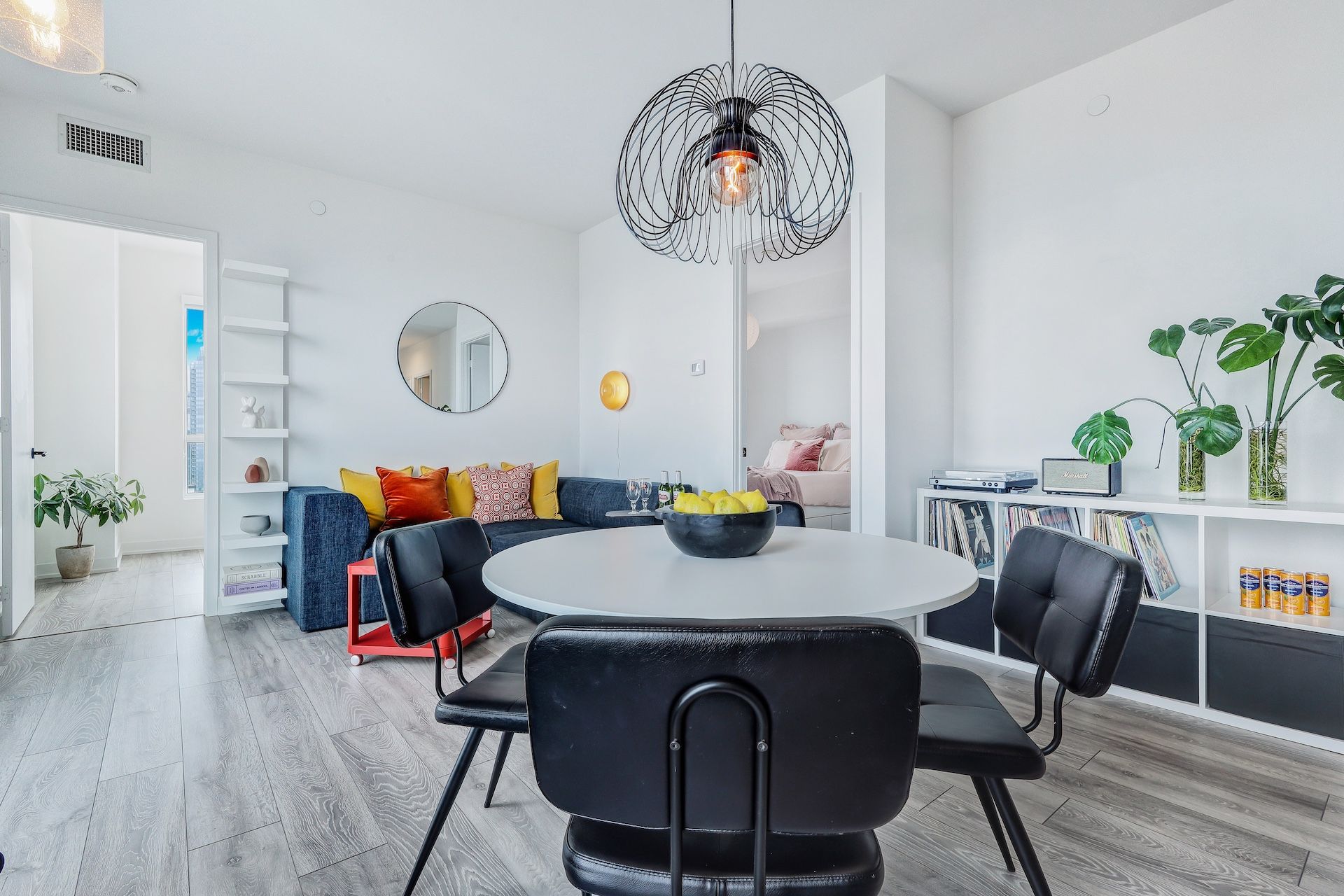 • Building amenities include outdoor pool, rooftop terrace, and co-working space.