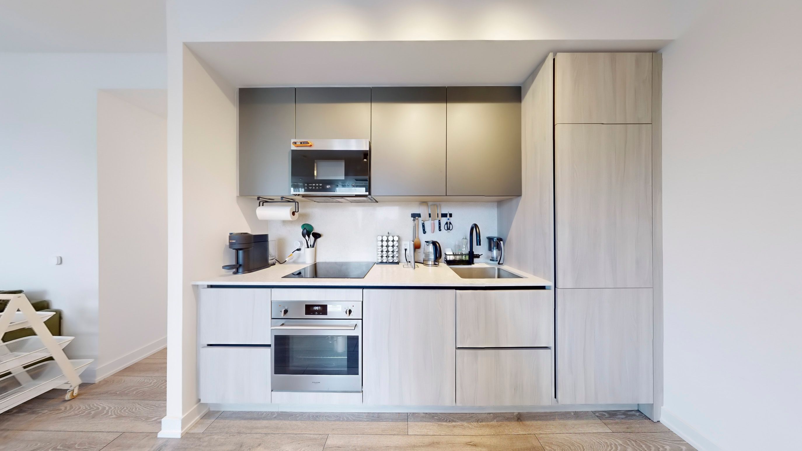• Spacious 890 sq ft layout with stylish laminate flooring and quartz finishes.