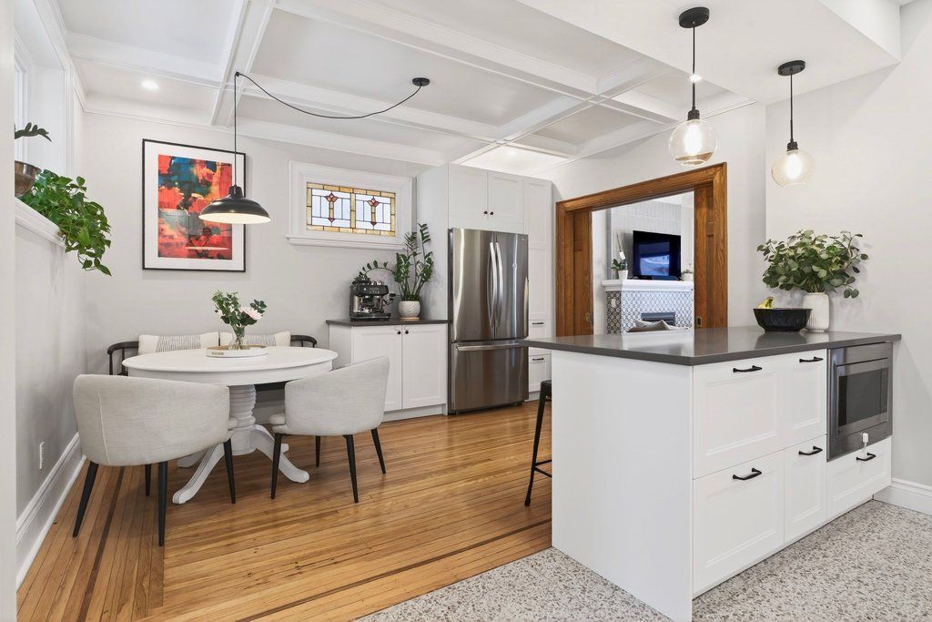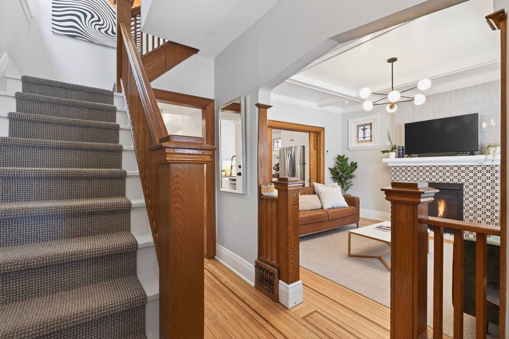 Craving charm? Zero reno chaos? A fantastic family-friendly neighbourhood? Same. Good news - this home kept the character and ditched the work. All that's left to do is move in and enjoy. Extensively updated, this beautifully renovated 2-storey brick home blends timeless details with modern function for everyday living. A landscaped front yard and classic porch set the tone, while stained-glass windows, inlay hardwood floors, original trim, banister, baseboards, and coffered ceilings bring warmth and vintage elegance. Cozy winter nights by the fireplace in the living room, and a stylish kitchen designed for real life - stainless steel appliances, sleek countertops, porcelain tile floors, and a peninsula perfect for gathering and entertaining. The main floor also offers laundry, a convenient powder room, and access to the fully fenced backyard. Entertain with ease while guests unwind in the hot tub, kids play freely, and you enjoy the detached garage, set up as a home gym (heat & hydro ready). Upstairs features 3 spacious bedrooms with generous closets and a beautifully renovated bathroom. The finished basement with separate entrance adds exceptional flexibility with a den or guest room, large rec room with kitchenette, and full bathroom - ideal for extendedfamily or multi-use living. Steps to gage park, ottawa street shops, cafés, transit, andmore. Character, comfort, and convenience - all in one exceptional west delta home. Rsa.