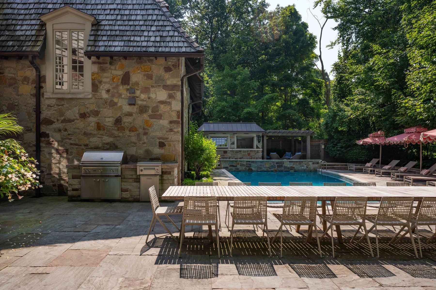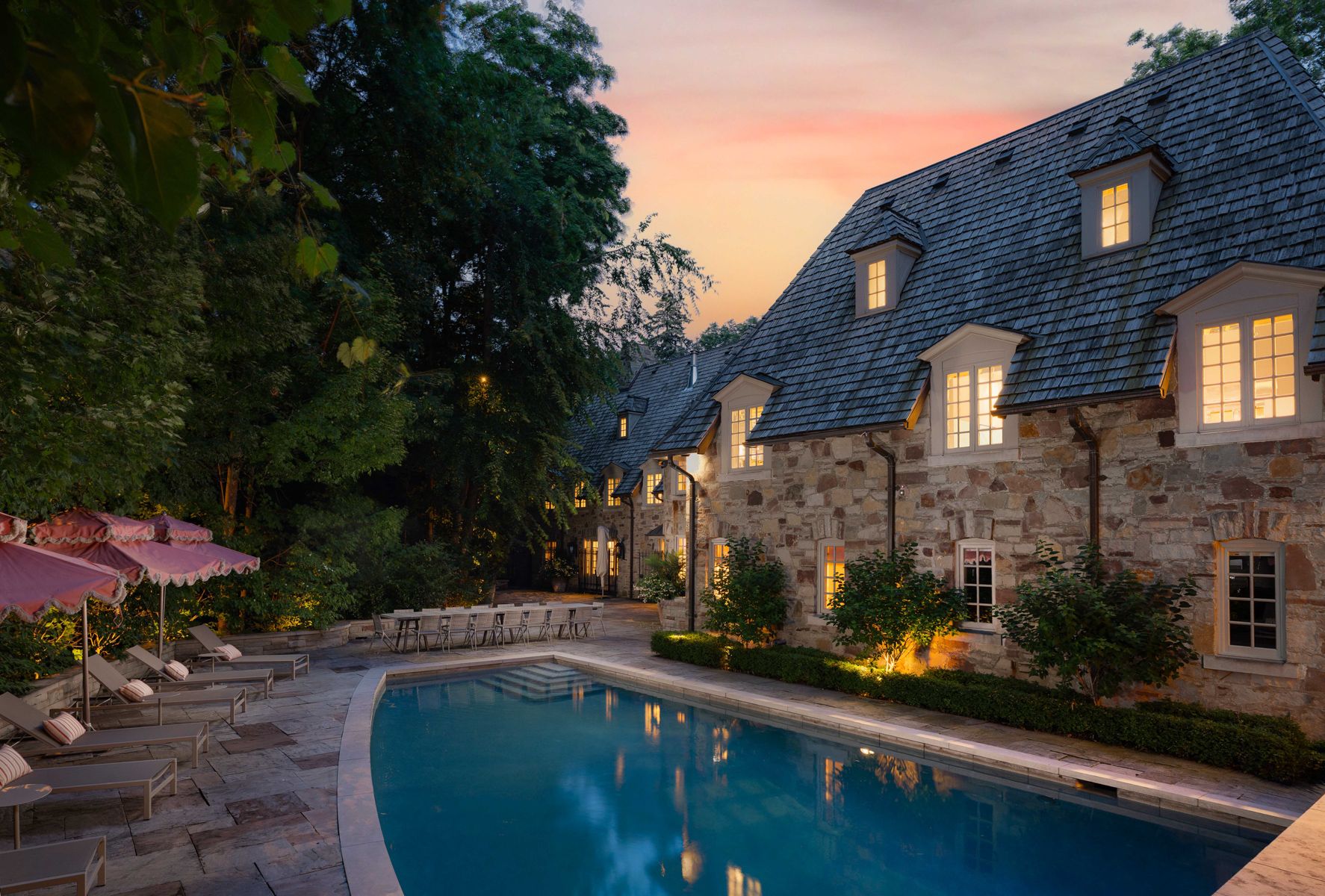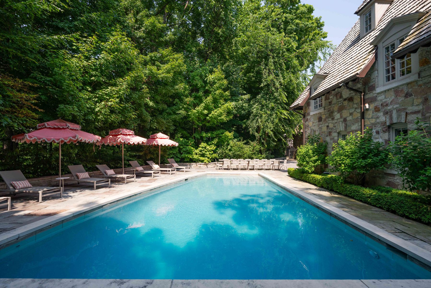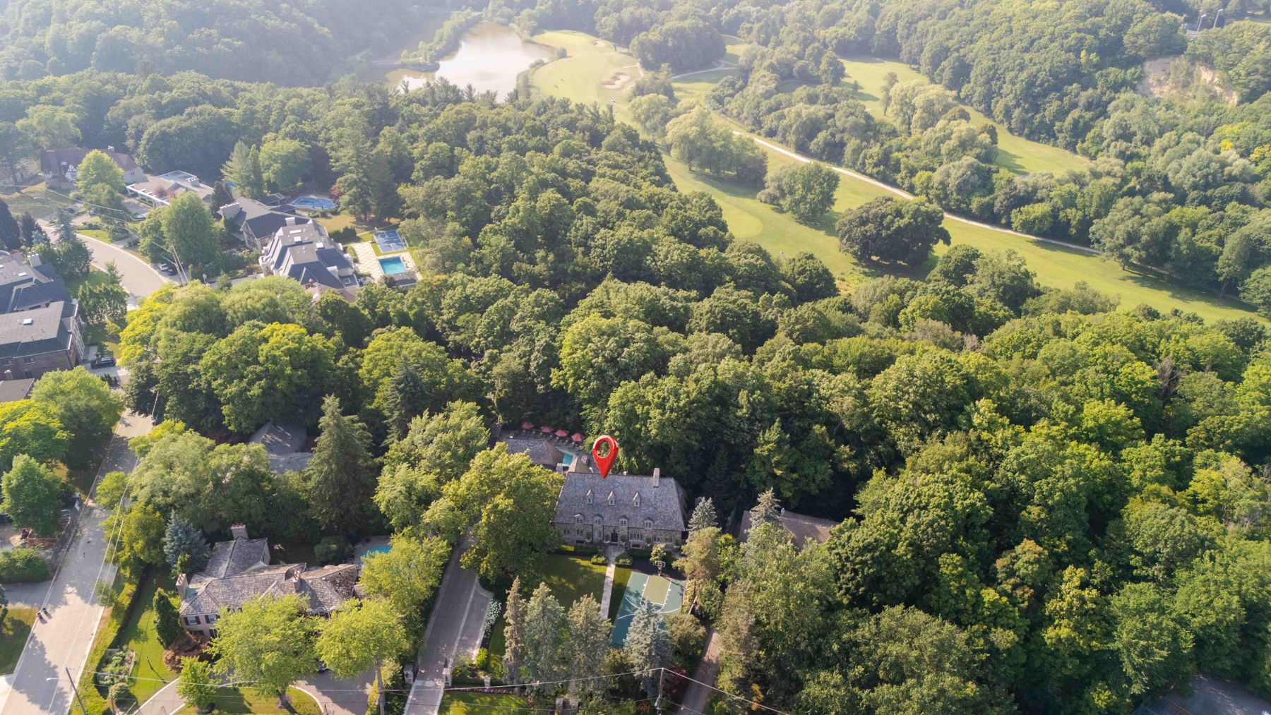 "rosewood estate" one of city's most coveted landmark estates, sets the gold standard for luxury real estate in toronto. Magnificently poised on a 1. 18 acre private, ravine lot on a quiet cul-de-sac. Redesigned by lorne rose & built by jtf custom homes in 2019 this 11,000+ sq ft home is defined by its sophisticated style & magnificent surroundings. Superb craftsmanship, impeccable finishes & meticulous attention to the finest of materials create an exceptional living space perfect for grand entertaining yet eminently comfortable for daily living. The time-honoured principles of symmetry, proportion & balance create an ambiance of refined serenity. Crafted with a vision & passion using the highest quality of materials integrating custom elaborate crown mouldings & wood wainscoting throughout, imported wallpaper from europe & hardware from around the world, including architectural hardware by world renowned p. E. Guerin. Custom built-in cabinetry & vanities by falcon kitchens combine a large chef's kitchen and breakfast area with 2 centre islands & marble slab counters. Three gas fireplaces feature hand carved marble mantlepieces. Custom drapes, automated blinds, hand-crafted walnut panelling and millwork for the office. Soaring cathedral ceilings & dormer windows in the 4 bedrooms on the 2nd level allow natural light to freely cascade throughout. The primary suite features a lavish 6-piece ensuite & his & hers spacious dressing rooms. Family & friends will enjoy the lower level recreation room, games room, gym & state-of-the-art home theatre. A stone & wrought iron fence with stone retaining walls encircle the property to ensure & secure privacy. Lovely grounds, exquisite, lush gardens enchant & delight graced by canopy of mature trees. Sparkling saltwater pool, fountain, official sports court, winterized cabana complete with 3-piece bath and kitchenette, eat-in area shaded by a pergola fashion a private & magical oasis. This remarkable home is a truly rare treasure.