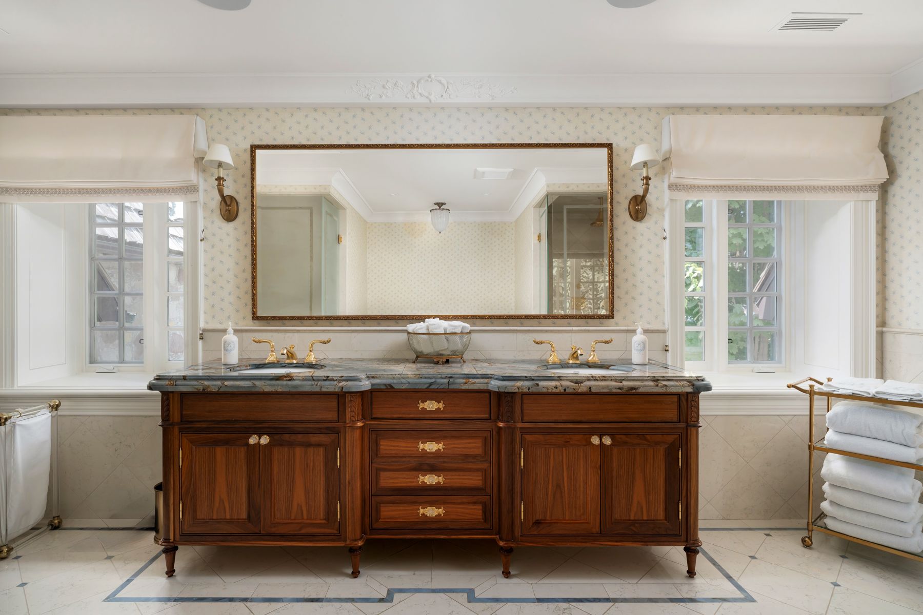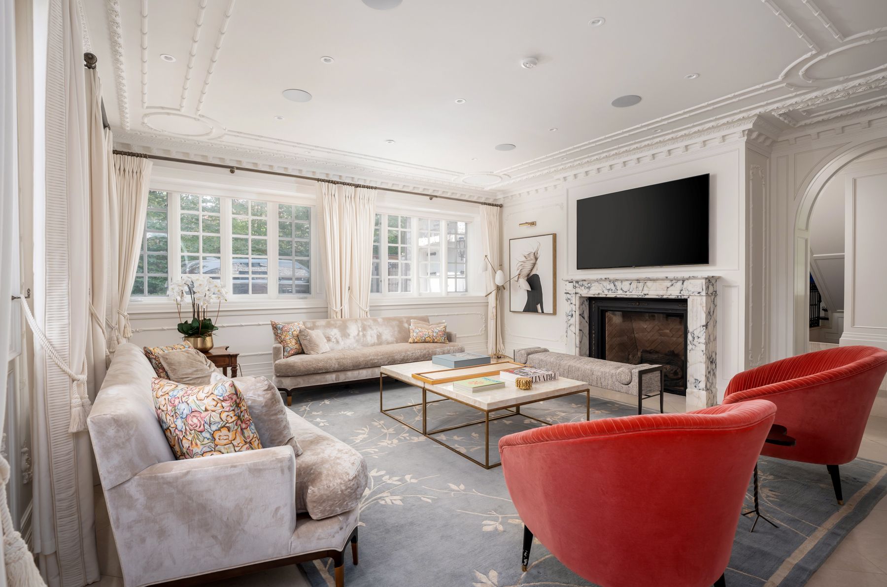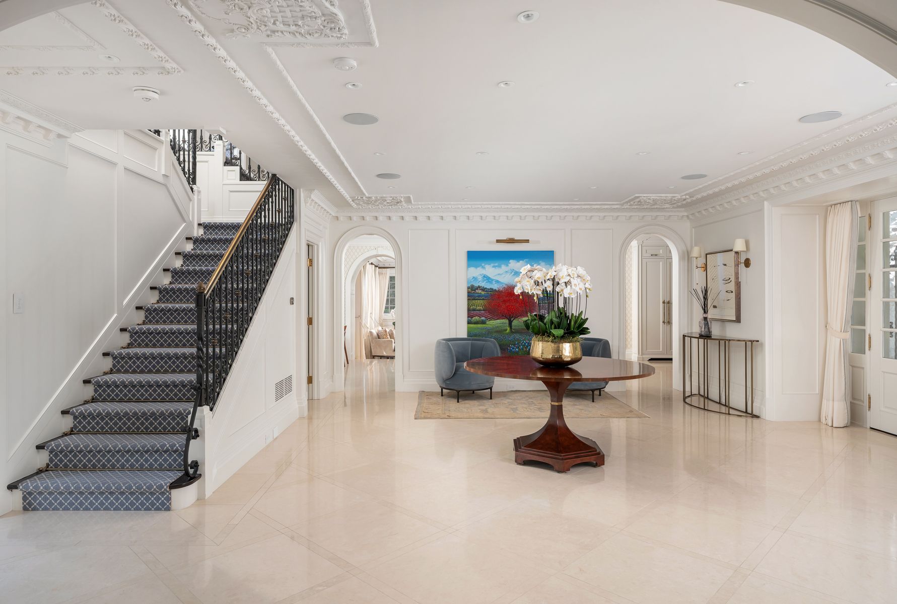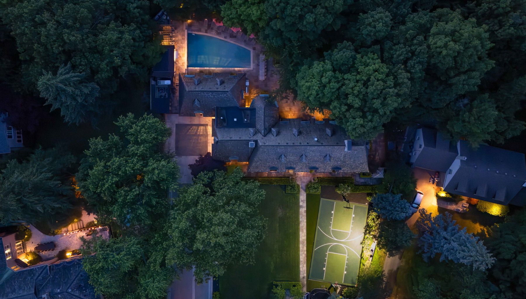 "rosewood estate" one of city's most coveted landmark estates, sets the gold standard for luxury real estate in toronto. Magnificently poised on a 1. 18 acre private, ravine lot on a quiet cul-de-sac. Redesigned by lorne rose & built by jtf custom homes in 2019 this 11,000+ sq ft home is defined by its sophisticated style & magnificent surroundings. Superb craftsmanship, impeccable finishes & meticulous attention to the finest of materials create an exceptional living space perfect for grand entertaining yet eminently comfortable for daily living. The time-honoured principles of symmetry, proportion & balance create an ambiance of refined serenity. Crafted with a vision & passion using the highest quality of materials integrating custom elaborate crown mouldings & wood wainscoting throughout, imported wallpaper from europe & hardware from around the world, including architectural hardware by world renowned p. E. Guerin. Custom built-in cabinetry & vanities by falcon kitchens combine a large chef's kitchen and breakfast area with 2 centre islands & marble slab counters. Three gas fireplaces feature hand carved marble mantlepieces. Custom drapes, automated blinds, hand-crafted walnut panelling and millwork for the office. Soaring cathedral ceilings & dormer windows in the 4 bedrooms on the 2nd level allow natural light to freely cascade throughout. The primary suite features a lavish 6-piece ensuite & his & hers spacious dressing rooms. Family & friends will enjoy the lower level recreation room, games room, gym & state-of-the-art home theatre. A stone & wrought iron fence with stone retaining walls encircle the property to ensure & secure privacy. Lovely grounds, exquisite, lush gardens enchant & delight graced by canopy of mature trees. Sparkling saltwater pool, fountain, official sports court, winterized cabana complete with 3-piece bath and kitchenette, eat-in area shaded by a pergola fashion a private & magical oasis. This remarkable home is a truly rare treasure.