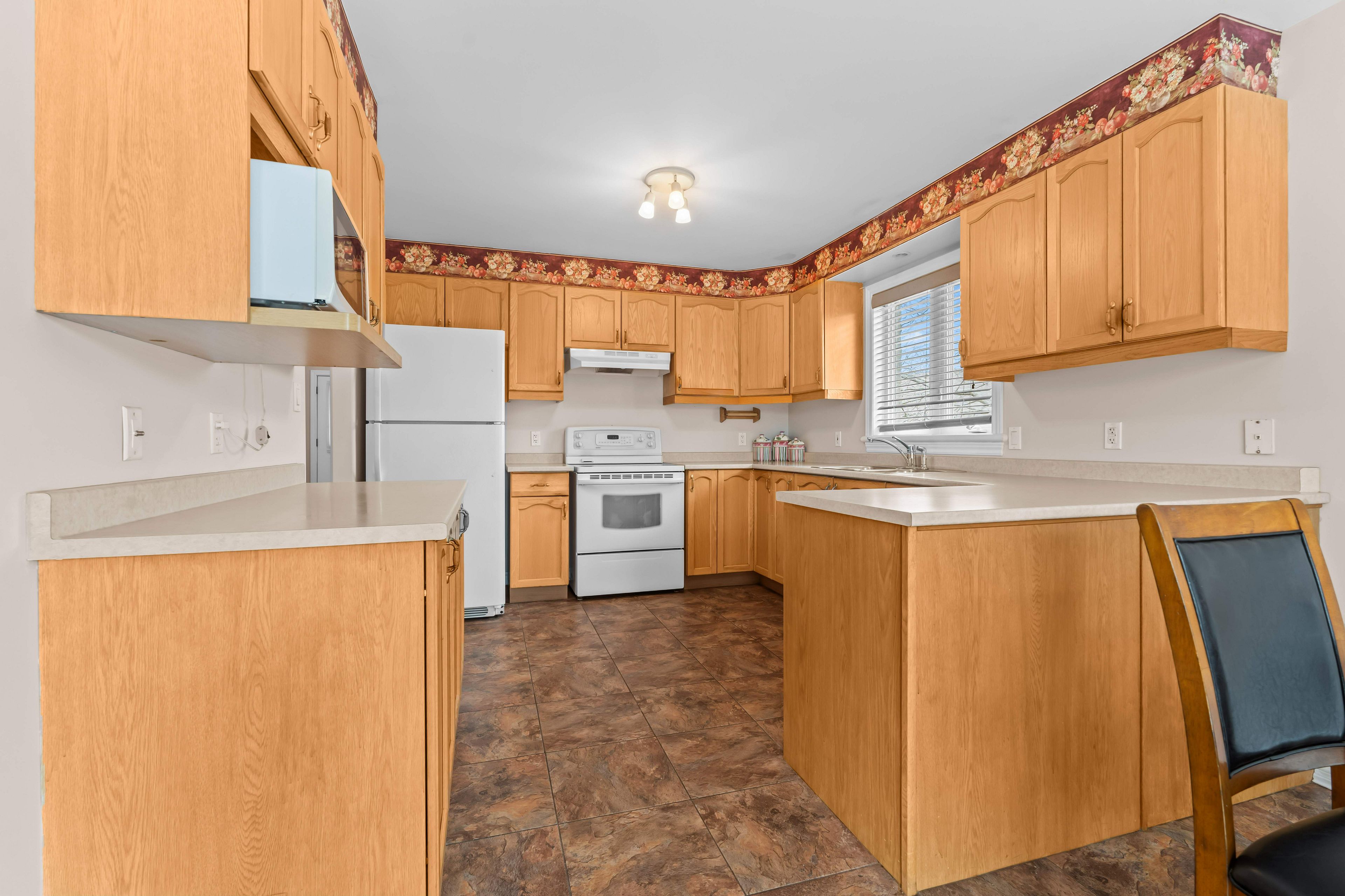 • Main level features hardwood flooring and a spacious kitchen.