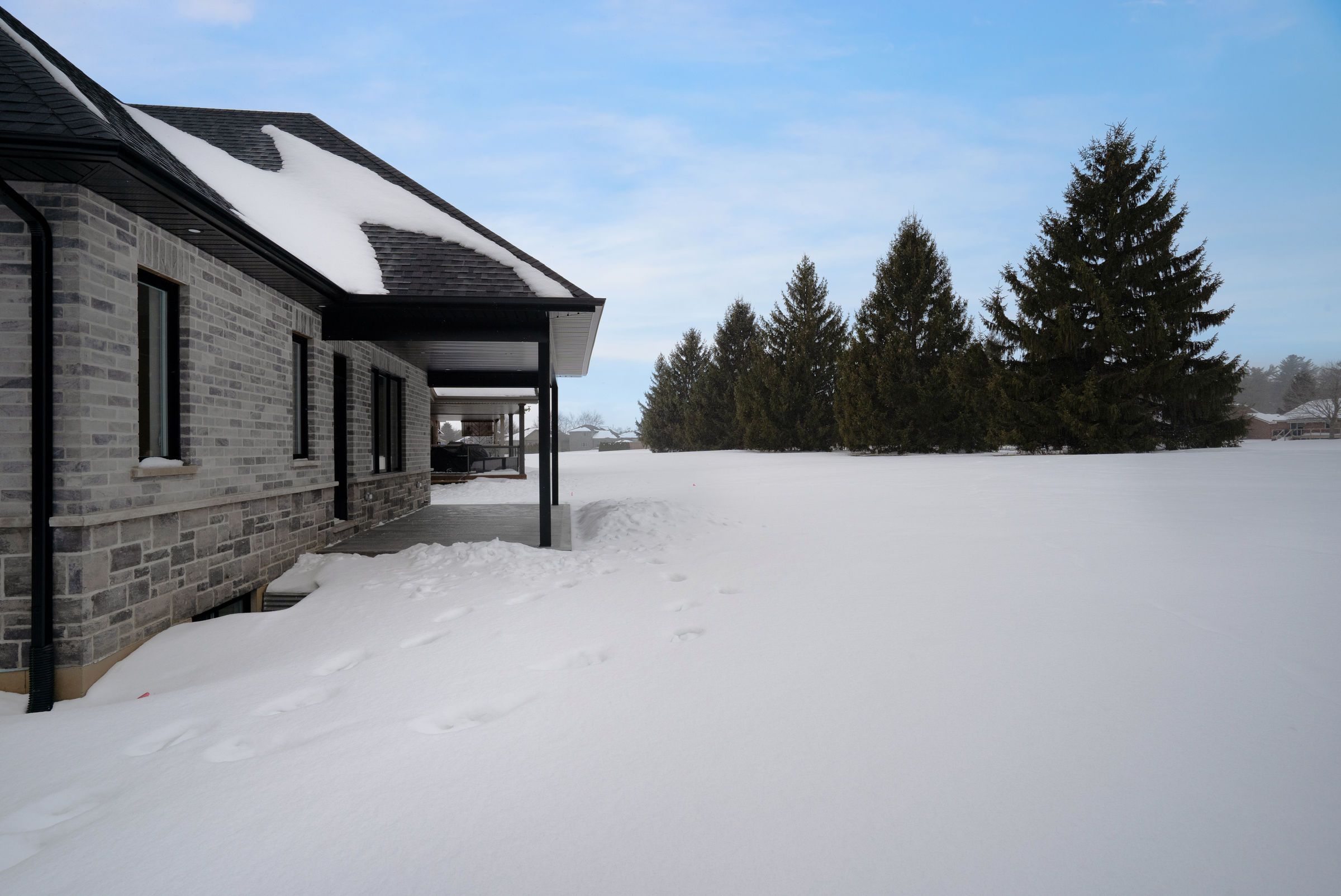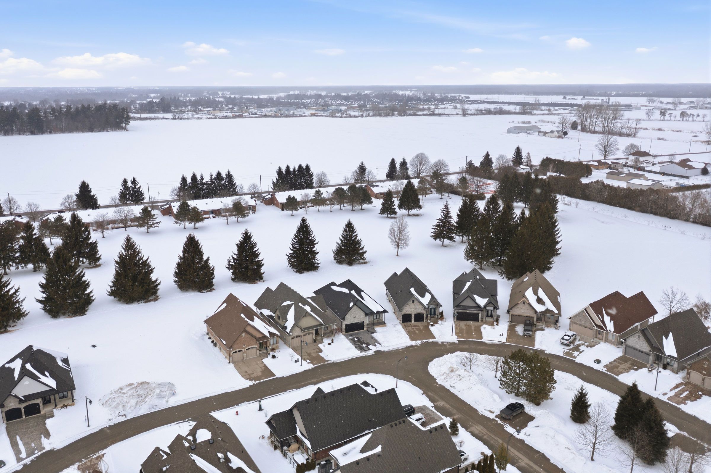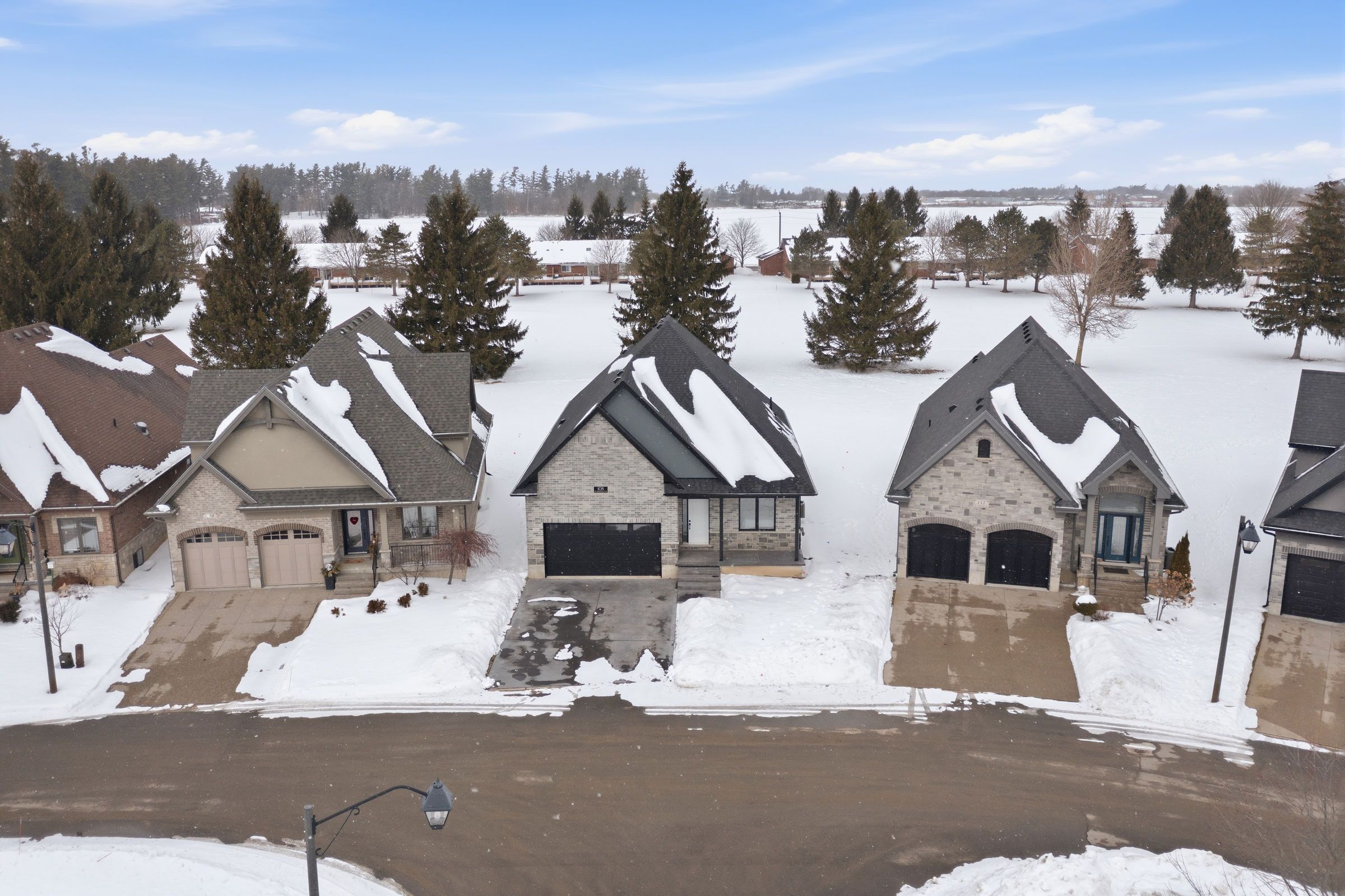 Now is your opportunity to live in a newly built luxury bungalow in the prestigious fairway estates community in delhi where elegance, comfort, and low-maintenance living come together seamlessly. Enjoy a stress-free lifestyle with tarion warranty protection, plus snow removal and grass maintenance included for a low monthly fee. This home offers over 2280 sq. Ft. Of finished living space, including a 1,515 sq. Ft. Custom bungalow built by euro-canada construction developments inc., a builder recognized for blending european craftsmanship with canadian building excellence. Their commitment to quality, integrity, and personalized service is reflected in every detail of this home. Featuring two bedrooms on the main floor and two additional bedrooms in the fully finished basement, this layout is ideal for those seeking single-level living without sacrificing space, as well as for families with teens or young adults who value privacy, separation, and independent living zones. The open-concept design is enhanced by 9' ceilings, extra-wide hallways, main-floor laundry, and heated floors in all bathrooms. High-end finishes include engineered hardwood on the main floor, luxury vinyl plank in the basement, quartz countertops throughout, ceiling-height kitchen cabinetry, under-cabinet lighting, a striking gas corner fireplace, and 5 1/4-inch modern baseboards. The lower level is exceptionally bright with large 4' basement windows, a direct garage-to-basement entrance, and central vacuum with canister. For hobbyists or those working from home, the basement also offers a large unfinished flex space and extensive storage in the expansive utility room. Outdoor living is equally impressive with a poured concrete front porch, covered back porch, and a dark grey stamped concrete driveway with swirl pattern. Included is an ev rough-in in the garage. This is more than a home-it's a refined lifestyle, where quality craftsmanship meets effortless living.