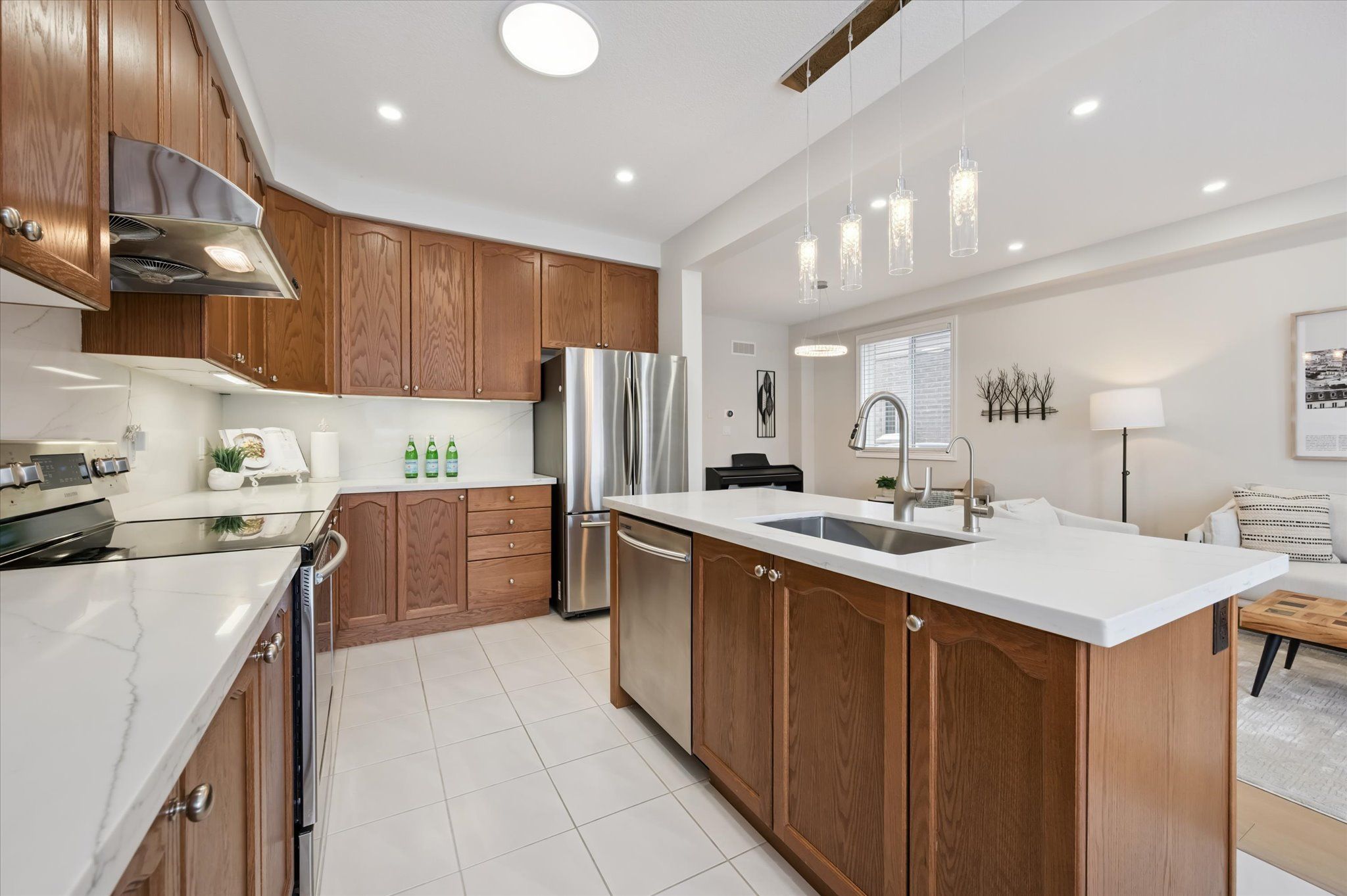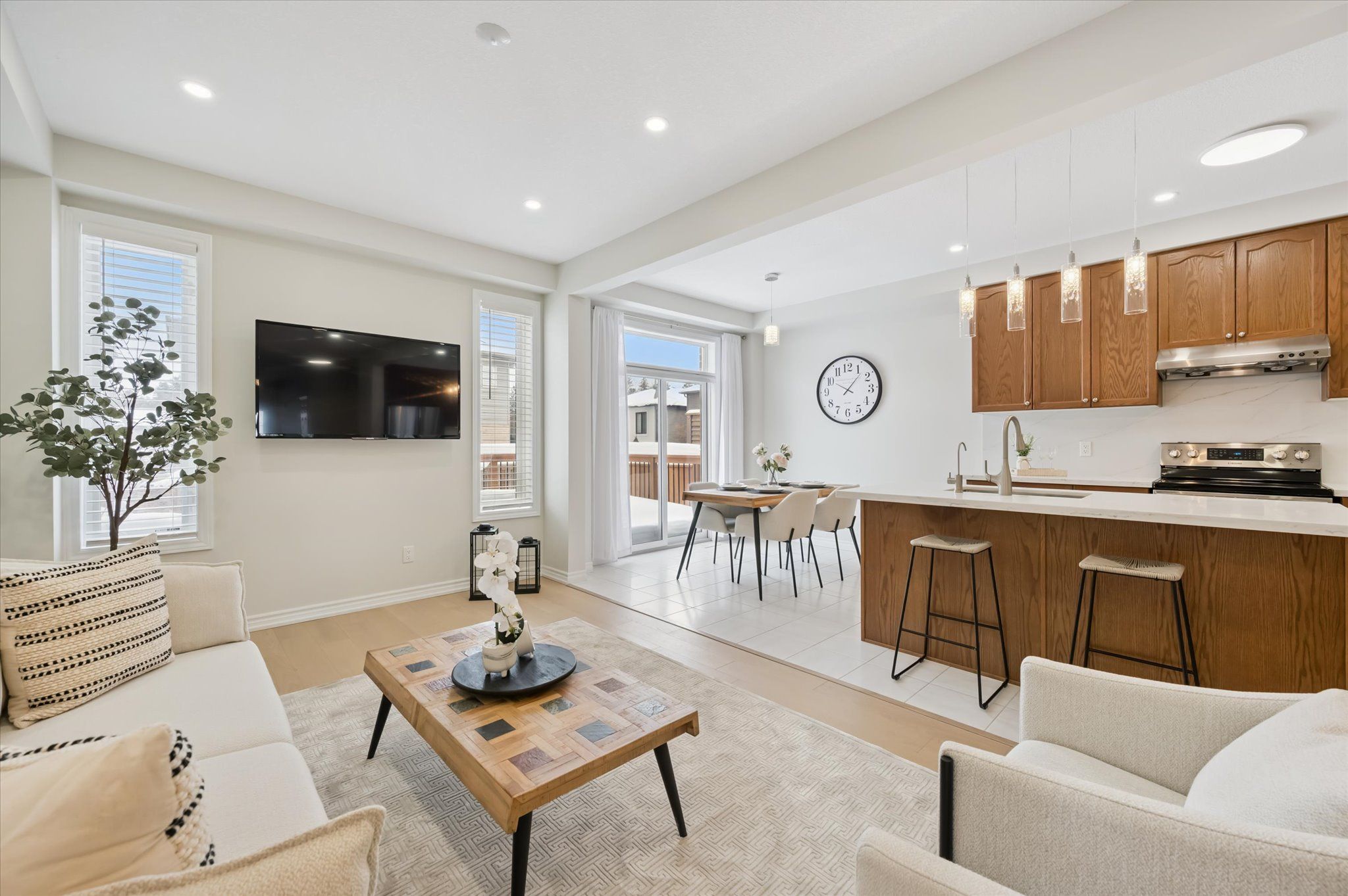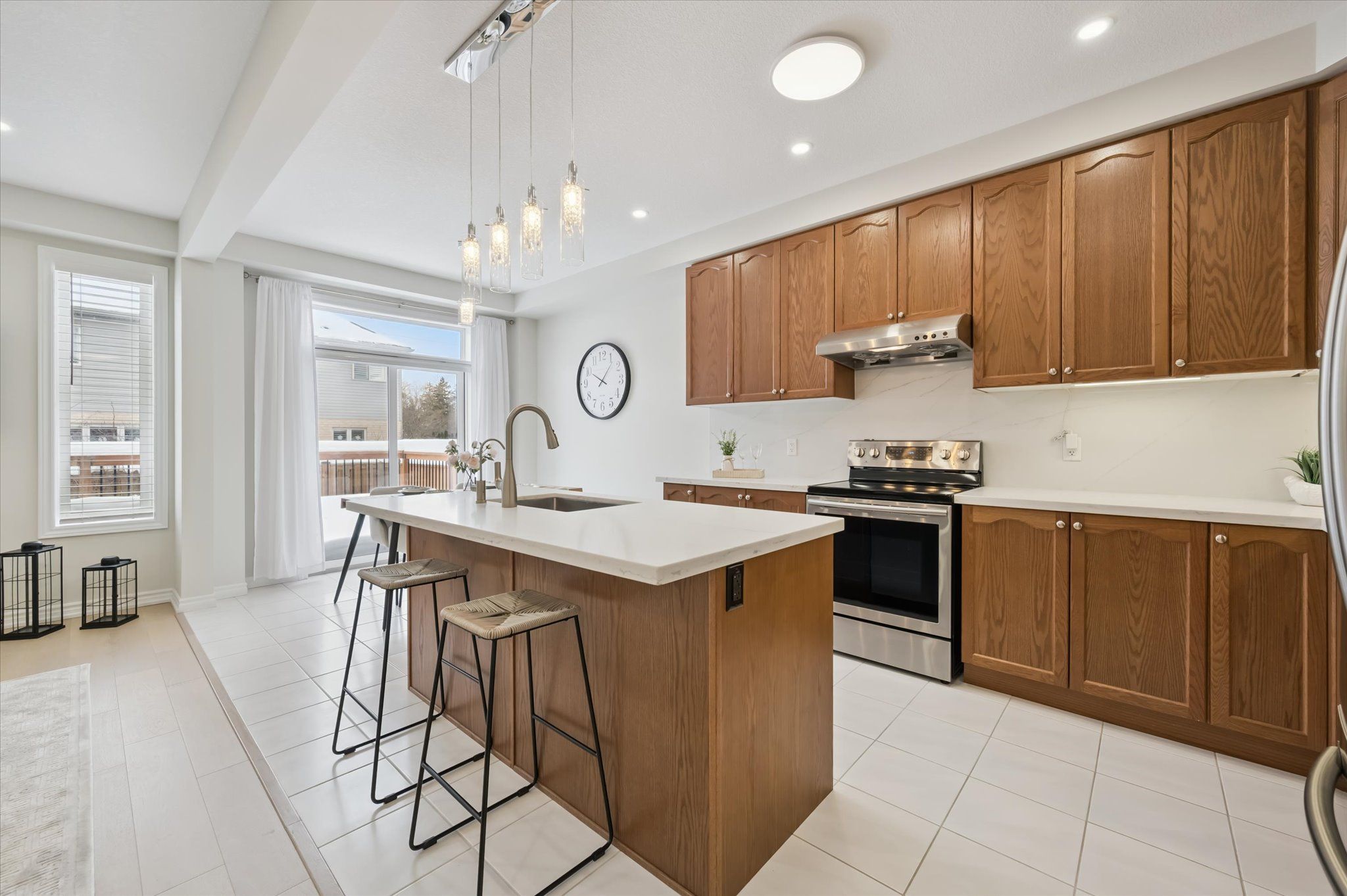 Stunning, beautifully maintained freehold single detached home featuring a one-car garage and a double-wide interlock driveway, located in a family-friendly neighbourhood. This home offers a premium lot upgrade with clear views of the greenbelt and pond, providing the perfect blend of style, space, and convenience. With charming curb appeal and exceptional functionality, this property truly stands out. Step inside to a warm and inviting foyer that opens to a bright, spacious open-concept living area. Elegant hardwood and ceramic tile flooring flow seamlessly throughout the main floor, creating a modern yet cozy atmosphere. Expansive windows fill the home with natural light, complemented by 9-foot ceilings that enhance the sense of space. The chef-inspired kitchen is a true highlight, featuring stainless steel appliances, granite countertops and backsplash, ample cabinetry, and a breakfast bar-ideal for casual meals or entertaining. The adjacent dining area offers sliding glass doors leading to a fully fenced private backyard with a generously sized deck, perfect for outdoor dining, summer barbecues, or relaxing in your own outdoor retreat. Upstairs, you'll find four generously sized bedrooms and two full bathrooms, offering plenty of space for the whole family. The luxurious primary suite includes a spacious walk-in closet and a 4-piece ensuite bath. Two of the bedrooms overlook the serene pond and green space, providing peaceful views. The fully finished basement adds even more living space, featuring a versatile recreation room ideal for a home theatre, gym, or play area, along with a modern 3-piece bathroom and ample storage. Minutes from schools, playgrounds, shopping plazas, and hwy 85. Enjoy walking distance to kiwanis park, soccer fields, recreational trails, a leash-free dog park, public outdoor pool, canoe launch, and the scenic grand river. This home offers the perfect mix of comfort, style, and convenience-move-in ready and waiting for you to enjoy.