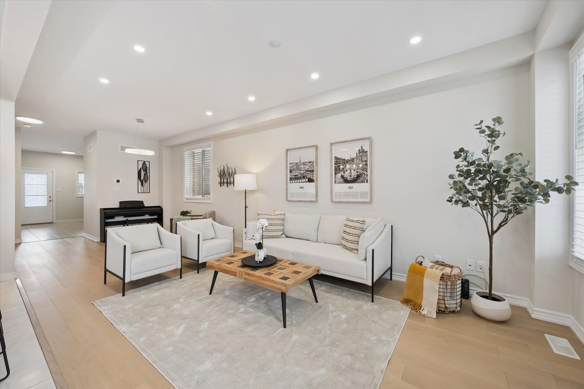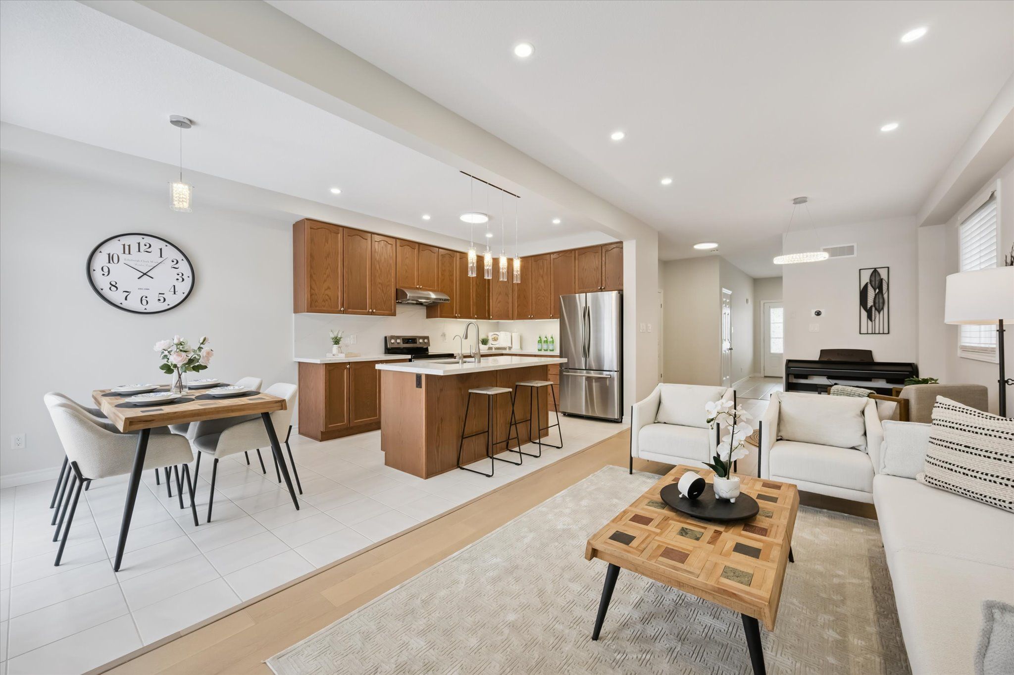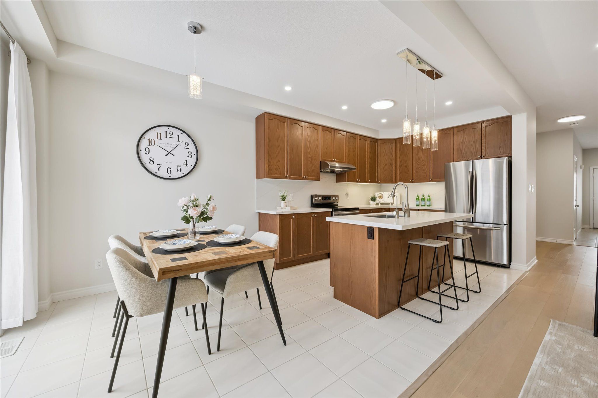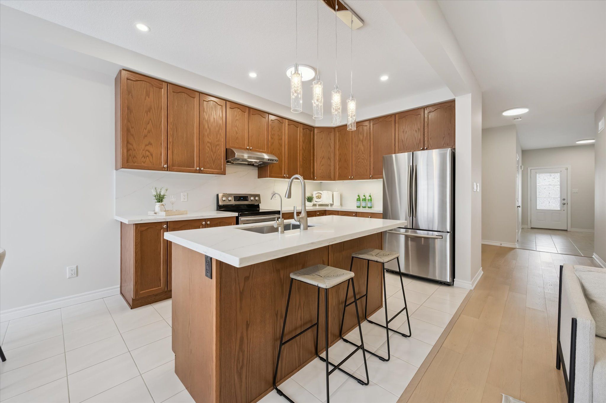 Stunning, beautifully maintained freehold single detached home featuring a one-car garage and a double-wide interlock driveway, located in a family-friendly neighbourhood. This home offers a premium lot upgrade with clear views of the greenbelt and pond, providing the perfect blend of style, space, and convenience. With charming curb appeal and exceptional functionality, this property truly stands out. Step inside to a warm and inviting foyer that opens to a bright, spacious open-concept living area. Elegant hardwood and ceramic tile flooring flow seamlessly throughout the main floor, creating a modern yet cozy atmosphere. Expansive windows fill the home with natural light, complemented by 9-foot ceilings that enhance the sense of space. The chef-inspired kitchen is a true highlight, featuring stainless steel appliances, granite countertops and backsplash, ample cabinetry, and a breakfast bar-ideal for casual meals or entertaining. The adjacent dining area offers sliding glass doors leading to a fully fenced private backyard with a generously sized deck, perfect for outdoor dining, summer barbecues, or relaxing in your own outdoor retreat. Upstairs, you'll find four generously sized bedrooms and two full bathrooms, offering plenty of space for the whole family. The luxurious primary suite includes a spacious walk-in closet and a 4-piece ensuite bath. Two of the bedrooms overlook the serene pond and green space, providing peaceful views. The fully finished basement adds even more living space, featuring a versatile recreation room ideal for a home theatre, gym, or play area, along with a modern 3-piece bathroom and ample storage. Minutes from schools, playgrounds, shopping plazas, and hwy 85. Enjoy walking distance to kiwanis park, soccer fields, recreational trails, a leash-free dog park, public outdoor pool, canoe launch, and the scenic grand river. This home offers the perfect mix of comfort, style, and convenience-move-in ready and waiting for you to enjoy.