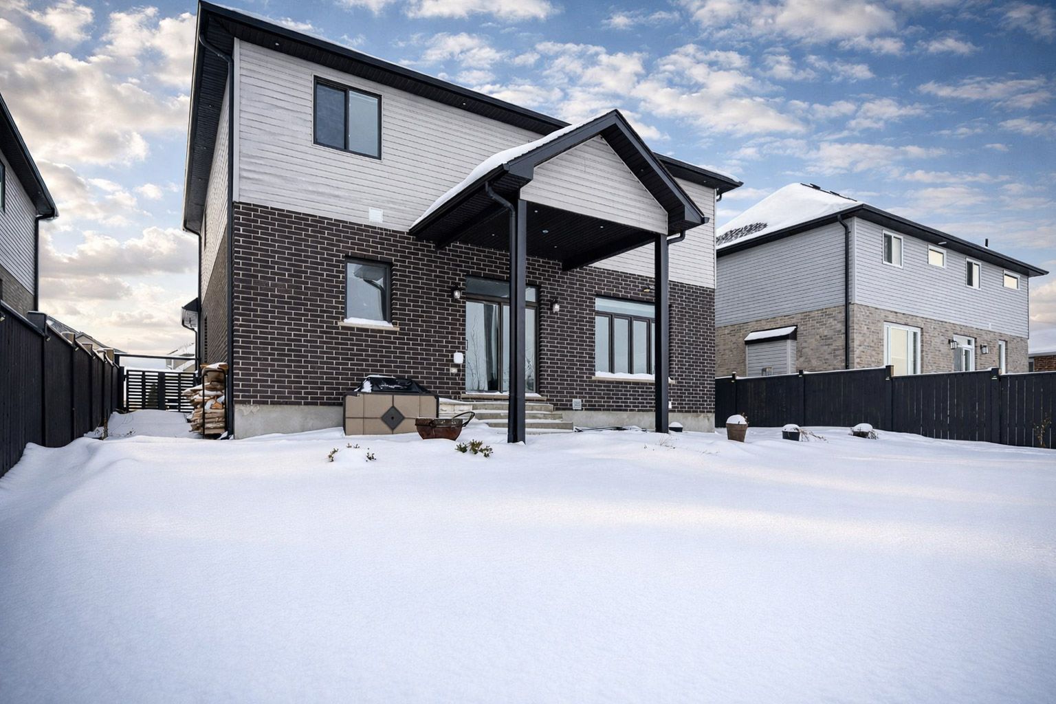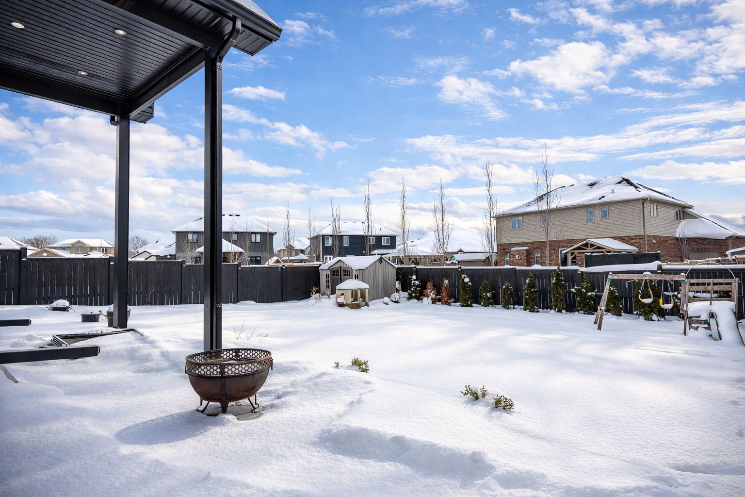 Welcome to your dream home in lucan, ontario! With parks, schools, and amenities just minutes away, this property offers the ideal lifestyle for families and professionals alike. From the moment you step inside, it's clear this home surpasses any builder base model. The main floor features soaring 10-foot ceilings and elegant 8-foot doors, creating a bright and inviting atmosphere throughout. The front office-with its impressive and grand window offers a serene space drenched in natural light, accented by a coffered ceiling that's mirrored in the formal dining room. The upgraded kitchen is a true showstopper with elongated cabinets, quartz countertops, subway tile backsplash, built-in appliances, an induction cooktop and tasteful accent panels on the island. The butler's pantry-with lovely glass cabinets, quartz counters, and a bar fridge flow seamlessly to the formal dining space. Throughout the main floor, you'll find hardwood and tile flooring, along with a cozy gas fireplace featuring a refined, upgraded trim surround. The hardwood staircase leads to an upper level filled with style and comfort, including a beautiful primary suite complete with a walk-in closet and a luxurious 5-piece ensuite. Three additional bedrooms each feature their own walk-in closets, while the spacious main bathroom impresses with a custom quartz double vanity and an upgraded tiled shower with glass enclosure. The basement offers incredible potential, featuring nearly 9-foot ceilings, oversized windows, and a bathroom rough-in-a perfect blank canvas for creating your dream recreational space. Outside, the attention to detail continues. The fully fenced backyard features stained wood fencing with metal side gates, a covered overhang with a concrete patio that stretches the length of the home and wraps gracefully to the front. The irrigation system ensures your home stands out even in the summer heat. At this price point, you simply couldn't replicate this home today with these upgrades