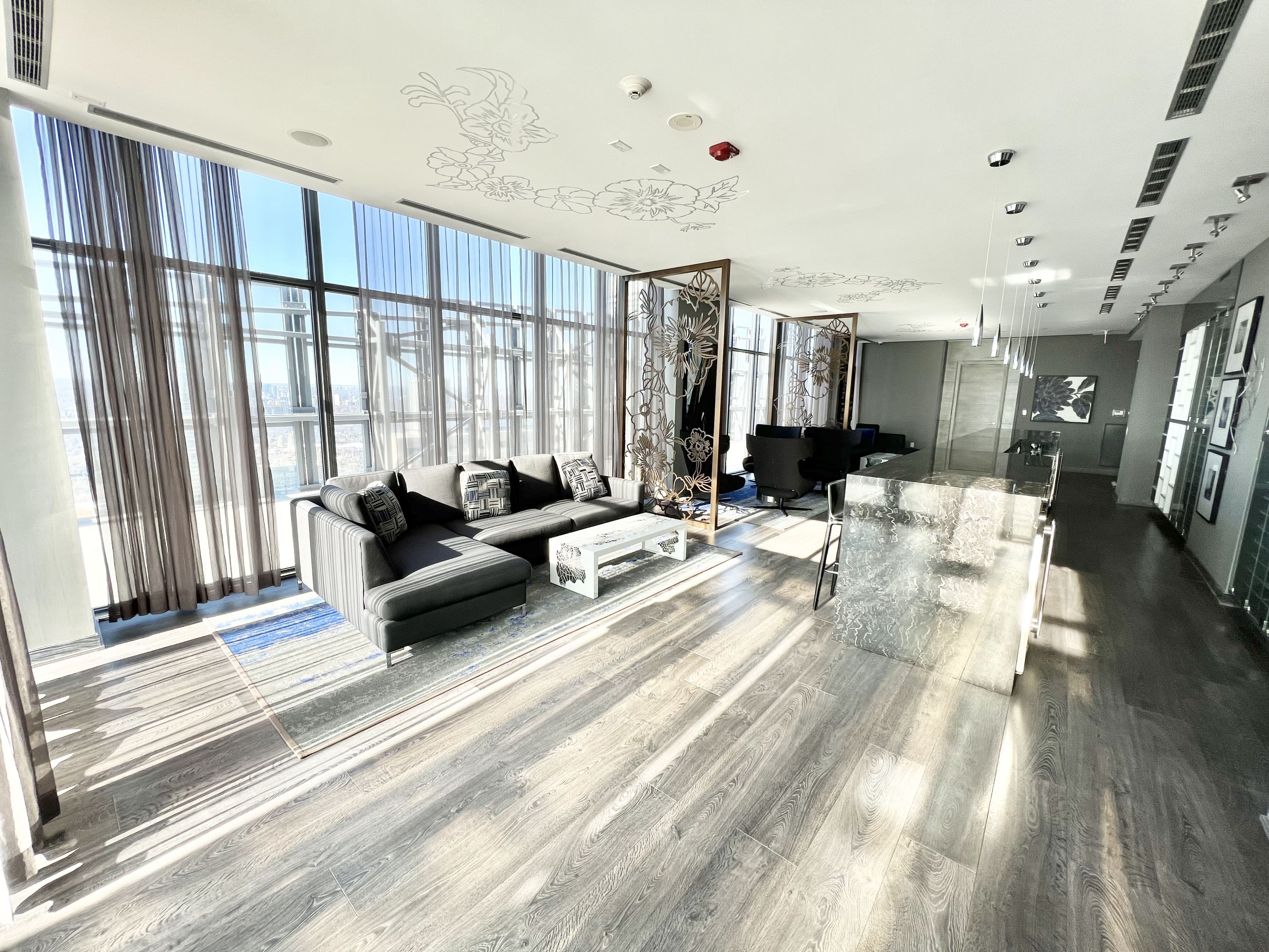 • Access to extensive amenities including rooftop gym and concierge.