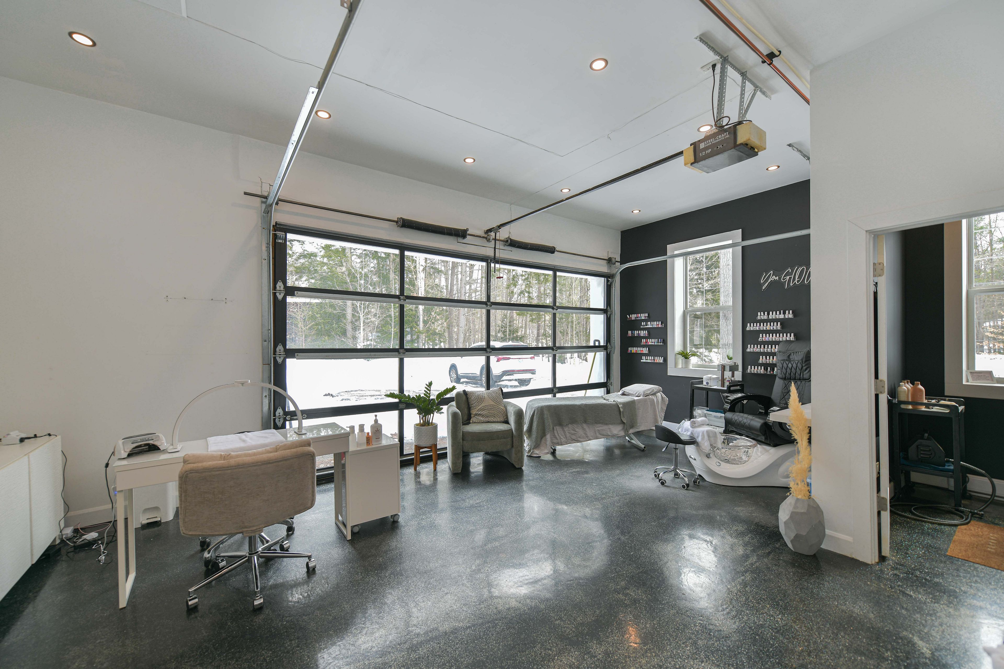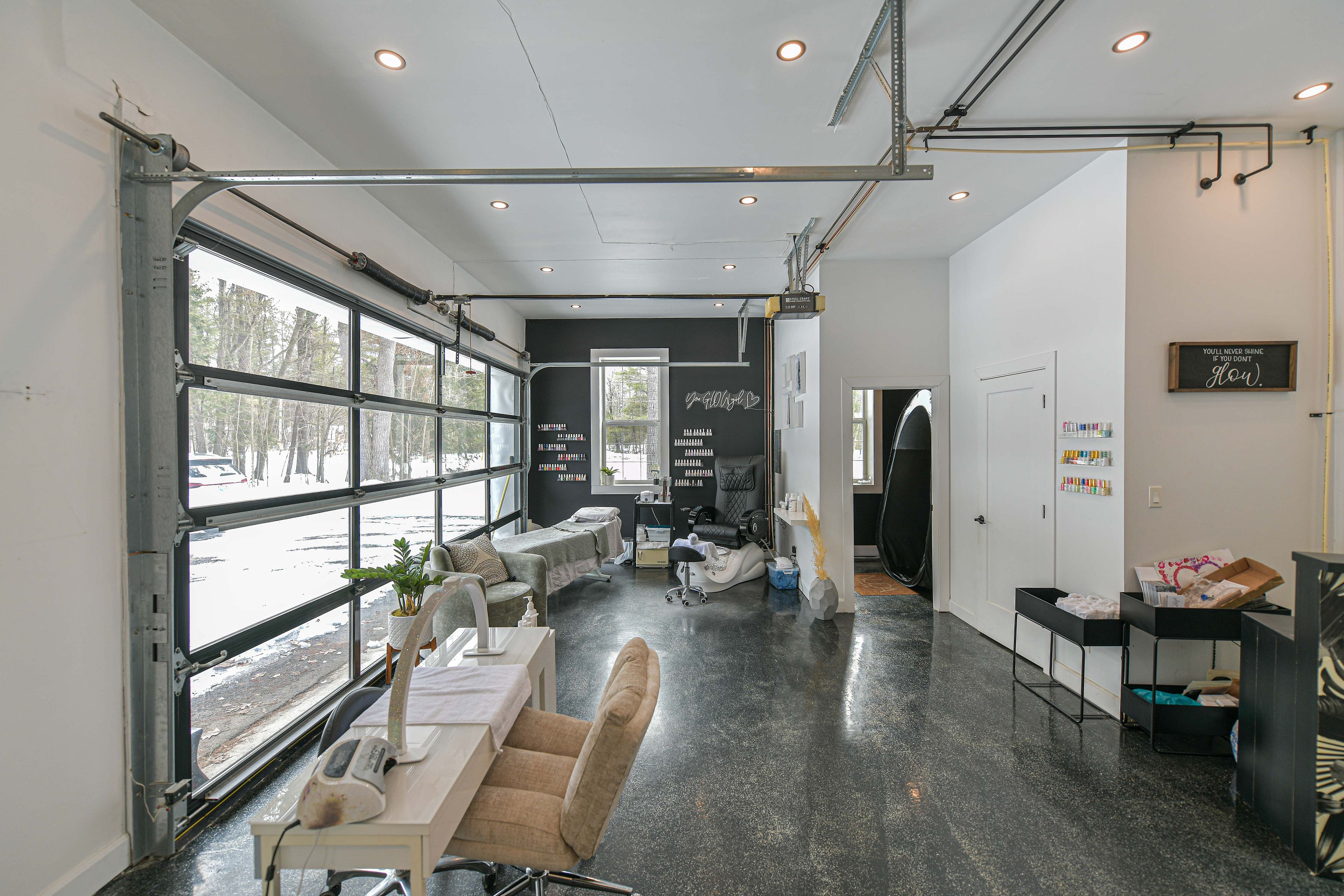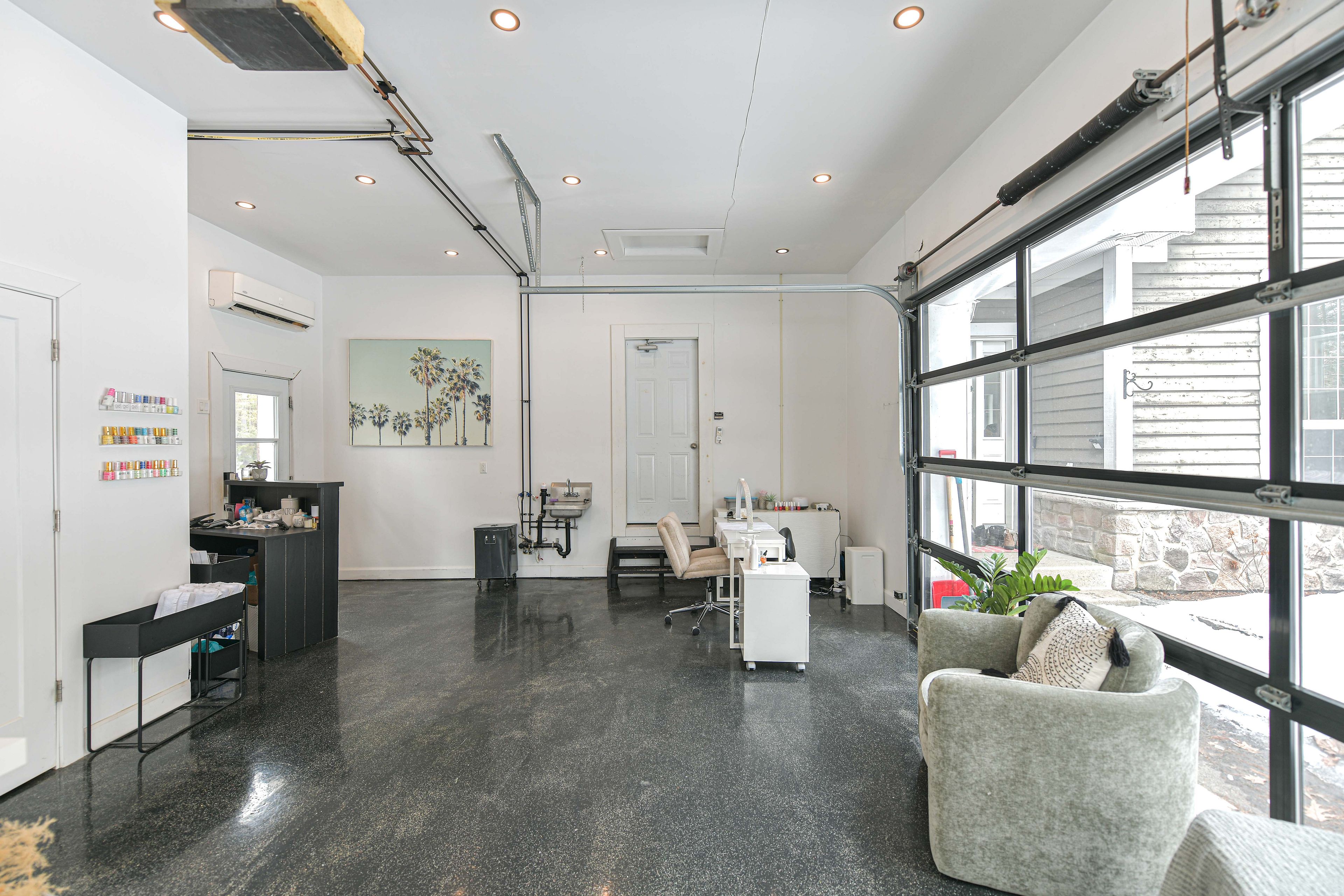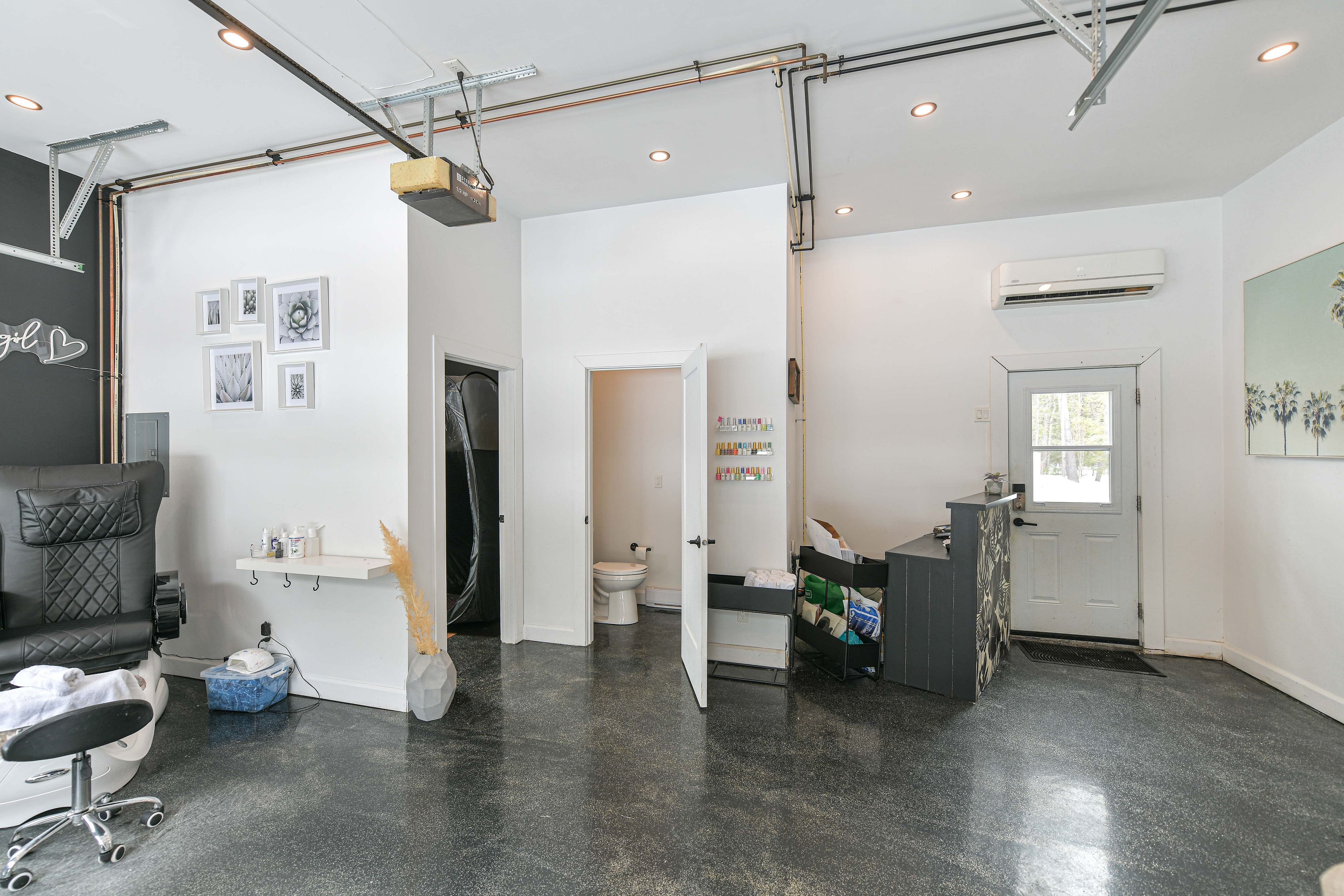 • Converted salon garage offers versatile space for home business opportunities.