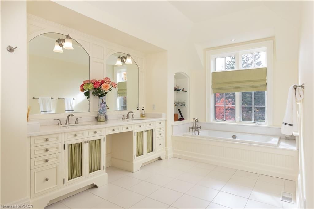 An architectural masterpiece by renowned gren weis, this exceptional residence offers over 10,000 sq. Ft. Of luxurious living space on more than half an acre in one of oakville's most desirable lake-influenced neighbourhoods. Showcasing soaring ceilings, extensive millwork, and superb craftsmanship, the home features spacious, elegant rooms and a seamless flow for entertaining. All bedrooms include ensuite baths, while the lower level impresses with a wine cellar and theatre. Outside, enjoy covered terraces, a built-in outdoor kitchen, luxury cabana, mature gardens, and a stream with bridge surrounded by landscape lighting. A classically inspired front fountain and spectacular landscaping enhance the property's distinguished presence on an important street. Close to top private and public schools, this private estate blends timeless design, quality, and sophistication in a truly remarkable setting. Luxury certified.
