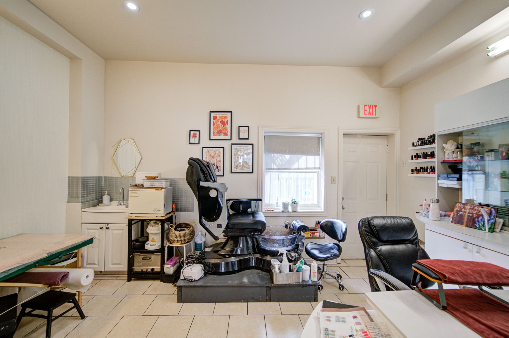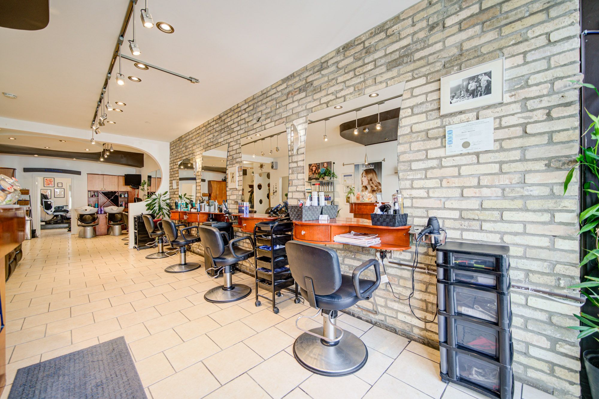 • Existing salon layout ready for immediate use by beauty professionals.