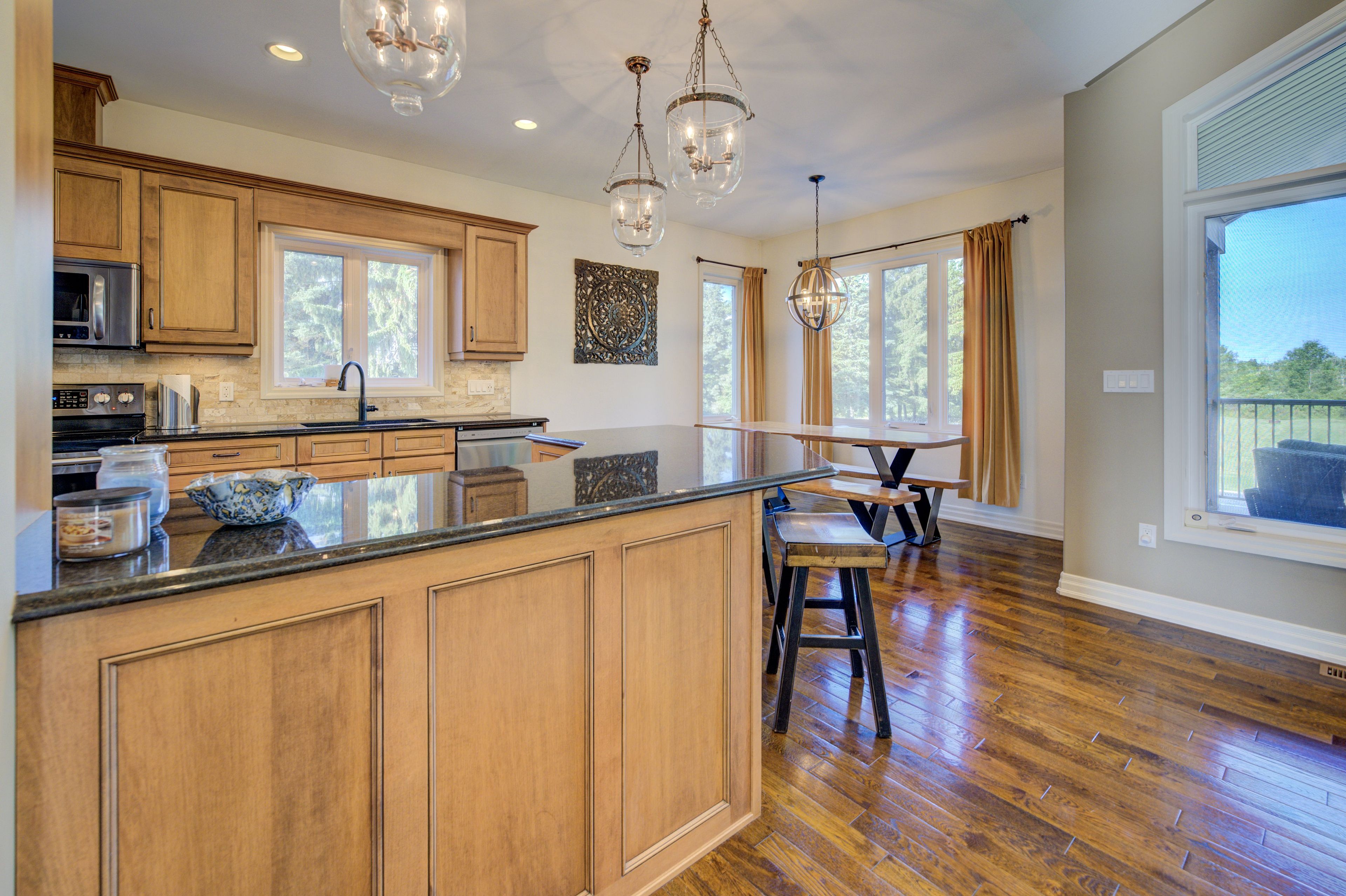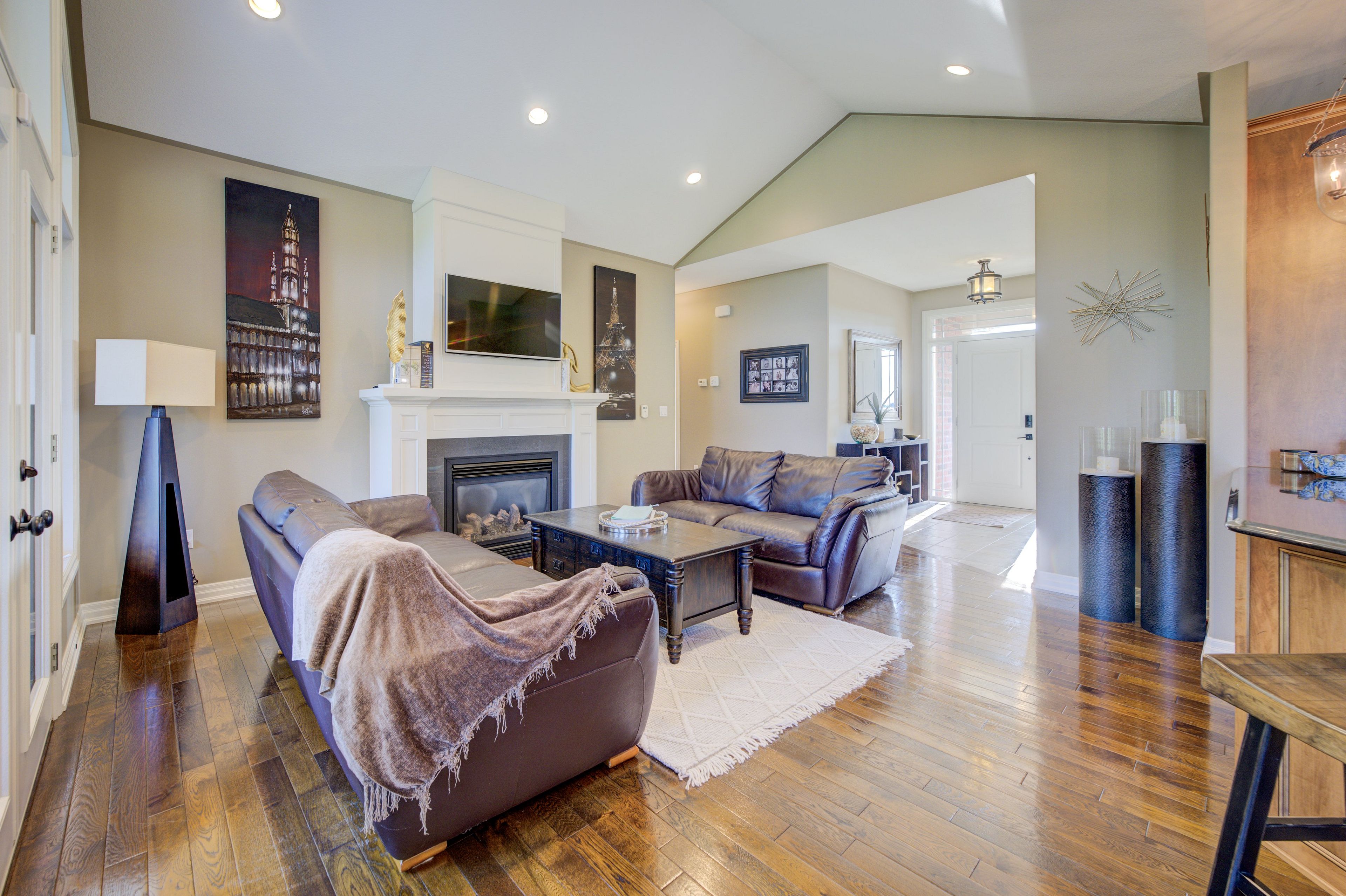 Stunning country bungalow on an amazing 1. 44 acre lot, close to the lake. Walk in to the grand foyer and living room with cathedral ceilings, gas fireplace and french doors to a large covered deck overlooking the inground pool (7 yrs old) and the massive grounds. Main floor boasts the primary bedroom with walk in closet and ensuite, 2 more great size bedrooms (one set up as an office with built in desk and shelving) and another full bathroom. This stunning kitchen has ample maple cupboards and granite counter tops and a quant dining area. The lower level with french doors walkout to the backyard is nothing but spectacular. Amazing rec room with gas fireplace and large bar, fantastic for entertaining. Additional bedroom and 1/2 bath as well as laundry room and plenty of storage finish off this ground level basement. Attached double car garage is 31 x 28ft and heated.