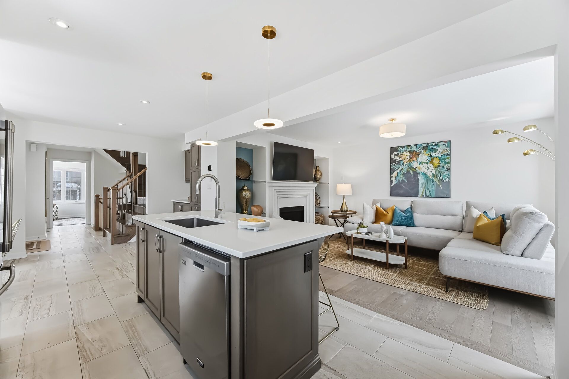 3+1 bedroom freehold townhome in highly desirable corner lot in rural pickering * built in 2018 * bright functional layout * engineered hardwood floors on main * gas fireplace * modern kitchen with quartz counter, backsplash & centre island * extra pantry providing additional storage * main floor home office * oak staircase * upper level laundry with custom cabinetry * primary bedroom with walk-in closet & 6-piece ensuite * finished basement with recreation room with electric fireplace * bar with quartz counter * bedroom with 5-piece bath * convenient access to home from garage * close to schools, parks, transit, shopping & all amenities * fantastic opportunity in growing pickering community