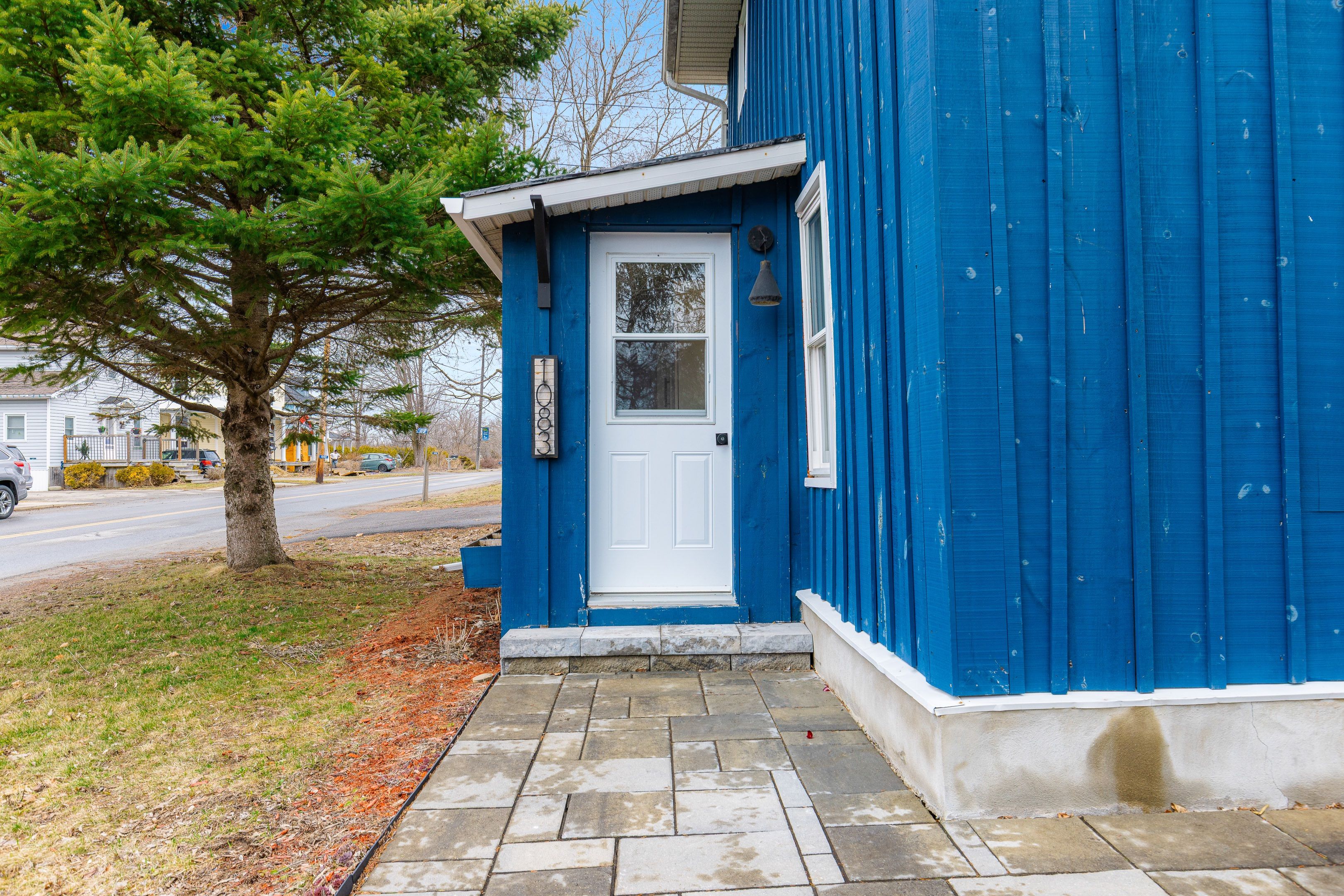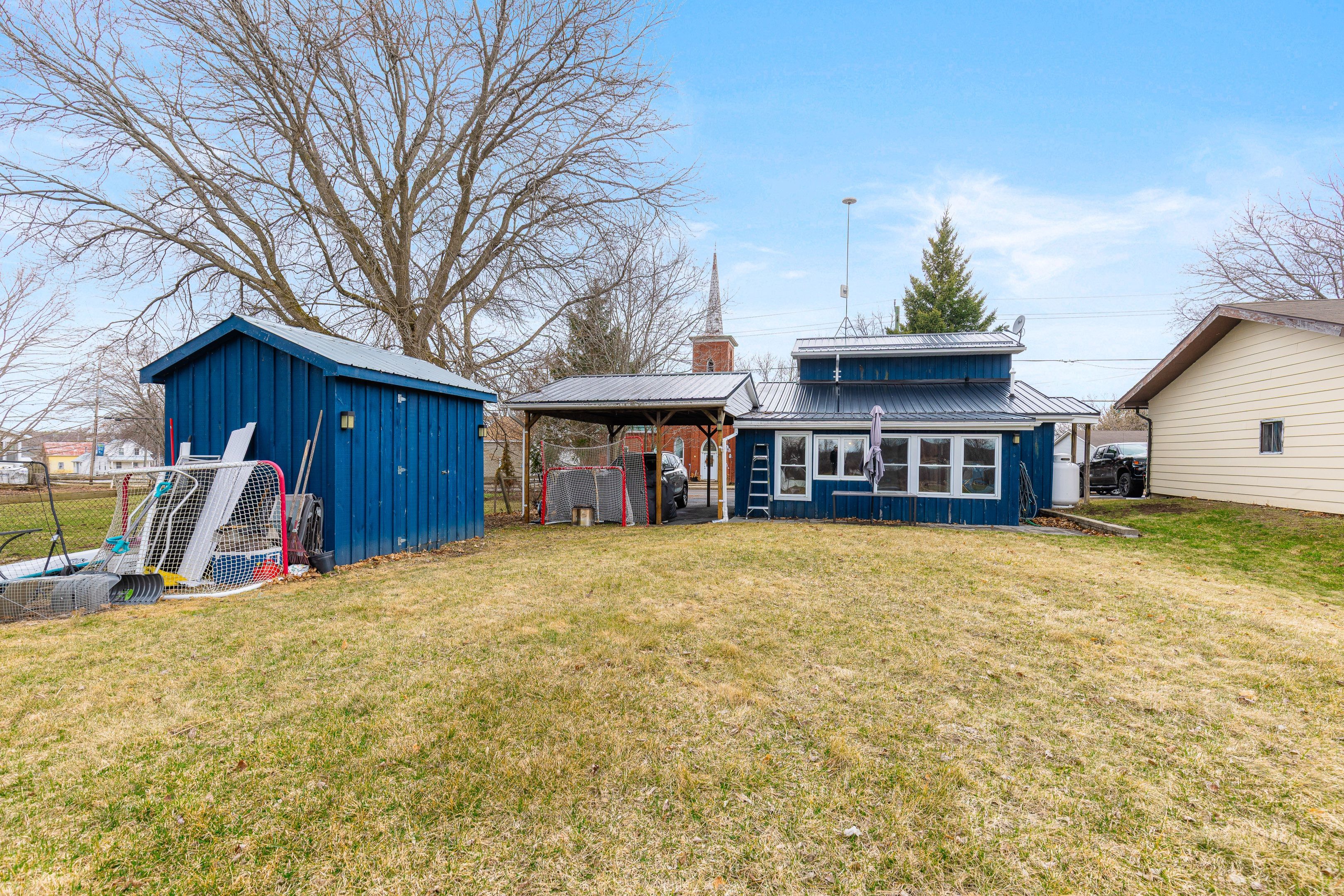 Shout out to first-time home buyers, empty nesters and investors! Take note of this adorable 2-bedroom, 1-bath home offering charm, efficiency and beautiful surroundings in the quaint village of jasper. The exterior was remodelled with batten board vertical siding, painted in a striking historic shade of blue, creating wonderful curb appeal. Paved driveway, interlocking walkways and patio, a handy carport, newer eavestrough and a brand new metal roof installed in 2025 adding to the home's durability and low-maintenance appeal. Though compact in size, every inch of this home has been thoughtfully utilized. Enter through the enclosed front porch, which serves as a practical mudroom and main floor laundry area with handy storage cabinets included. From there, step into the heart of the home where you will find a comfortable and functional living space including a bright kitchen with adjoining dining area, a cozy living room with large picture windows, a 4 pc bath and a main level storage/utility room. Consider the potential for alternate floor layout, perhaps a main level bedroom or home office. The upper level features 2 bedrooms with laminate flooring and closets with mirrored doors. Propane heat, 100 amp breaker panel, owned hot water tank, appliances included! Enjoy peaceful seasonal views of irish creek just across the street, which flows into the rideau system and offers wonderful opportunities for kayaking or canoeing during the summer months. Start your mornings on the back patio watching the sunrise with a cup of coffee, unwind in the evenings while taking in the sunset over the water. Conveniently located close to the larger communities of brockville, merrickville, smiths falls and perth, this home offers peaceful small-town living with easy access to nearby amenities. Move-in ready, this cozy property is affordable, available and ideally situated-start the car !!