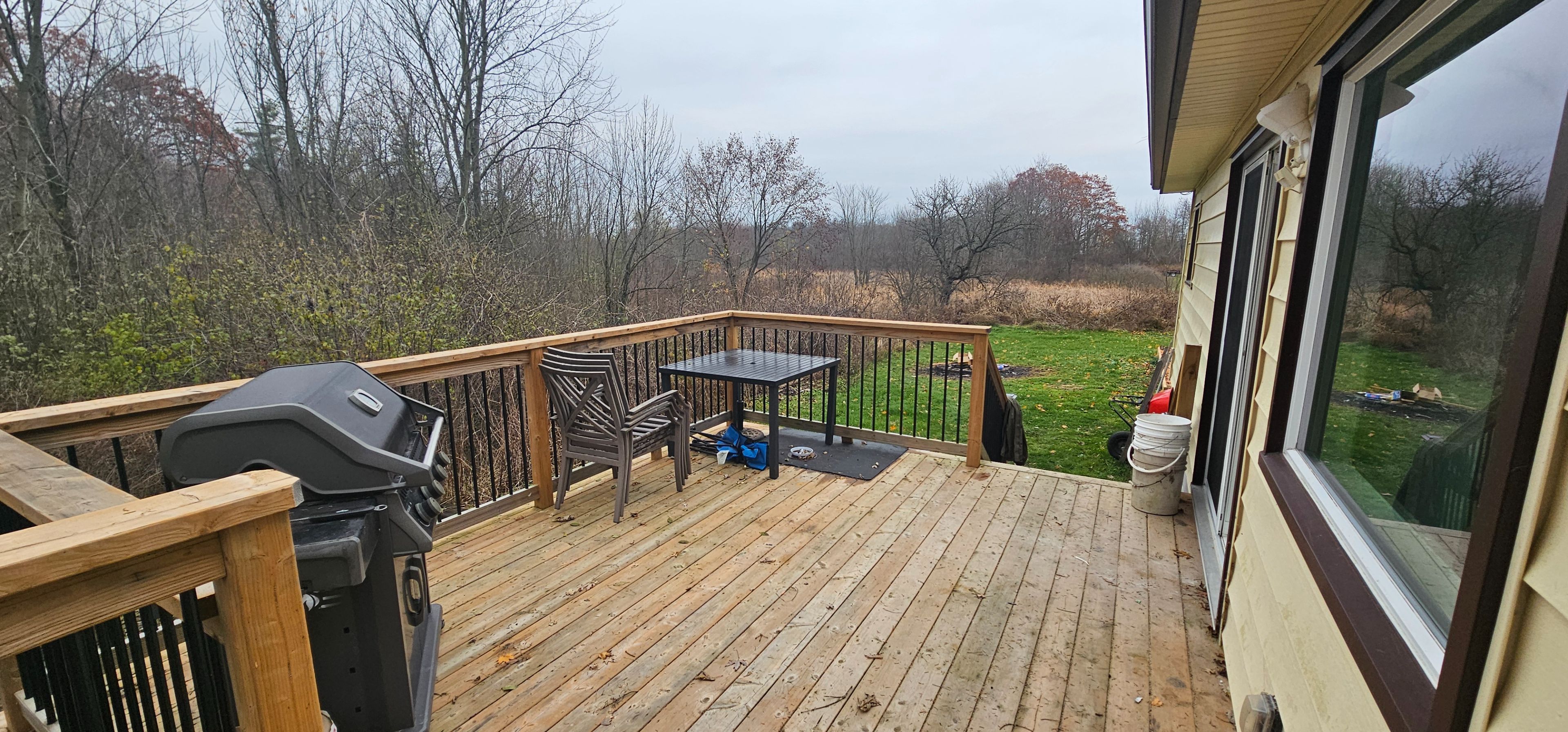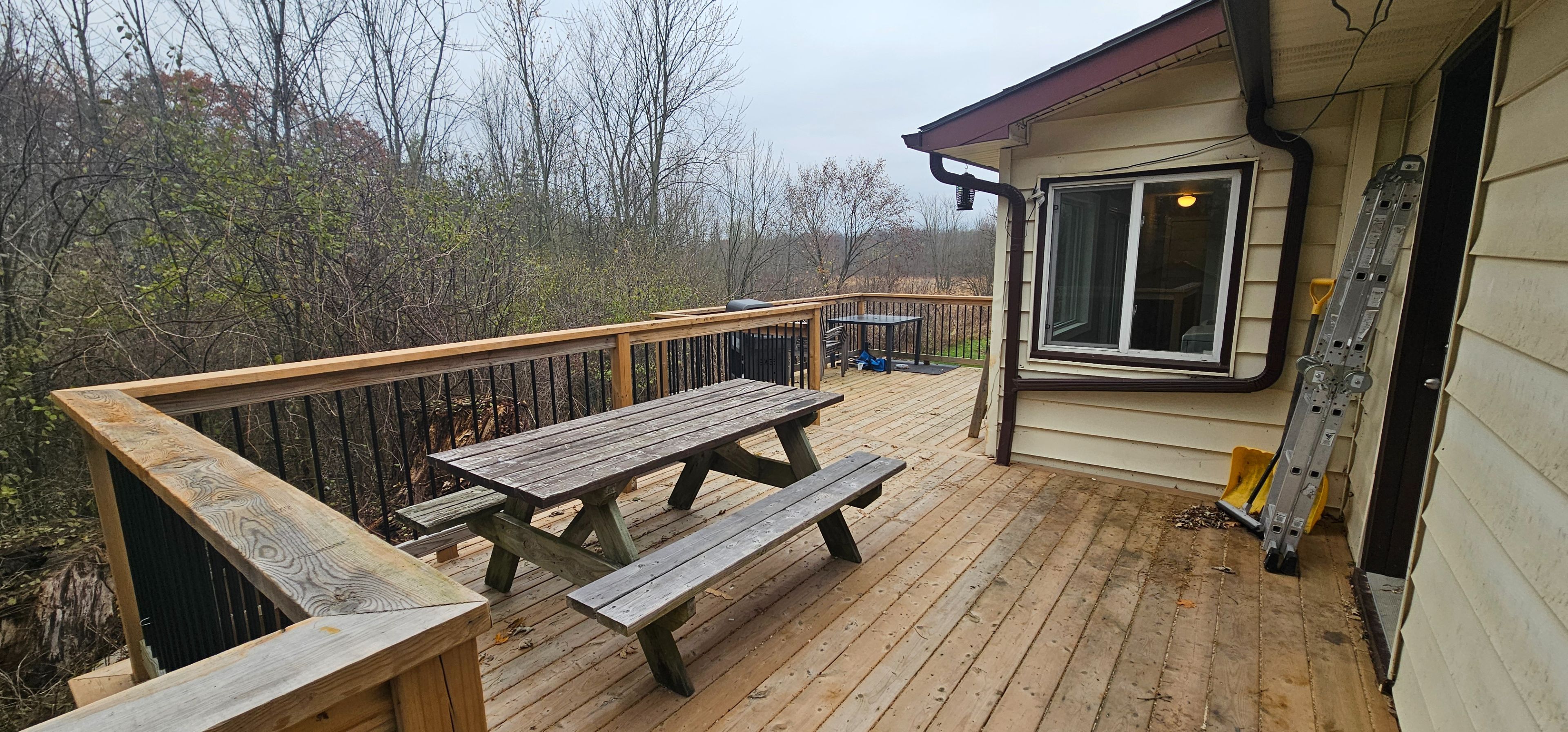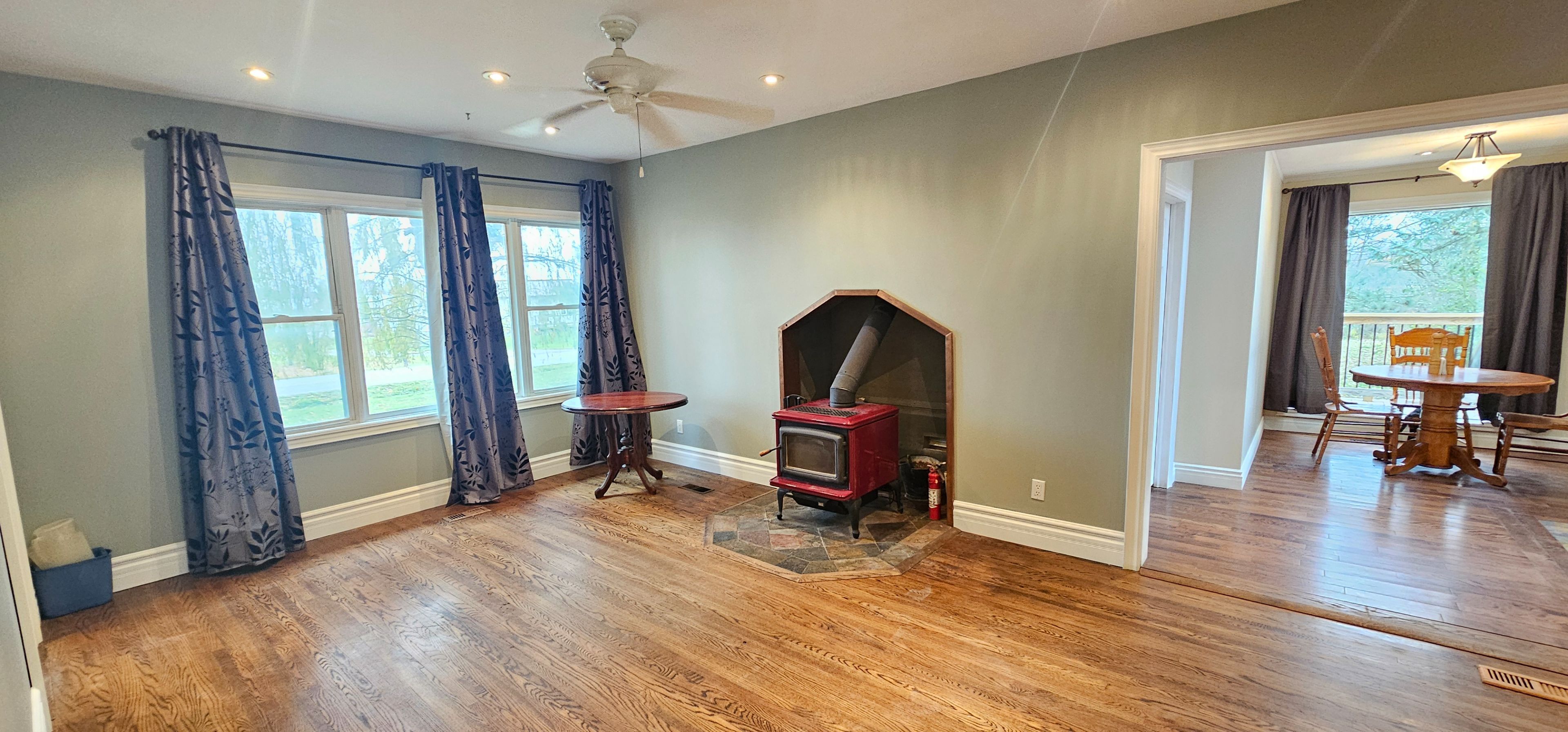 Welcome to your own private country retreat, offering space, flexibility, and endless potential. Situated on a generous, beautifully sprawling property, this versatile home offers privacy, and endless potential. This home is designed to adapt to your needs, whether you prefer a traditional 2 bedroom layout or a fully functional 2 unit option with separate living areas perfect for an in-law suite with its own kitchen, bathroom, and living space. With two kitchens, two bathrooms, and a shared laundry room that can easily serve both units, the options for multi generational living or rental potential are already built in. The interior is bright and inviting, featuring large windows and skylights that fill the home with natural light and bring the outdoors in. The recently updated interior includes a cozy new wood burning fireplace in the family room creating a warm and welcoming atmosphere, and perfect for relaxing evenings. The unfinished basement offers significant room to grow, including the potential for a third bedroom, additional living space, or dedicated storage, ideal for those looking to customize to their taste. Outdoor living is a standout feature, with a spacious three section back deck that provides multiple areas for relaxing, entertaining, or enjoying nature. Each section connects seamlessly and offers separate access points, including a private walkout from the primary bedroom, ideal for morning coffee, or simply enjoying the peace and privacy of the countryside. Whether hosting gatherings or unwinding in quiet surroundings, this outdoor space is ready to be enjoyed. Additional features include natural gas service to the home, ample parking, and flexible closing options to suit your timeline. A rare opportunity to create your perfect rural lifestyle, customize, expand, and make this remarkable property truly your own.