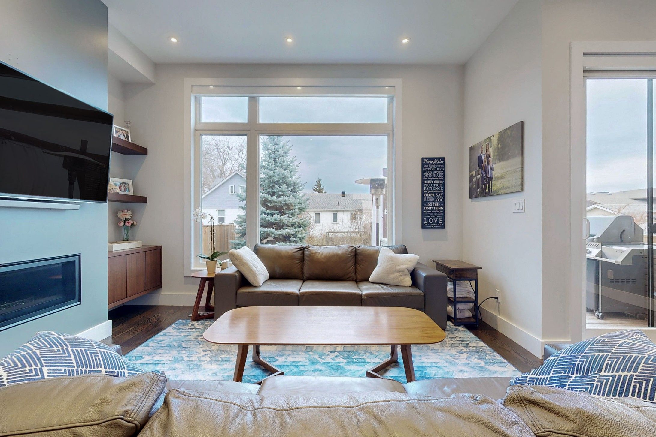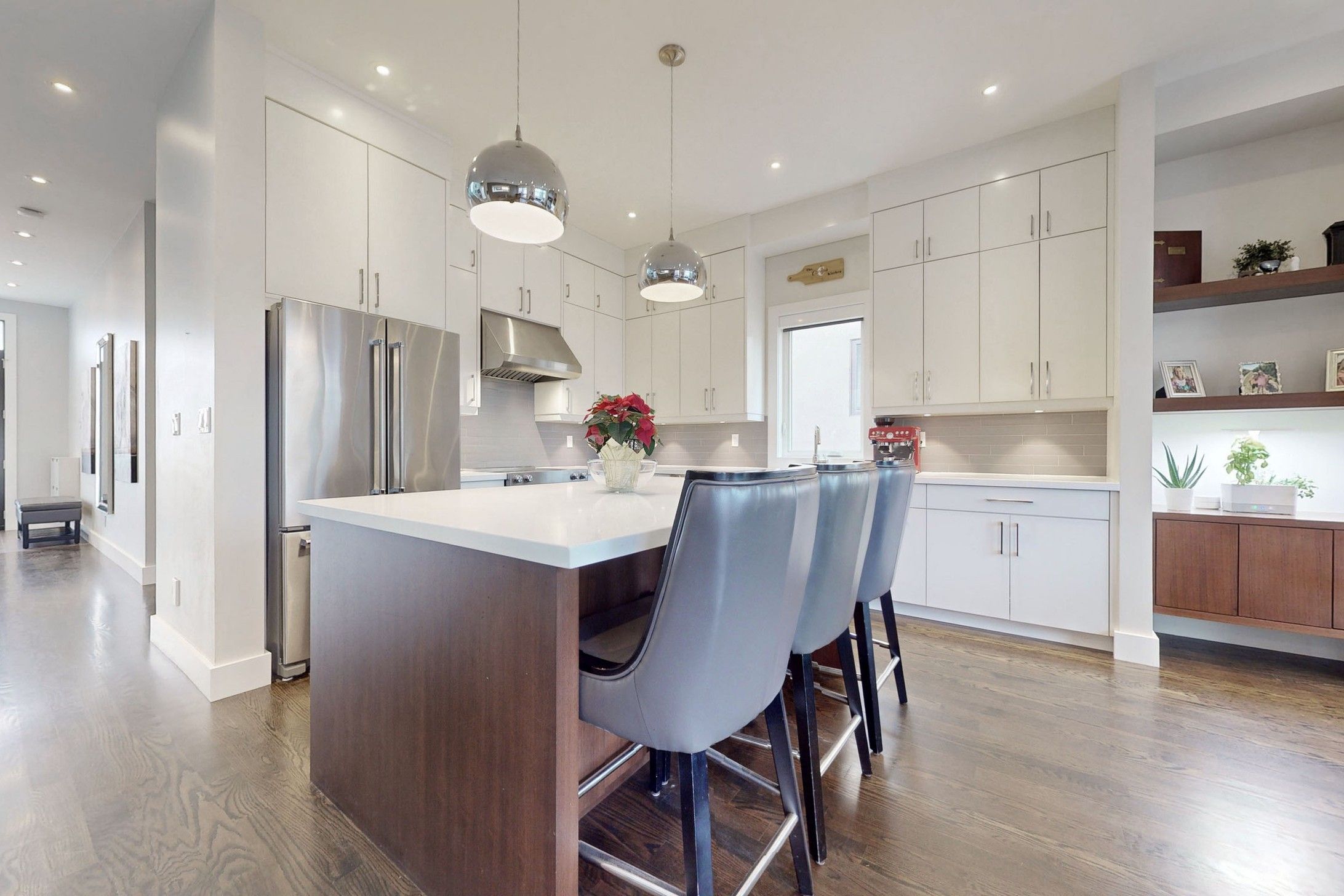 • Custom-built modern home with an open-concept layout and 10-foot ceilings.